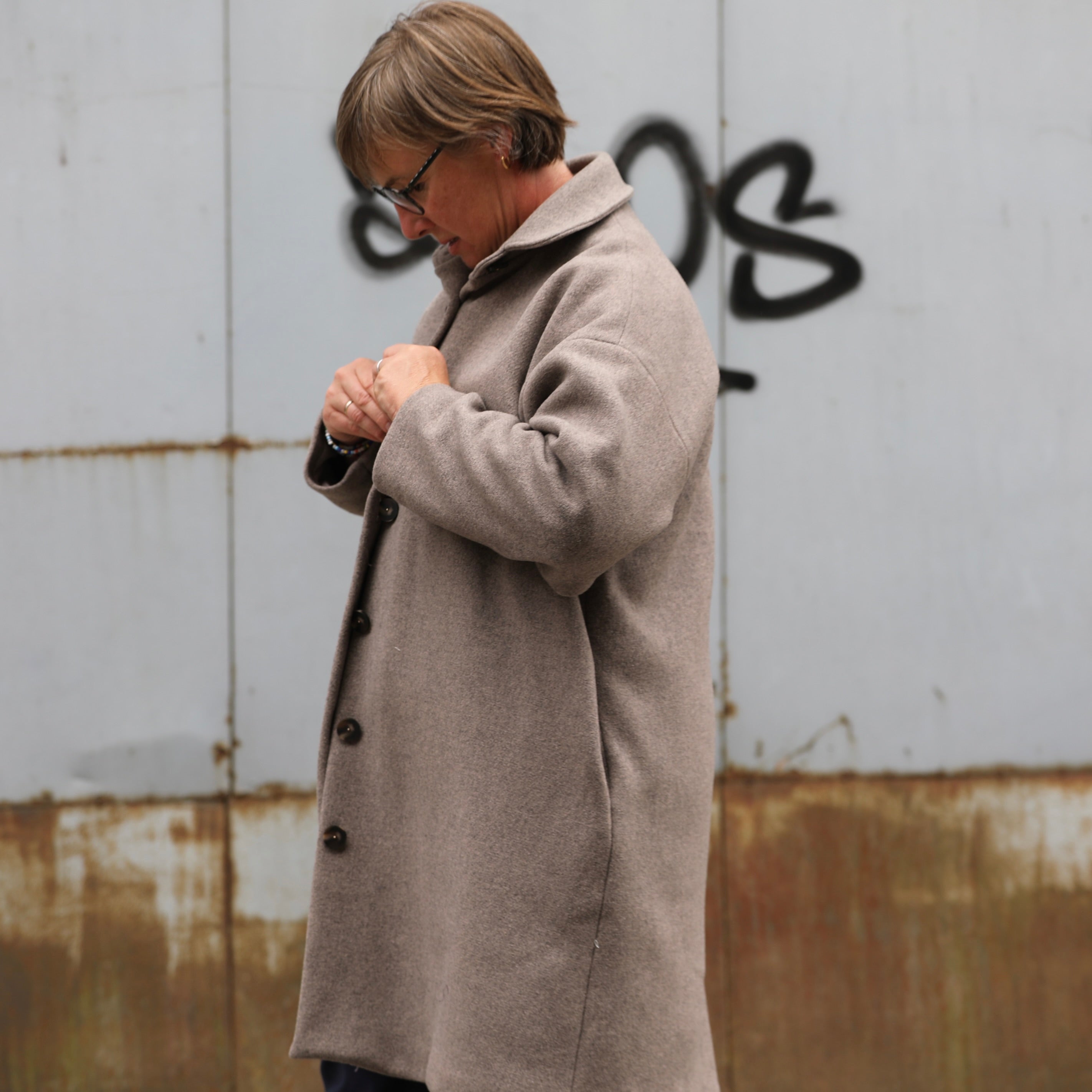 Taïma, c’est une coupe moderne et ample, aux épaules légèrement tombantes et aux lignes équilibrées.