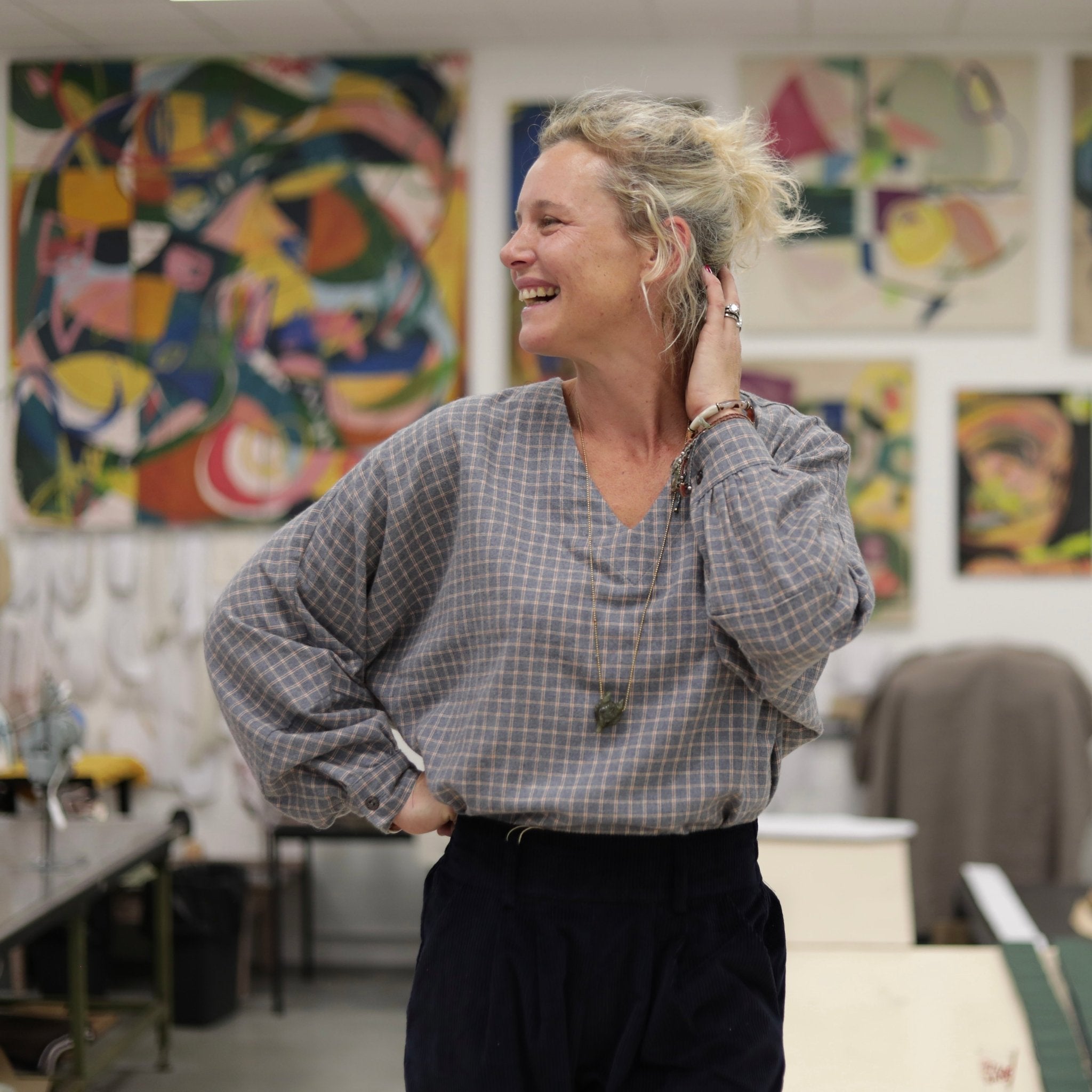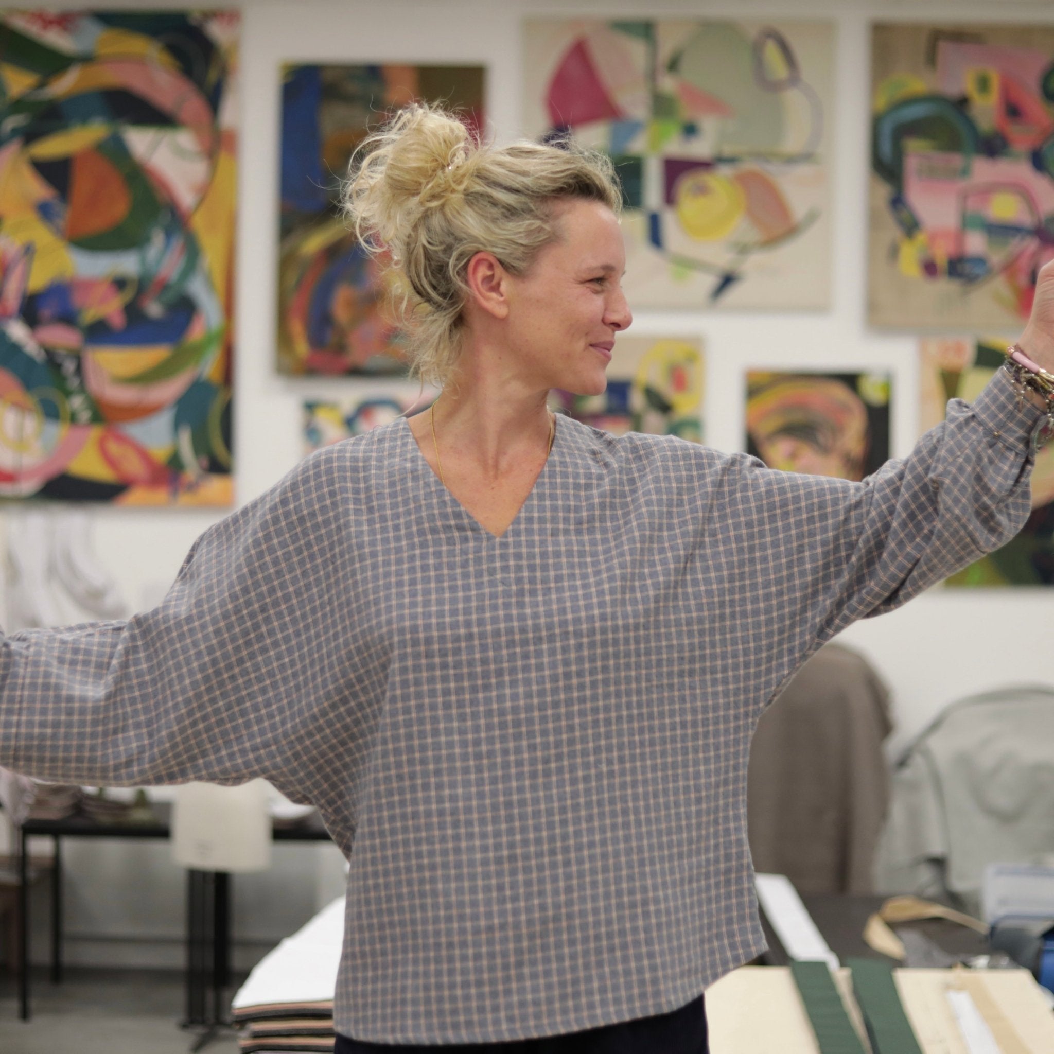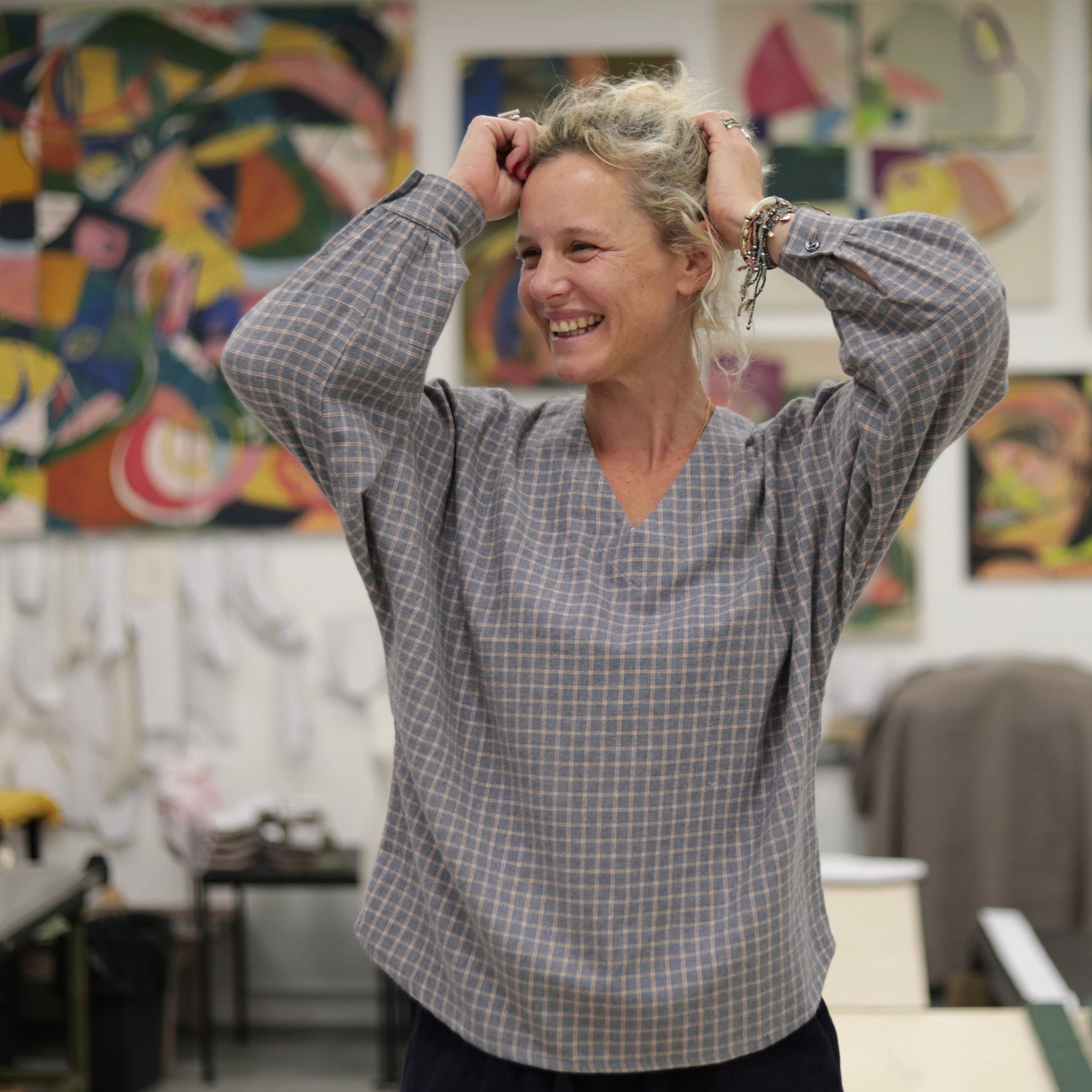 Blouse Mina – Flanelle tartan de coton acidulé - Quintessence
