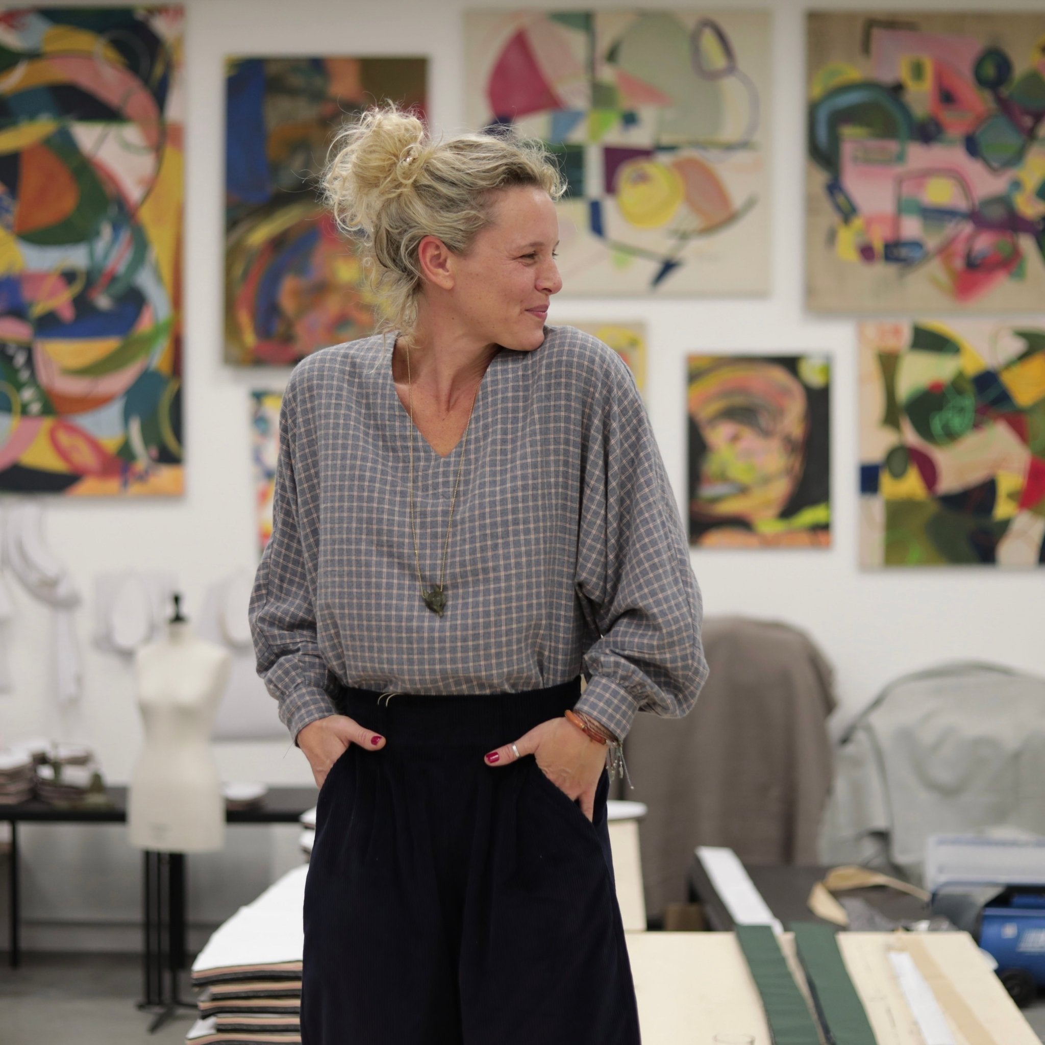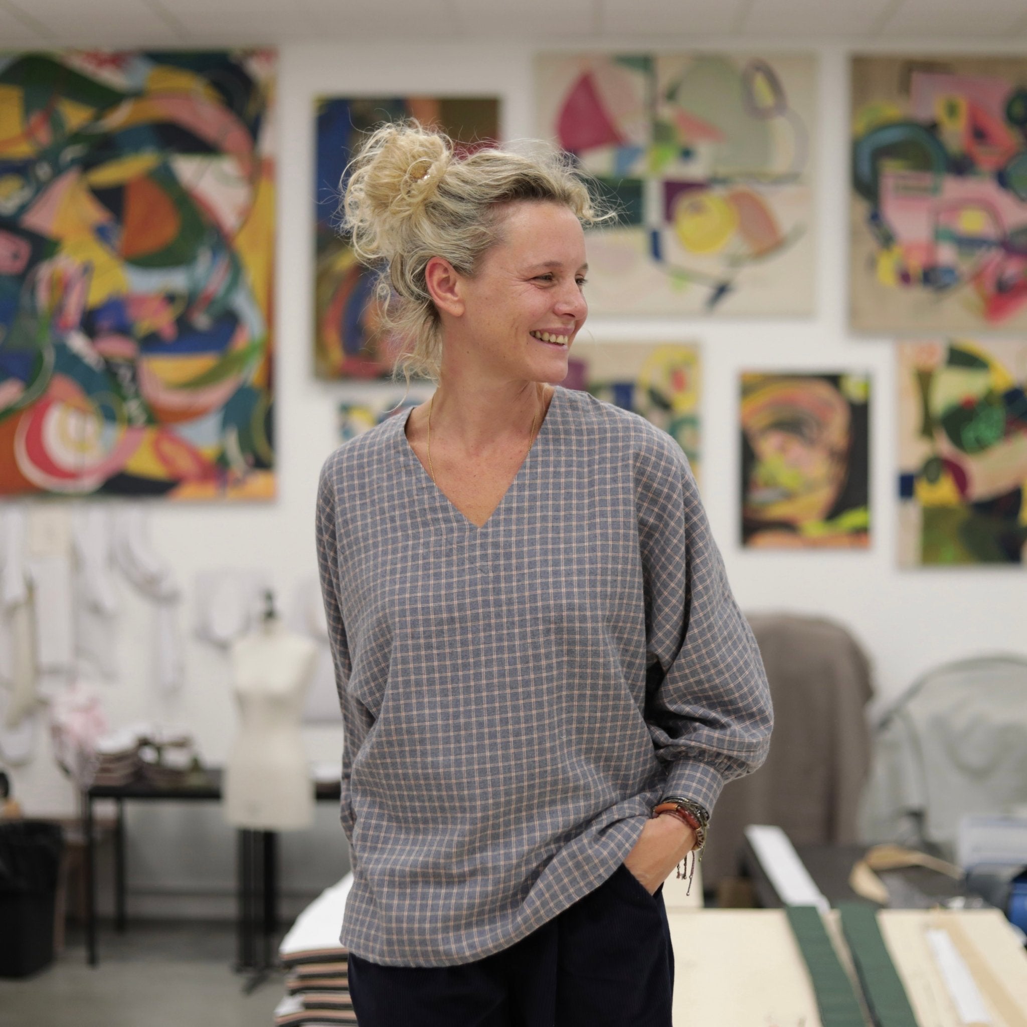 Fabriquée avec soin dans notre atelier Quintessence à Roubaix, cette blouse incarne le savoir-faire local, la qualité artisanale et la douceur intemporelle de notre maison.