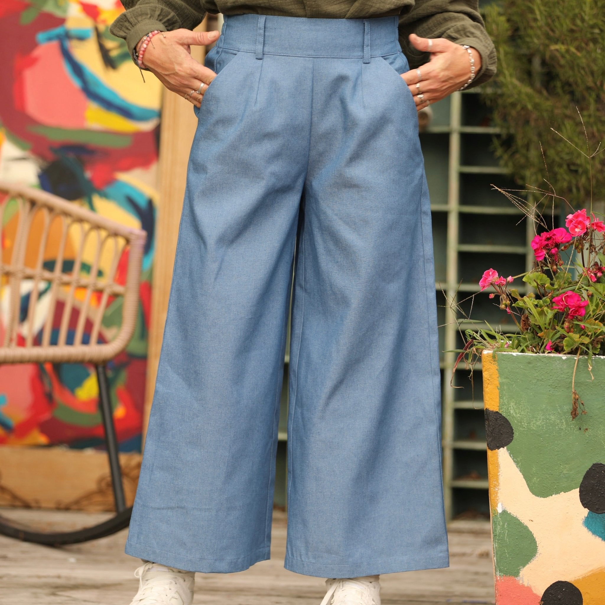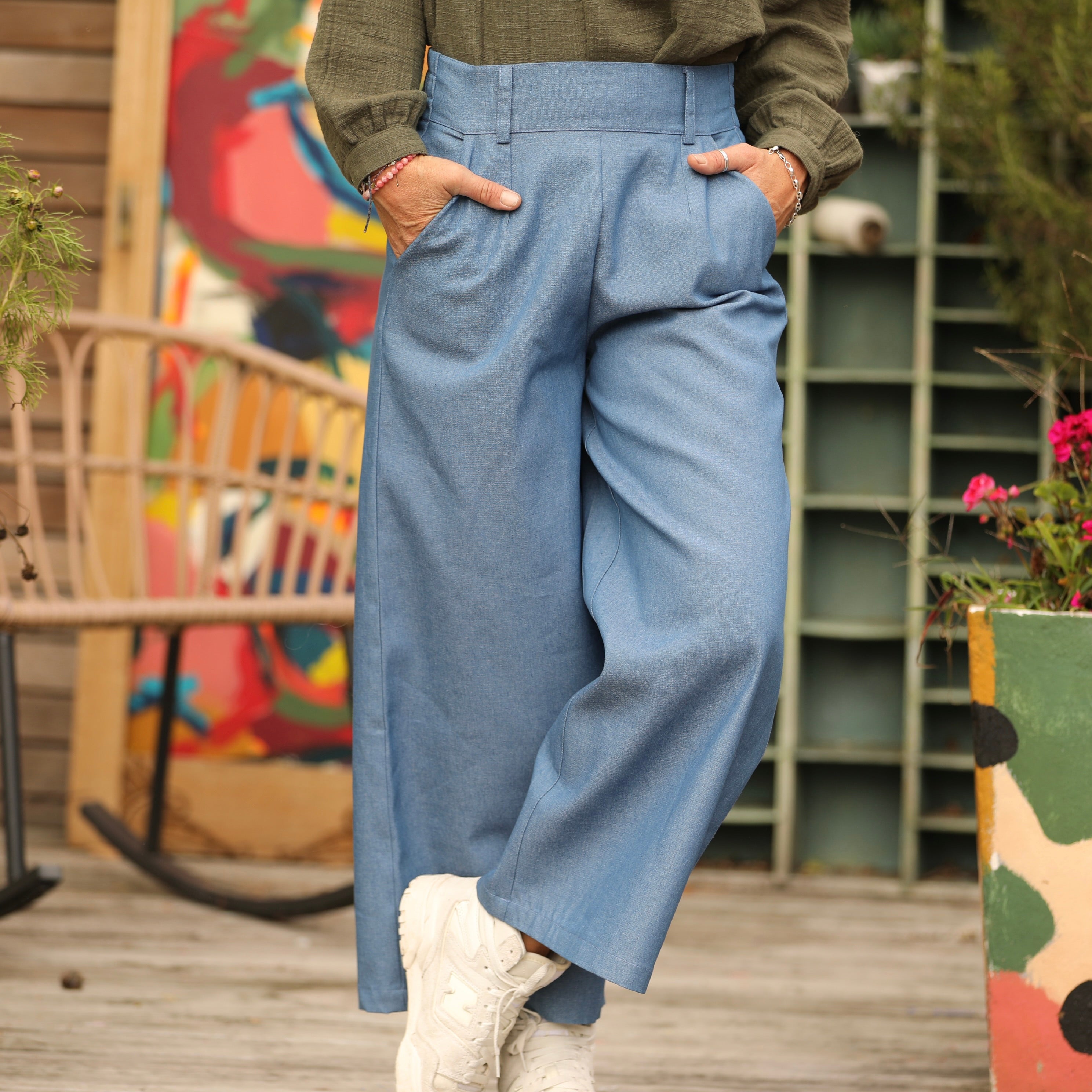 Alex, 10cm plus court que son grand frère Tom, avec ses jambes larges, ses pinces piqués à la taille et son dos élastiqué, c'est un pantalon chic et  confort.