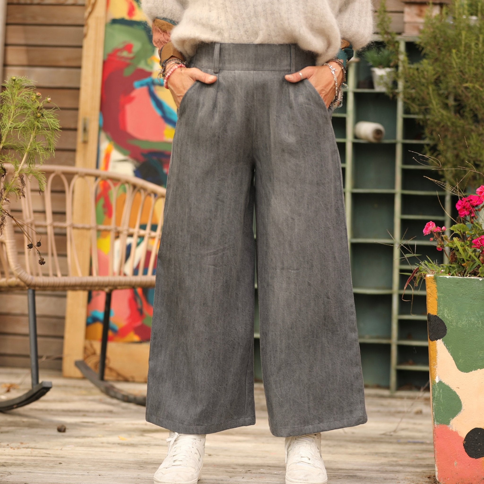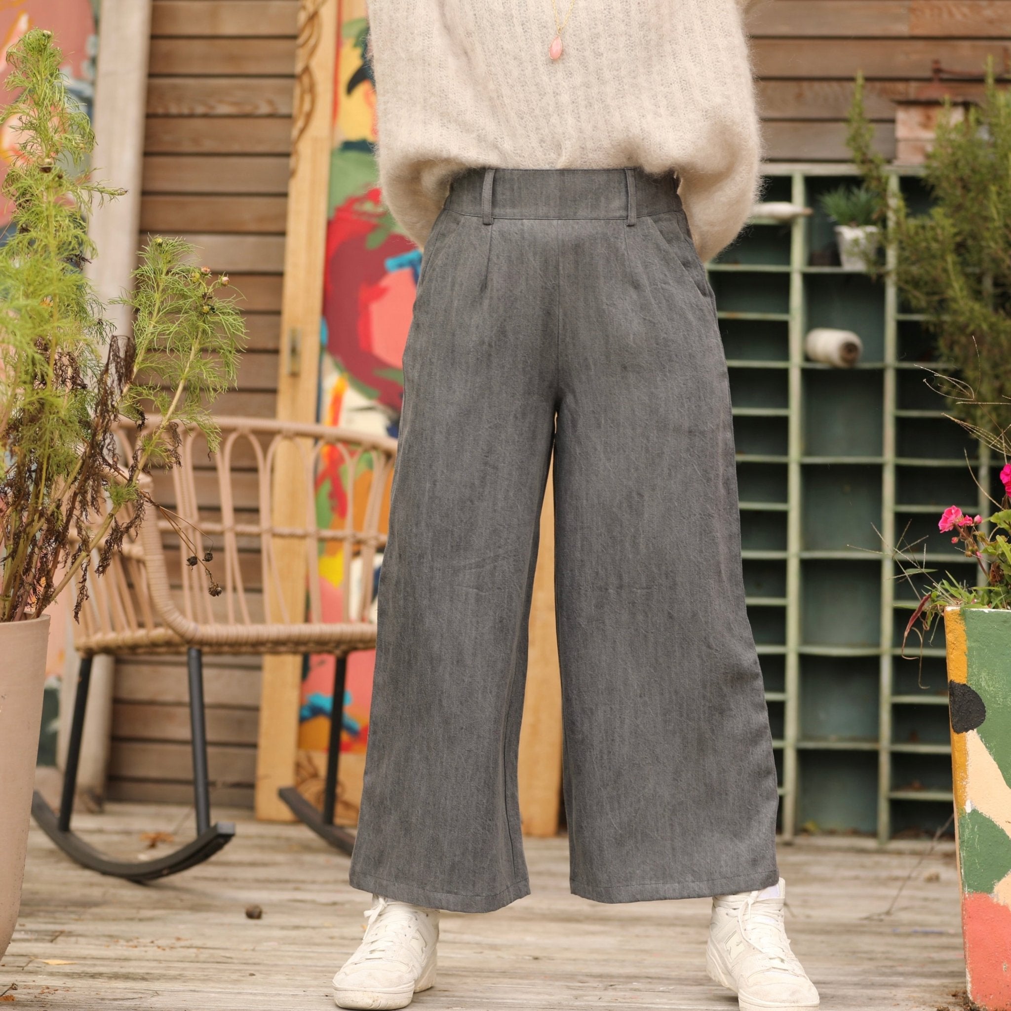 Alex, 10cm plus court que son grand frère Tom, avec ses jambes larges, ses pinces piqués à la taille et son dos élastiqué, c'est un pantalon chic et  confort.