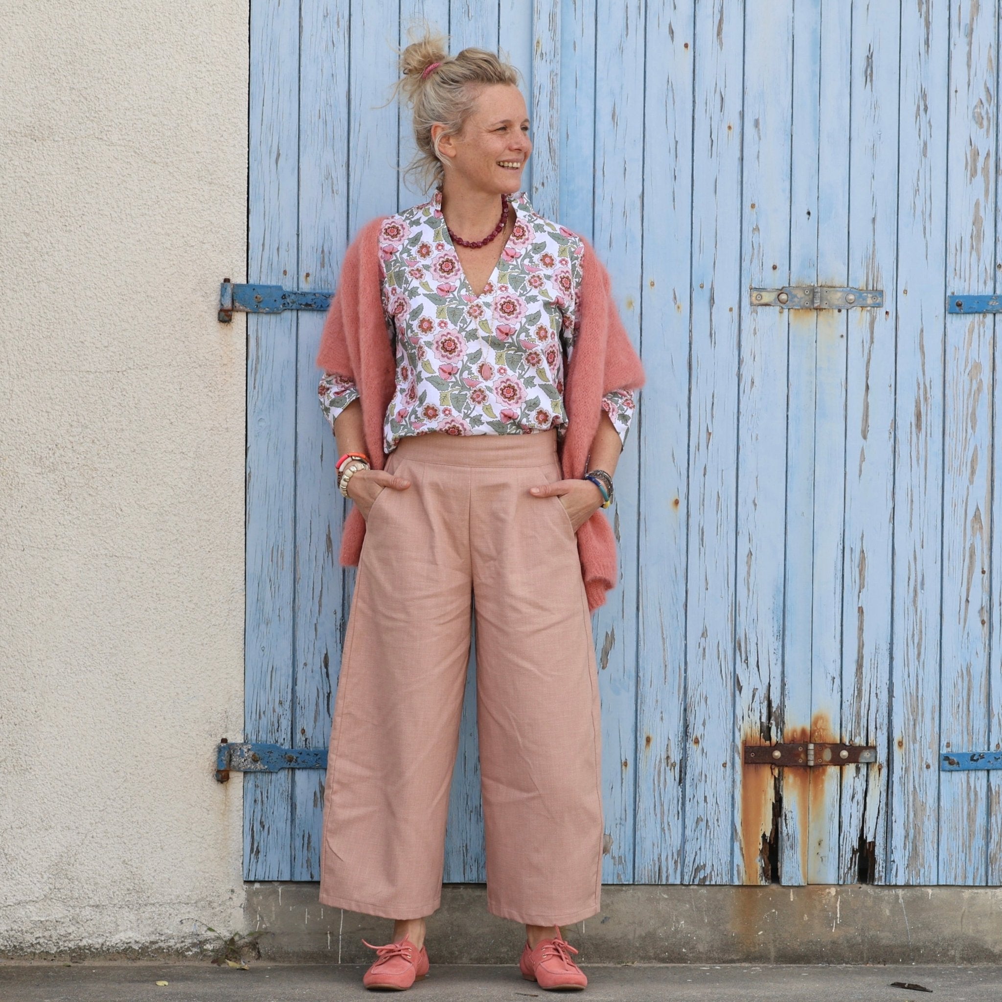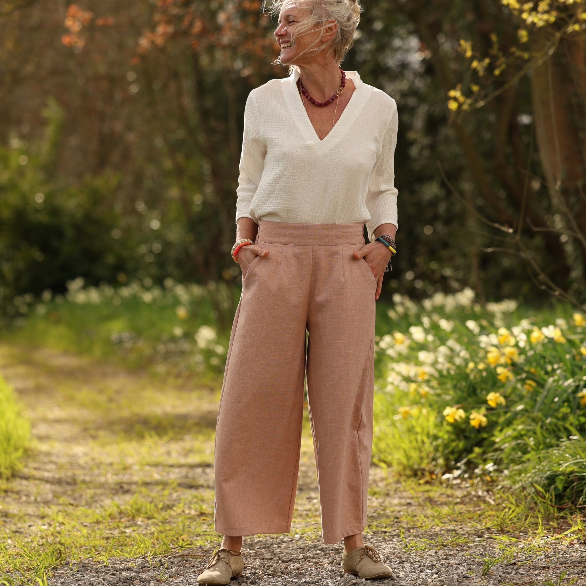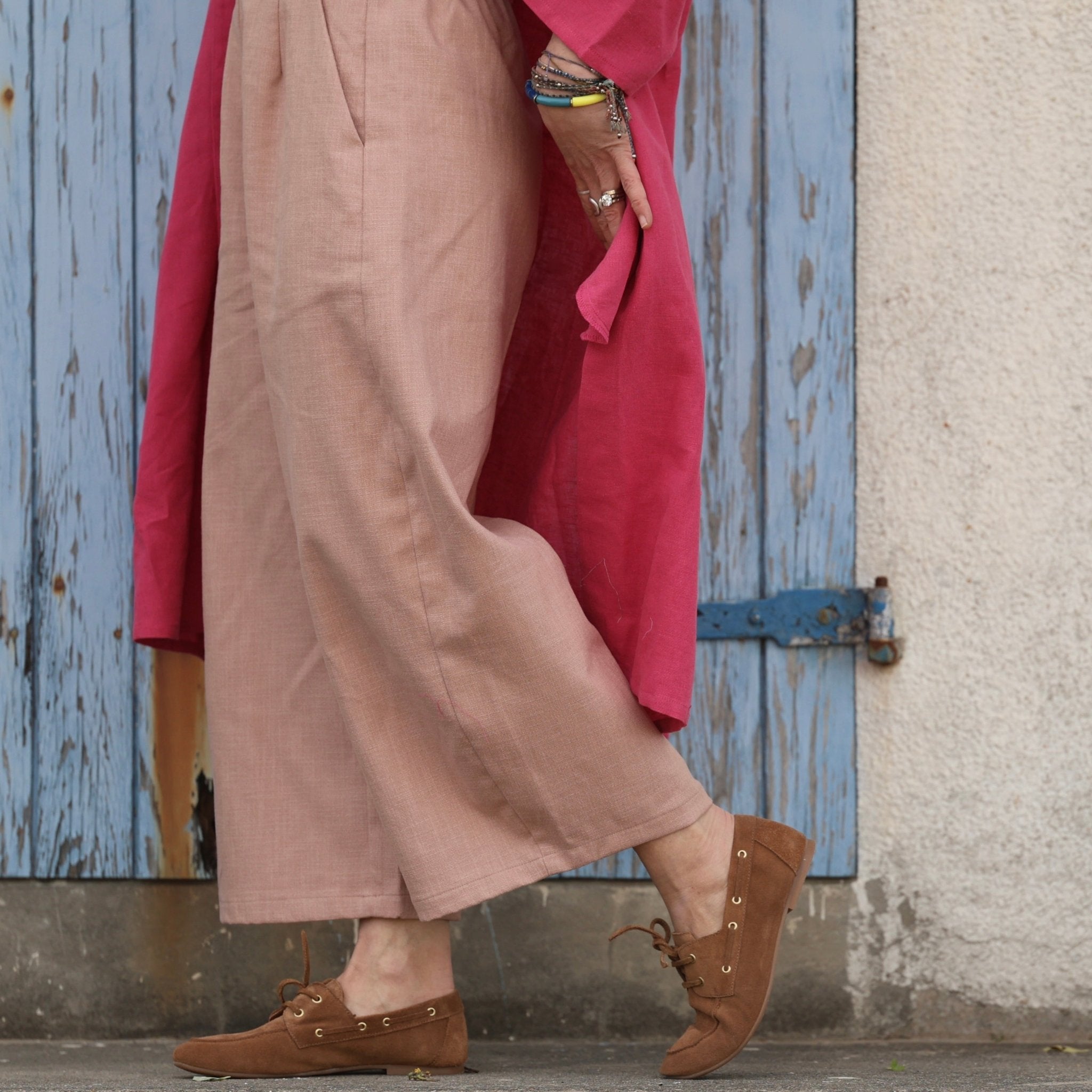 Pantalon Briac - Coton/lin/viscose rose poudré