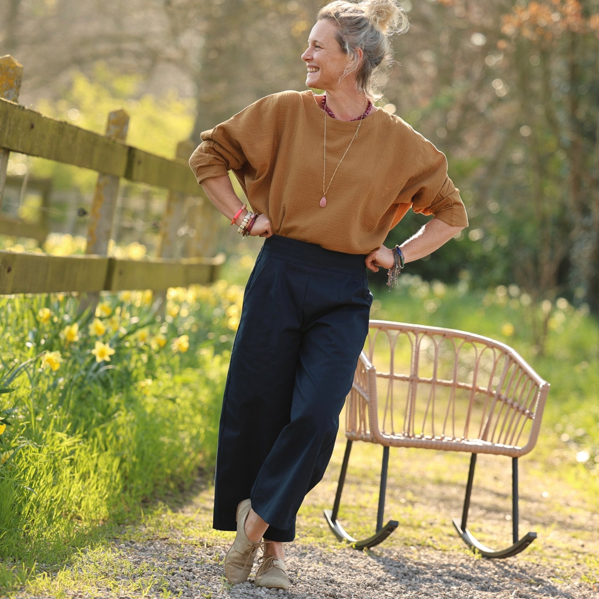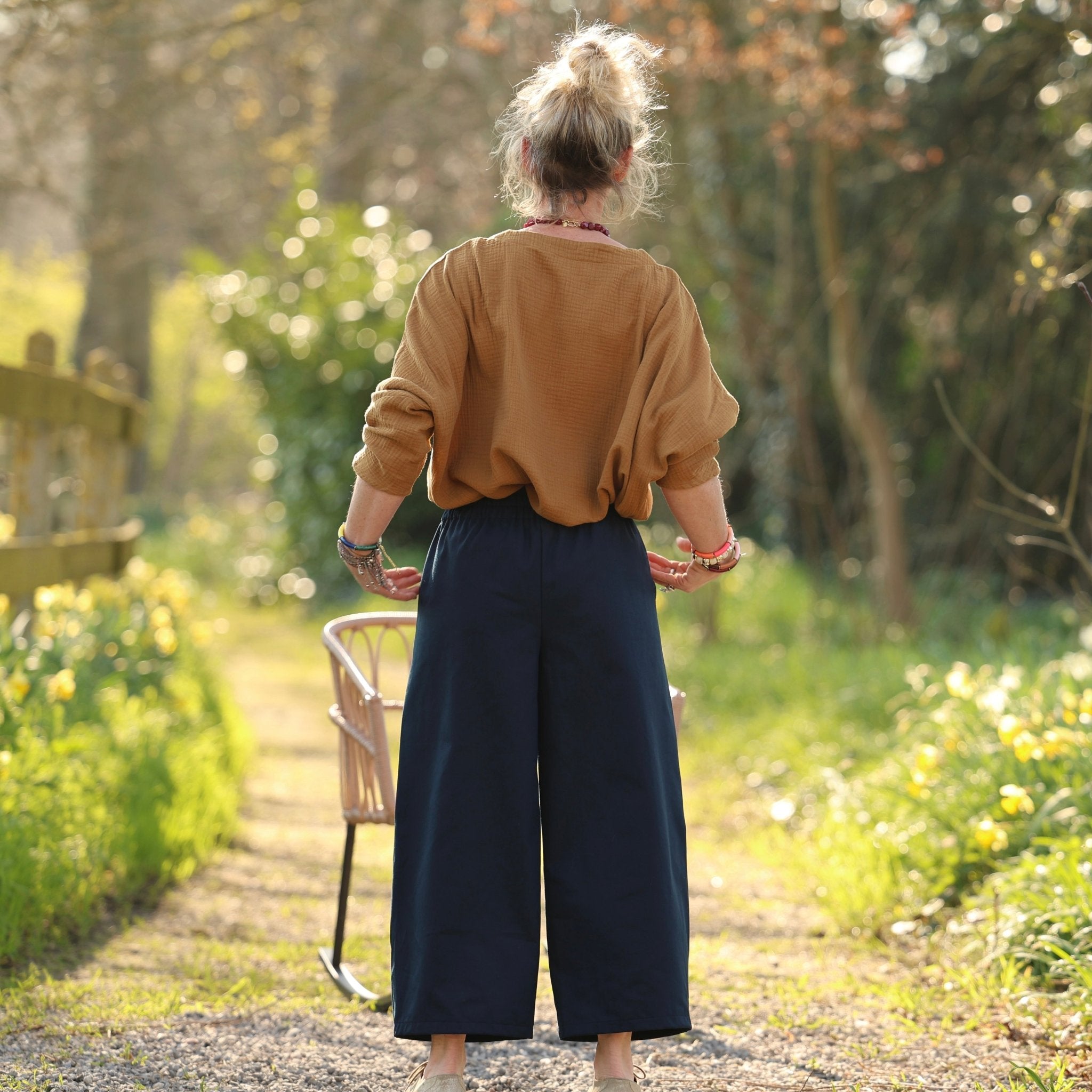 Le sergé de coton est dense et structuré, avec une main souple qui crée un tombé exceptionnel. Ce contraste entre matière robuste et toucher fluide donne à Briac une présence unique, à la fois structurée et libre.