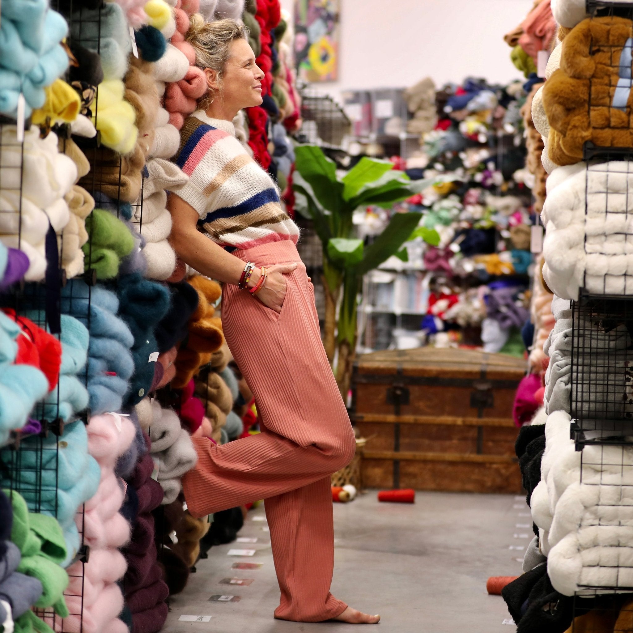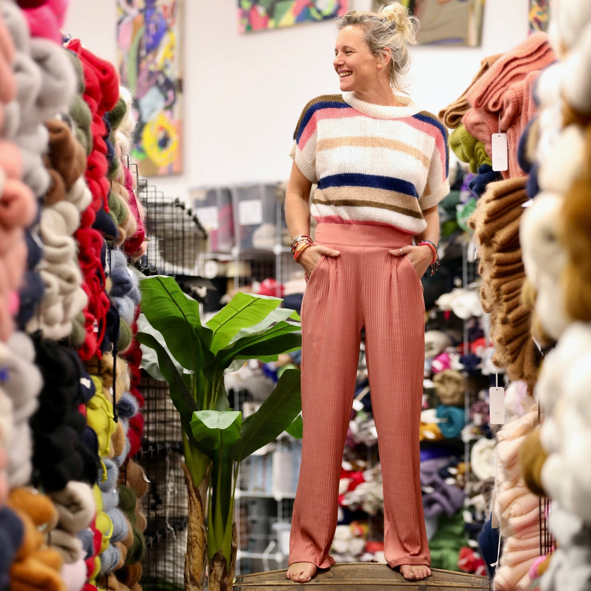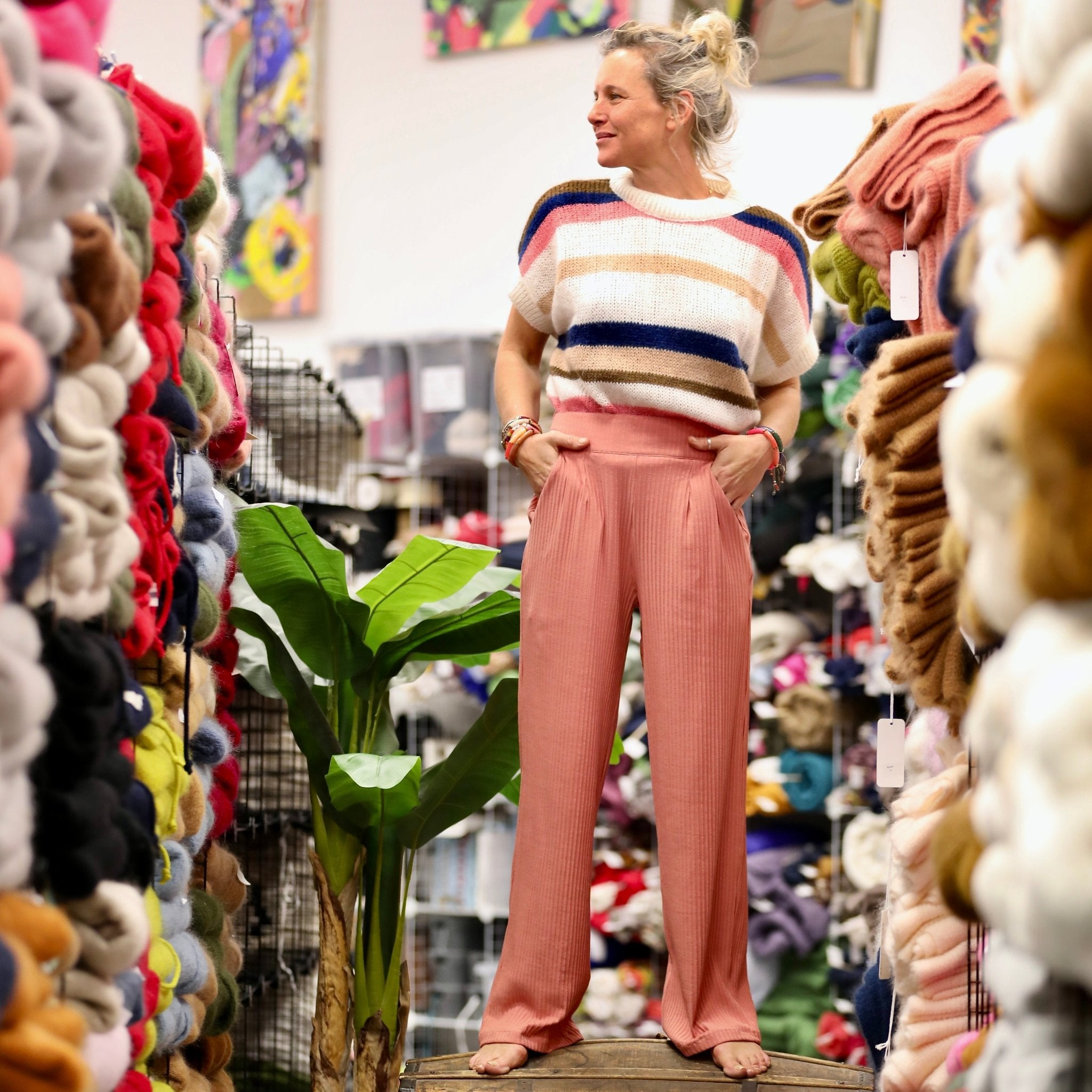 Le Pantalon Cocoon Louis — jersey côtelé rose boisé