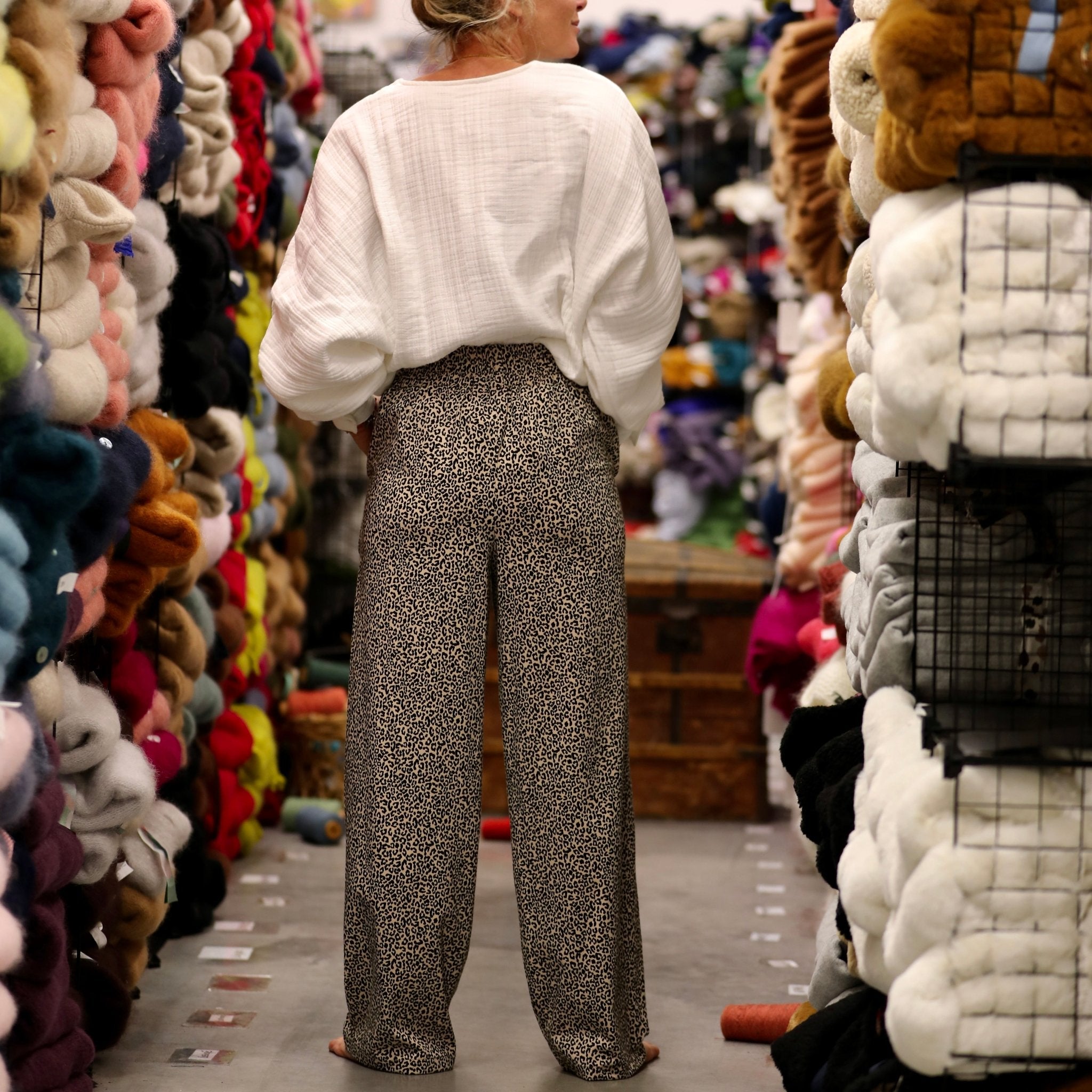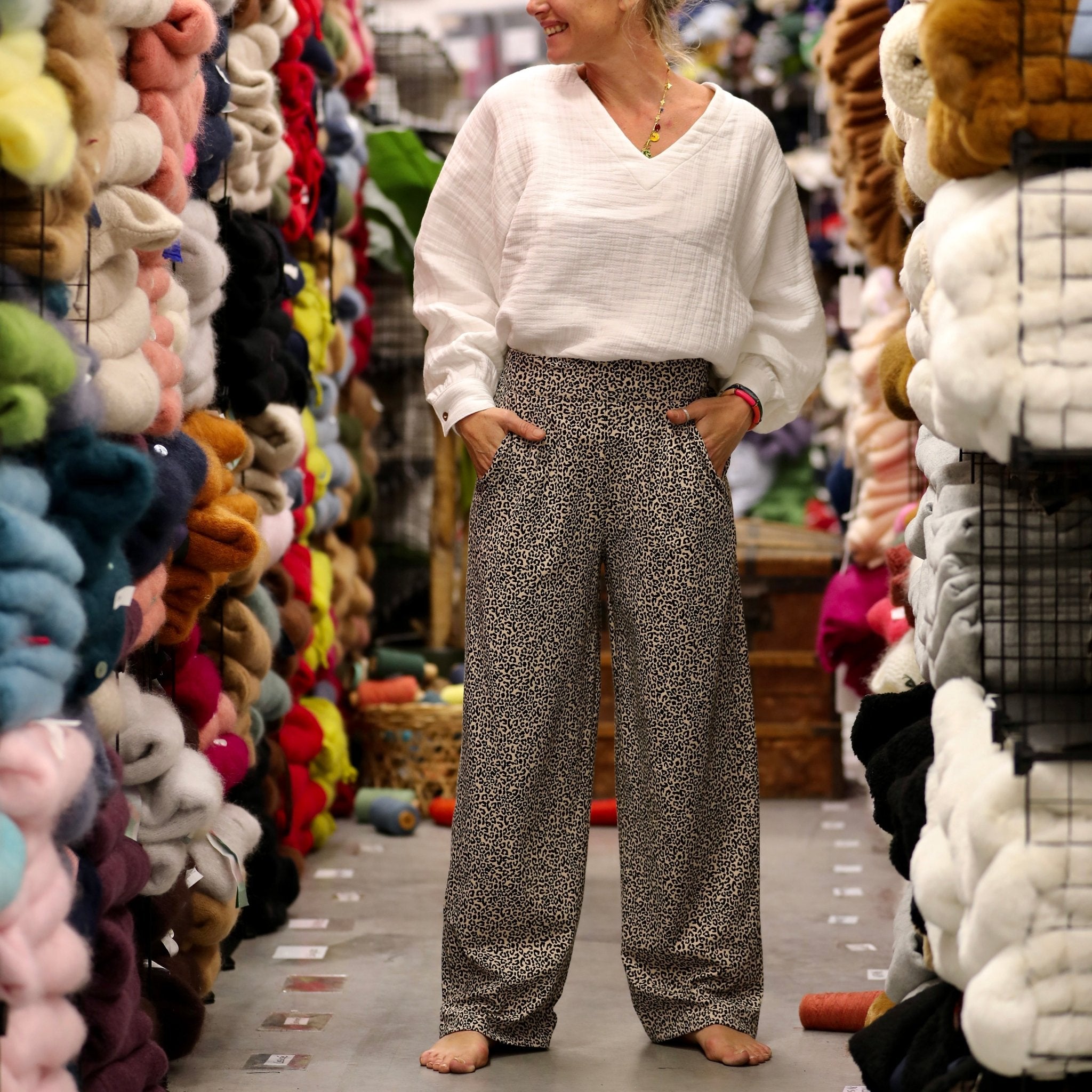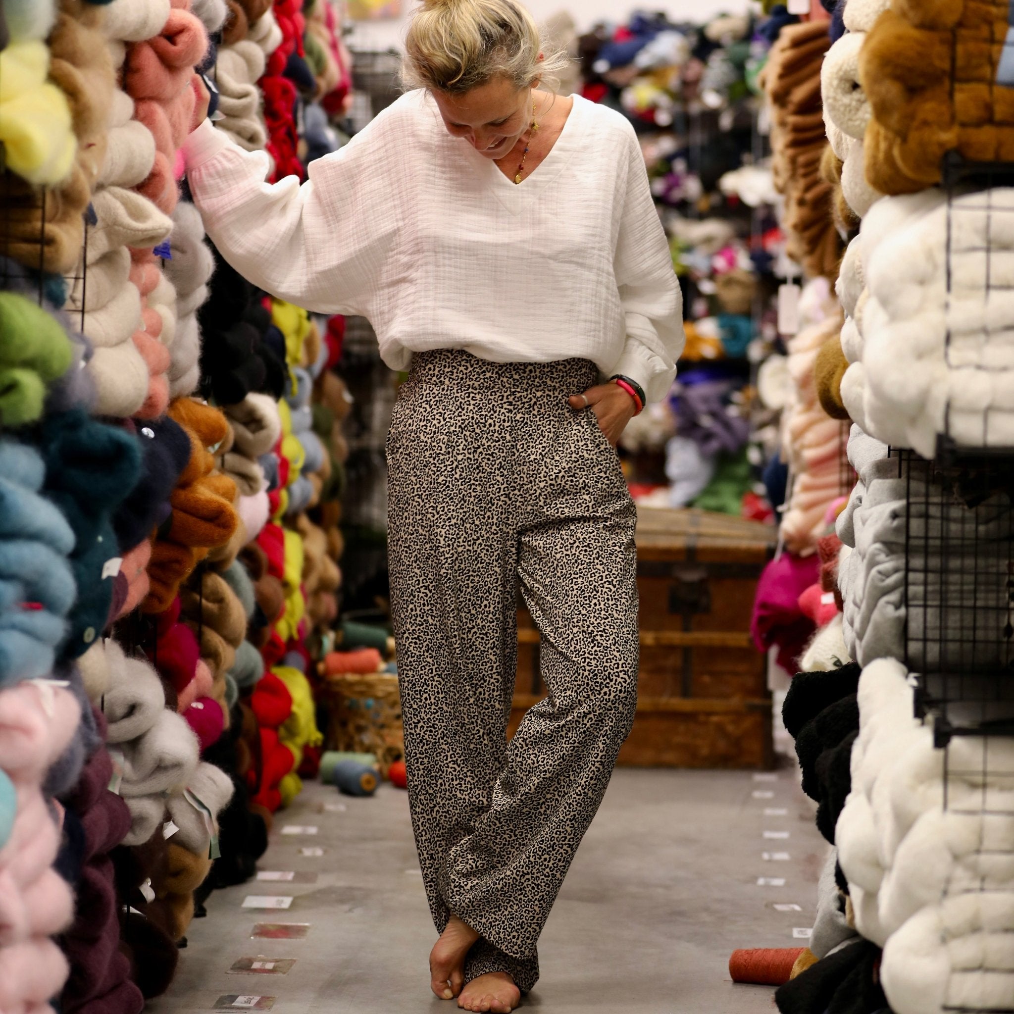 Le Pantalon Cocoon Louis se porte aisément avec une maille unie, un tee-shirt blanc, un sweat oversize ou une blouse fluide. L’imprimé léo donne du caractère aux silhouettes casual, cosy ou minimalistes, sans jamais délaisser le confort.