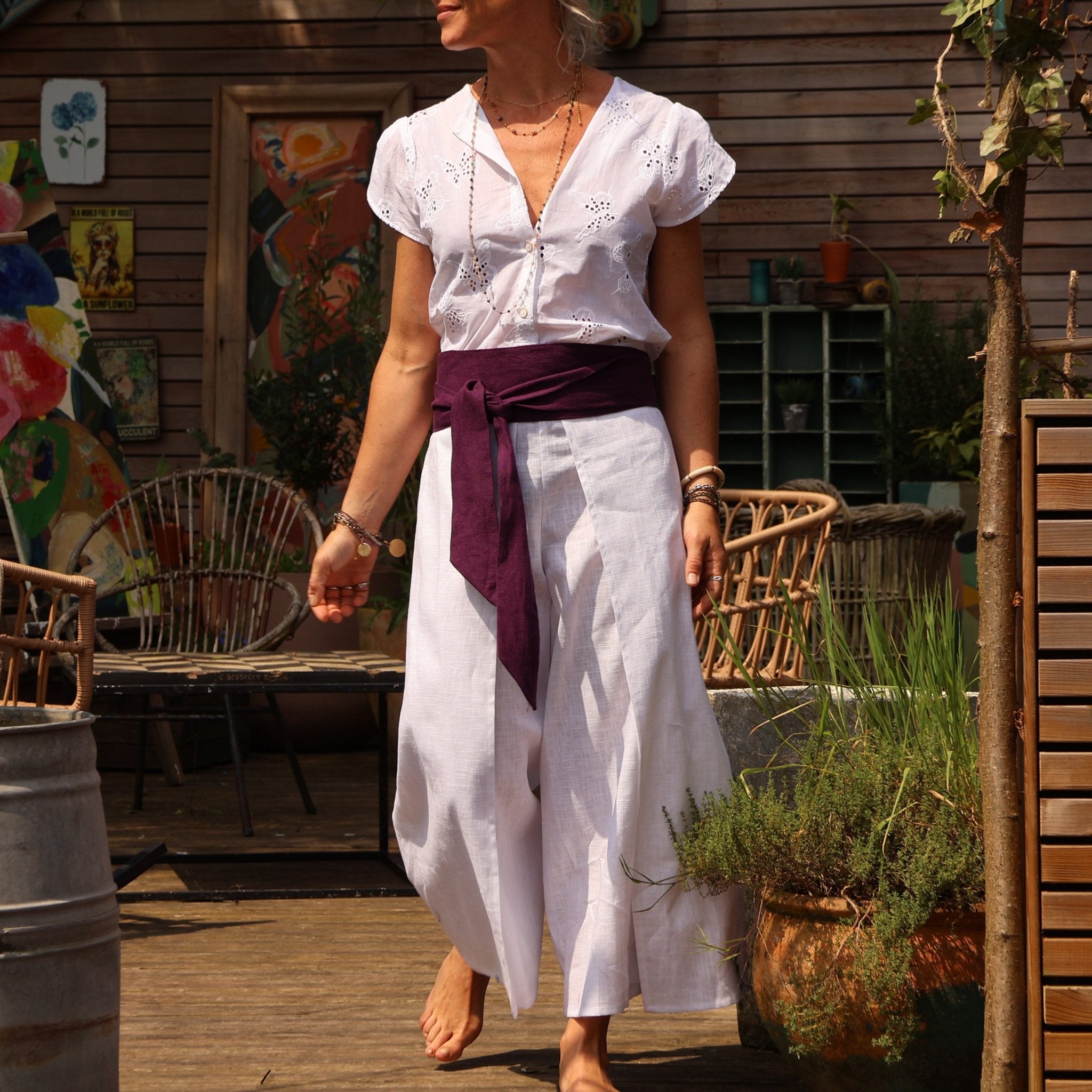 Ce pantalon peut être raccourci ou rallongé à mesure, merci de préciser votre dimension haut de ceinture-bas. En cas de sur-mesure, les retours ne seront pas possibles.