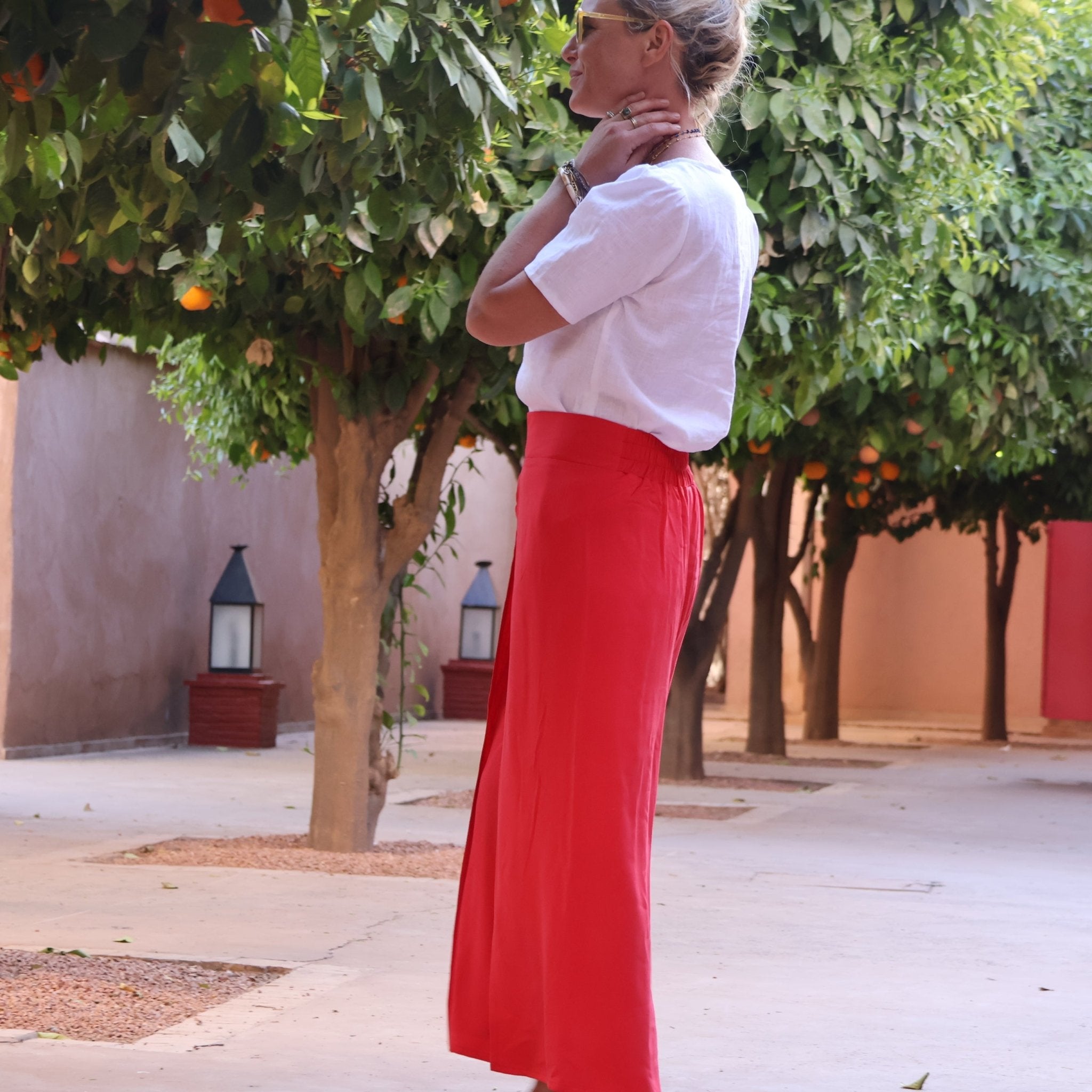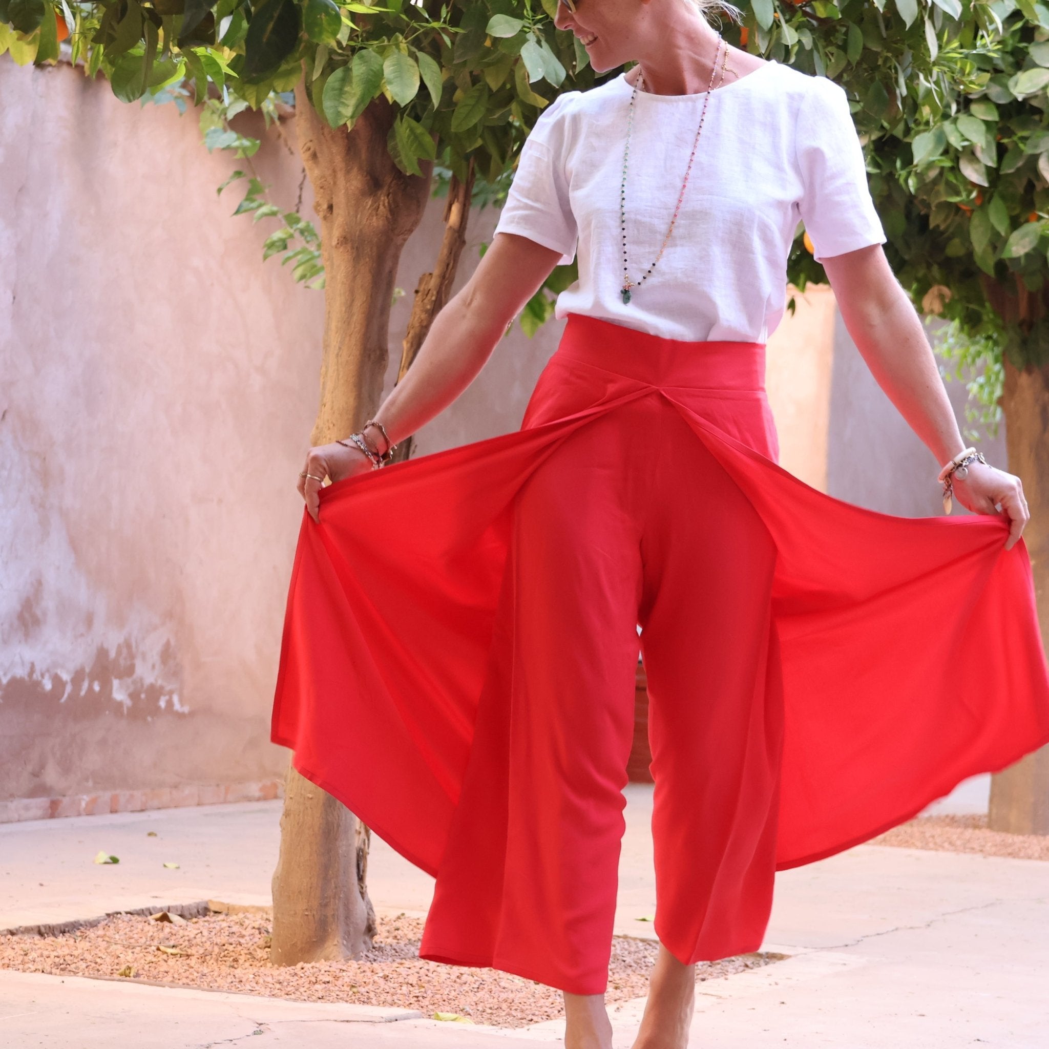 Pantalon drapé Mathilde - sergé de viscose rouge