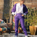 Il présente des plis sur le devant et une taille élastiquée au dos afin de l'enfiler facilement sans boutonnière.