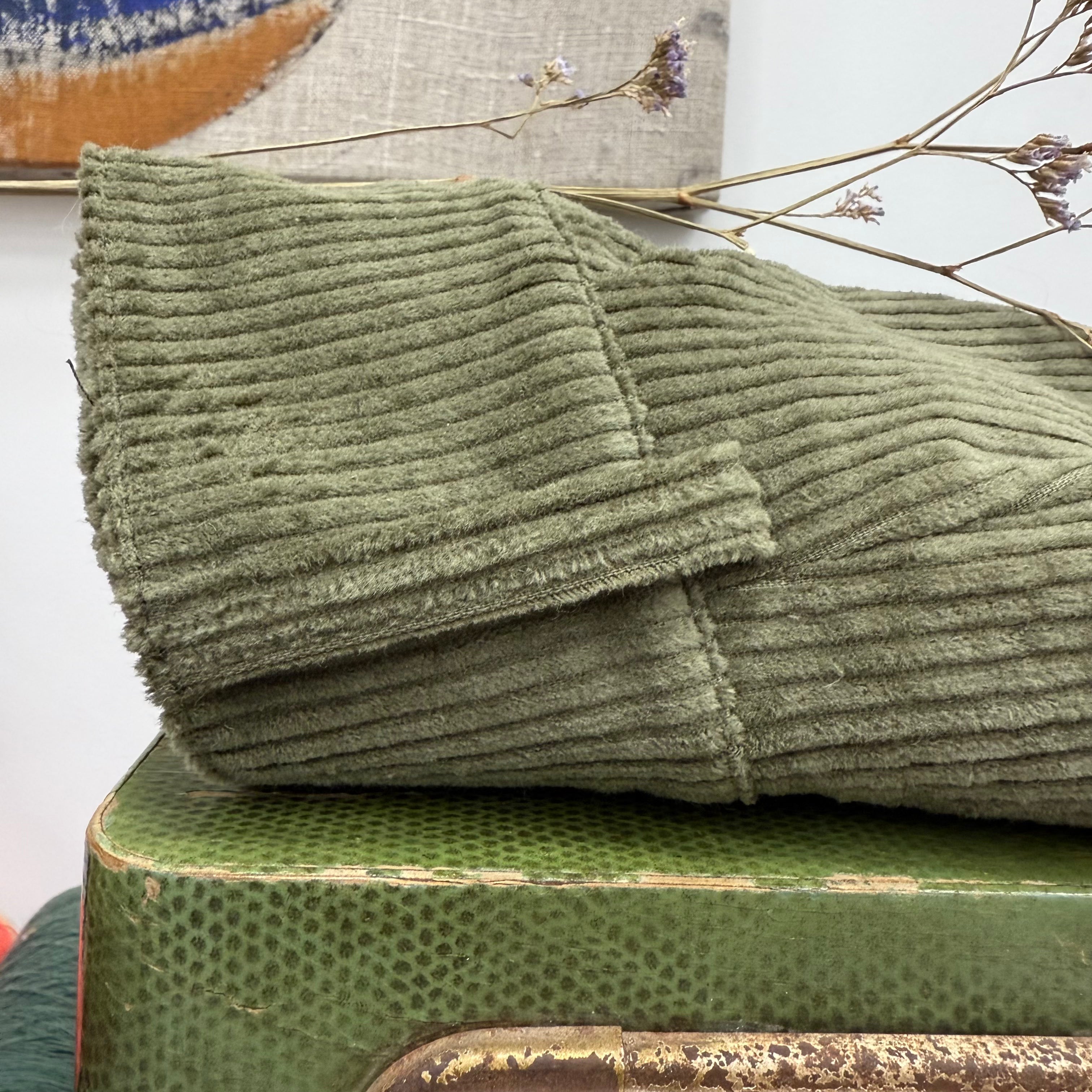 Le velours : lavage à basse température (30°). Si le tissu est froissé, vous avez la possibilité d’utiliser de la vapeur d’eau (défroisseur à main ou fer à repasser mode vapeur), il ne faut pas coller le fer contre le velours et le tenir à environ 5 cm de votre tissu. Un séchage à plat est recommandé.