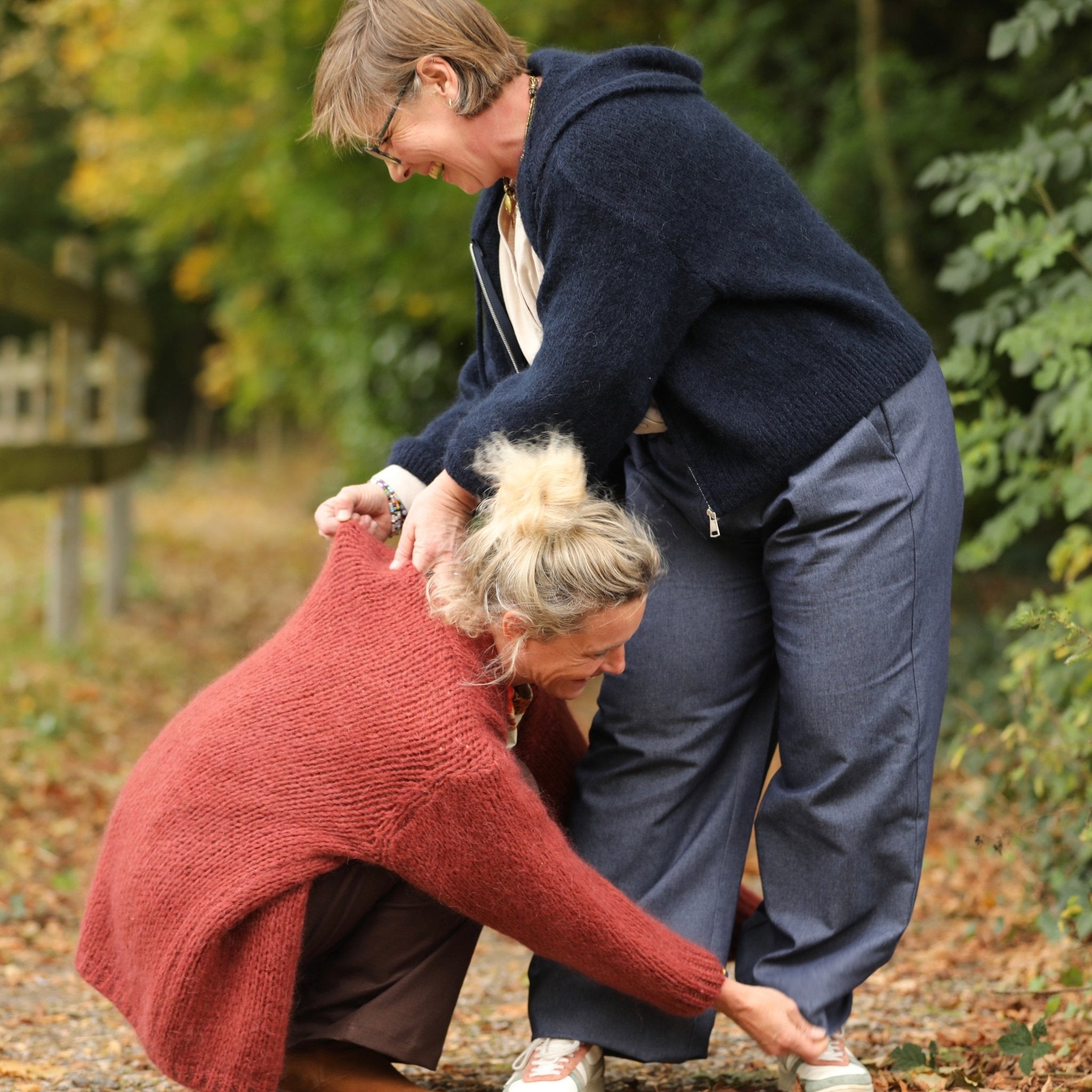 Marine porte une taille S pour un 36 et mesure 1m63, Fanny porte une taille XL pour 1m65 (pour un tombé parfait, il faudrait retirer 8cm en longueur)