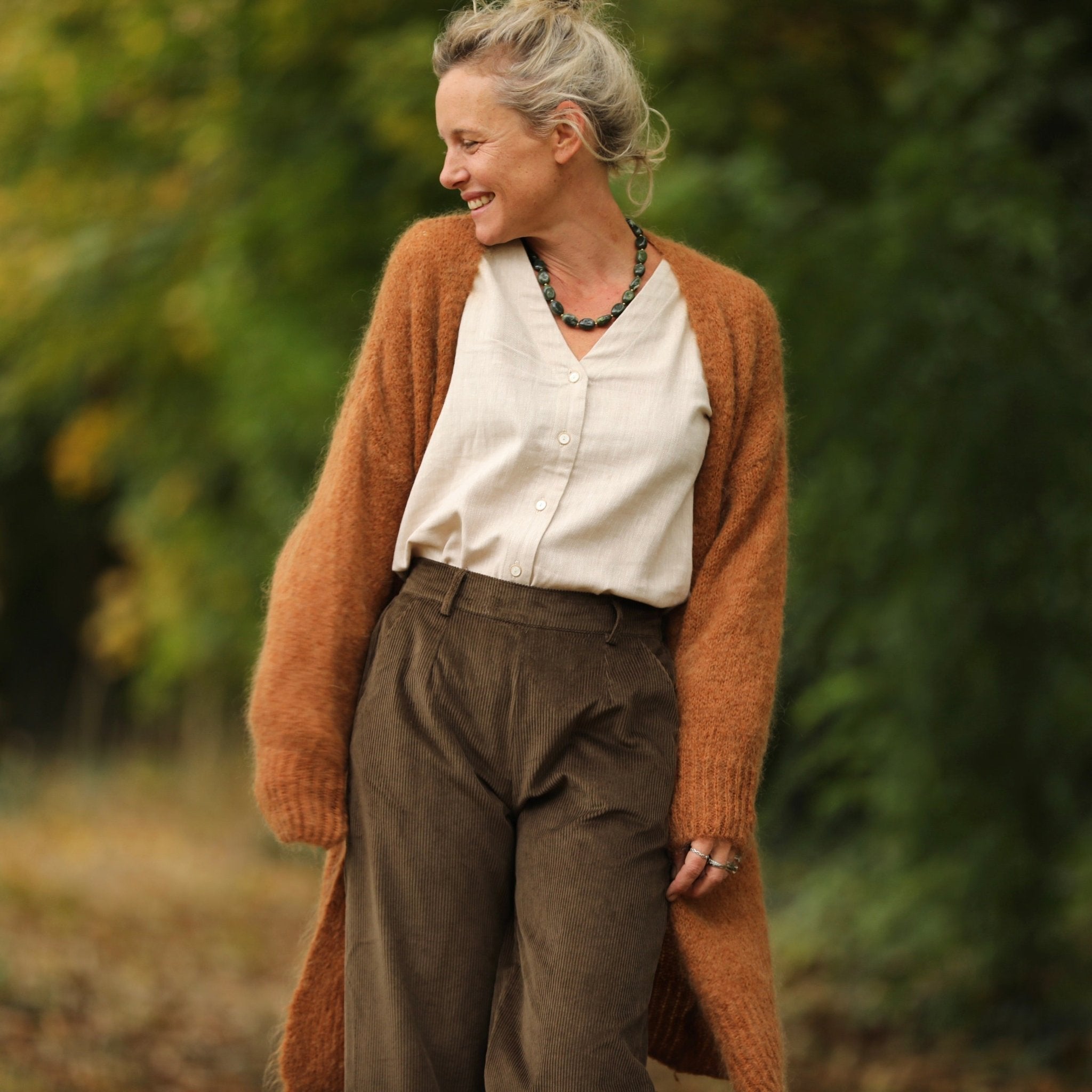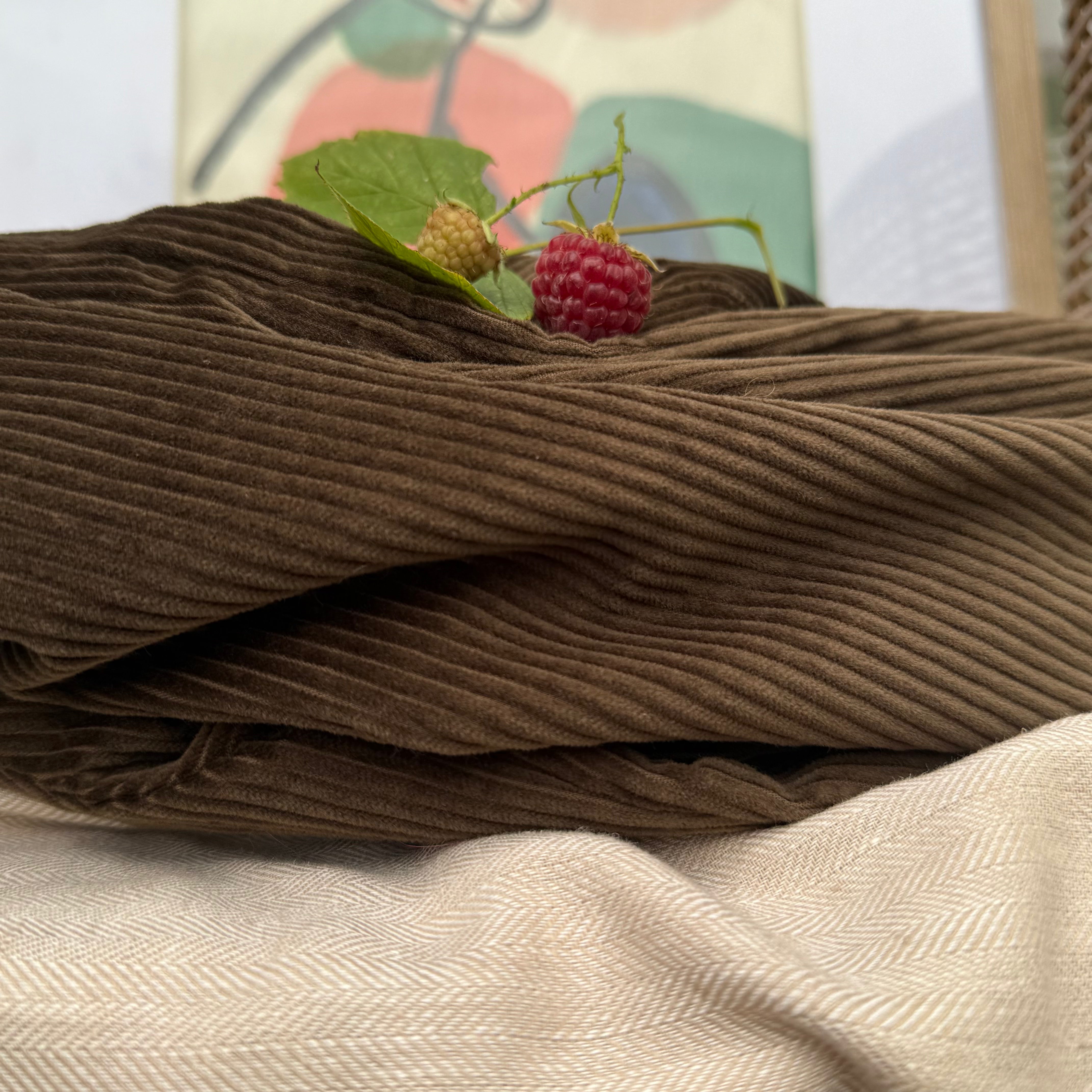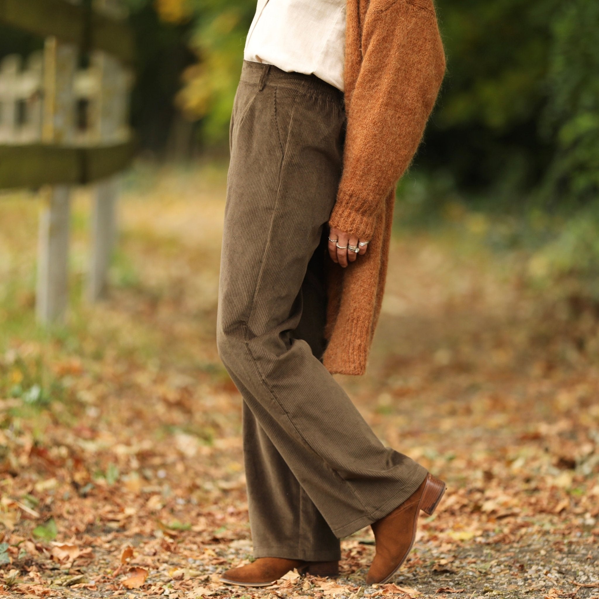 Le velours côtelé moka séduit par sa teinte chaude et profonde, facile à assortir et parfaite pour la saison. Les poches italiennes ajoutent une touche pratique et élégante. Ce pantalon combine allure, confort et finitions soignées pour devenir un essentiel du vestiaire féminin.
