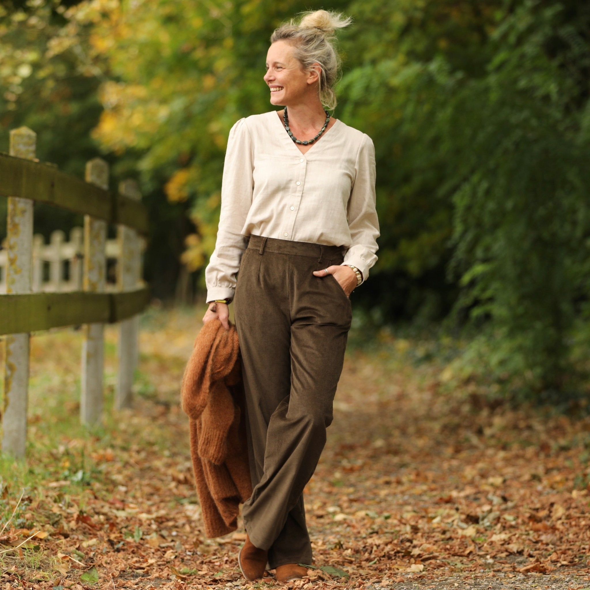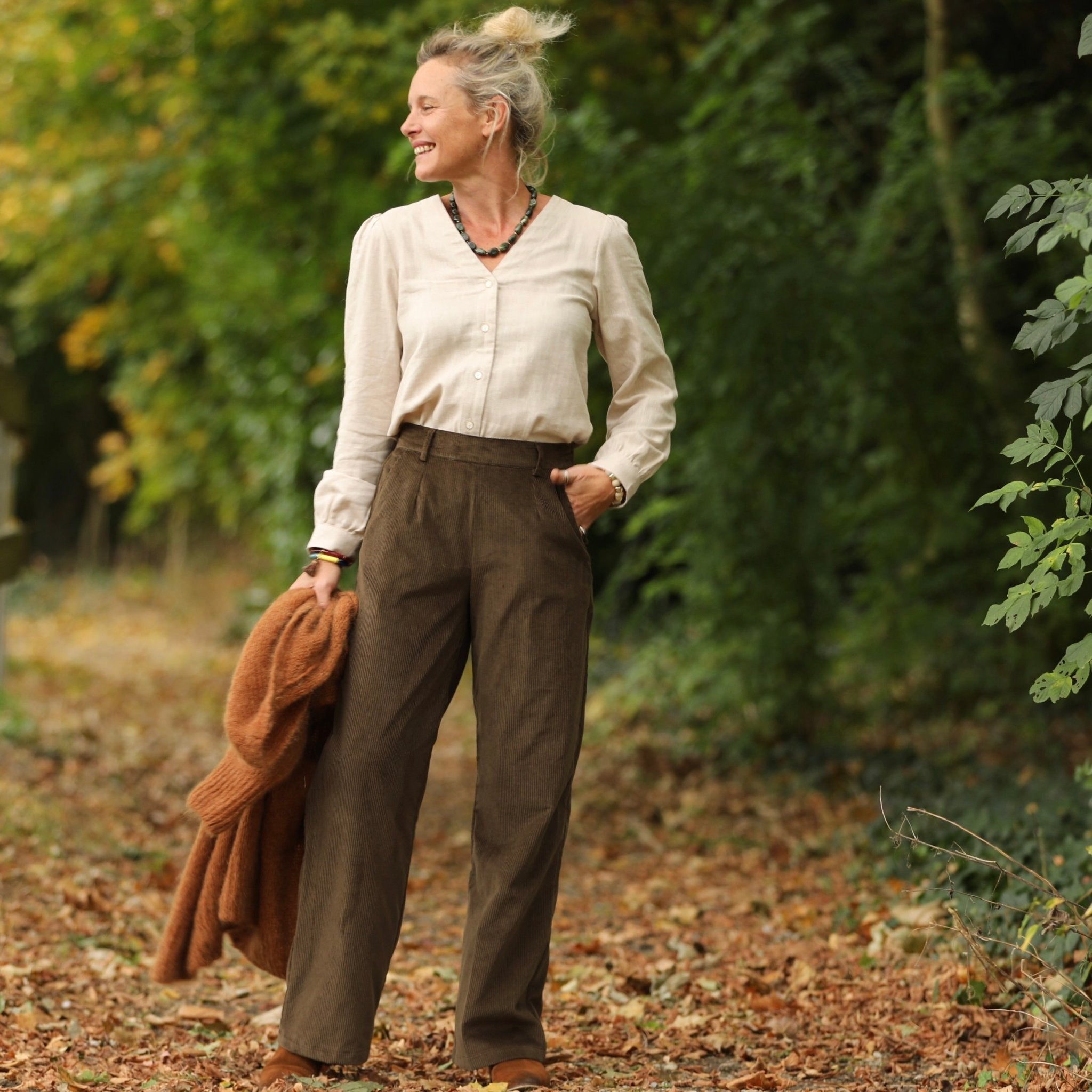 Le pantalon Nestor en velours côtelé moka incarne l’élégance décontractée chère à Quintessence. Confectionné dans un 100 % coton au toucher doux et à la texture riche, il offre confort et tenue. Sa taille haute affine la silhouette, tandis que la ceinture élastiquée au dos apporte un confort optimal. Les pinces piquées à l’avant et les passants de ceinture structurent la coupe avec justesse.