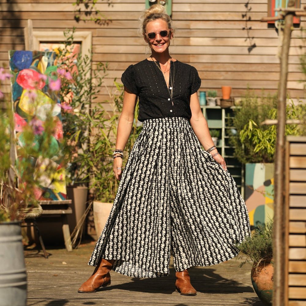 Pantalon Paco - viscose Batik noir/blanc