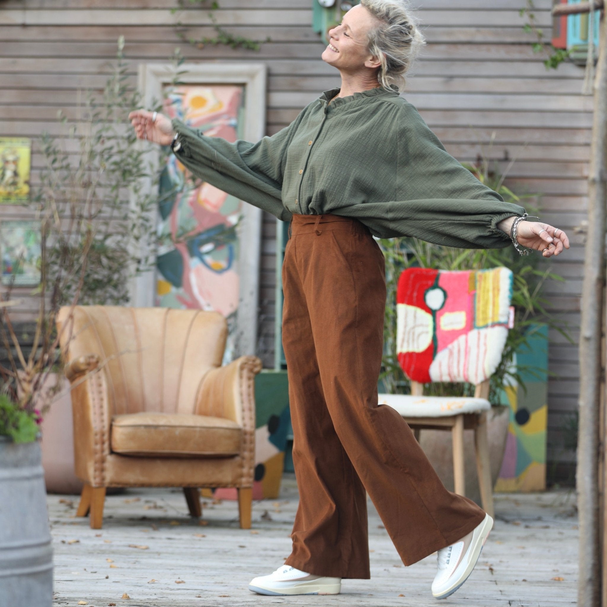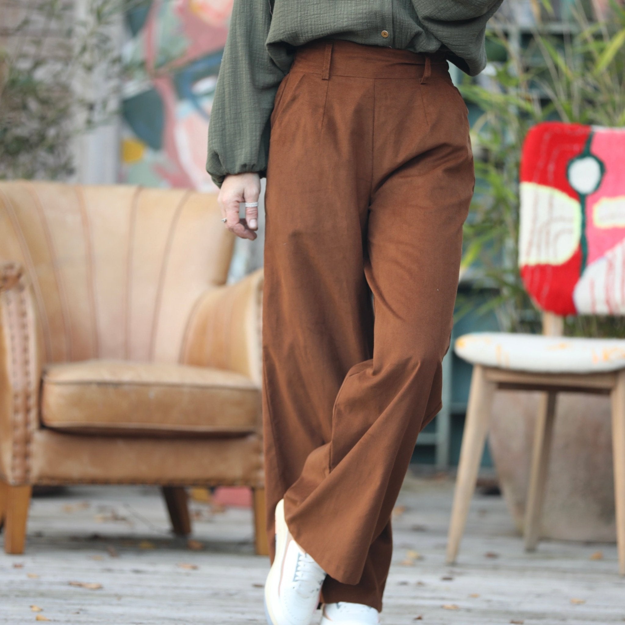 Tom, avec ses jambes larges, ses pinces piqués à la taille et son dos élastiqué, c'est un pantalon chic et  confort.