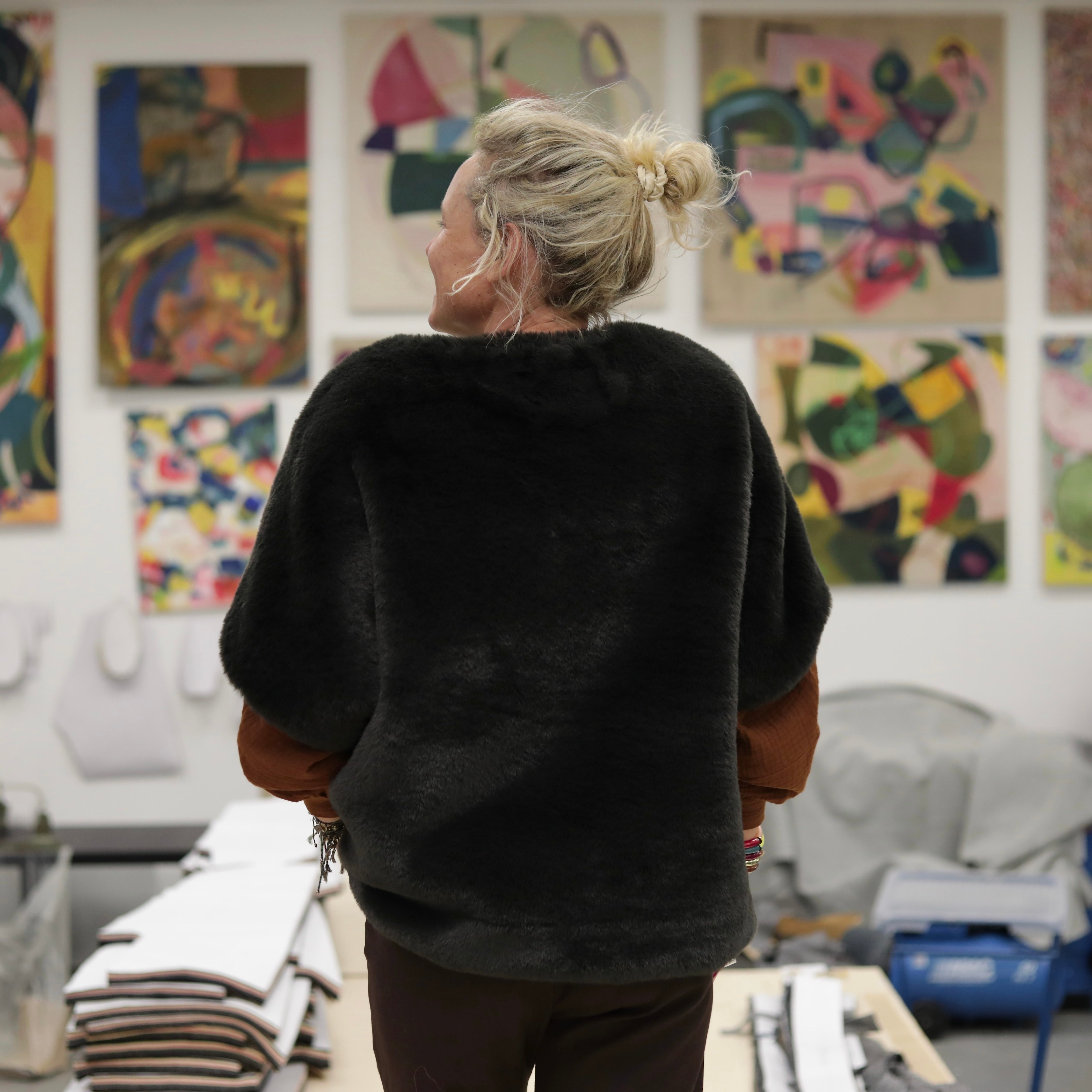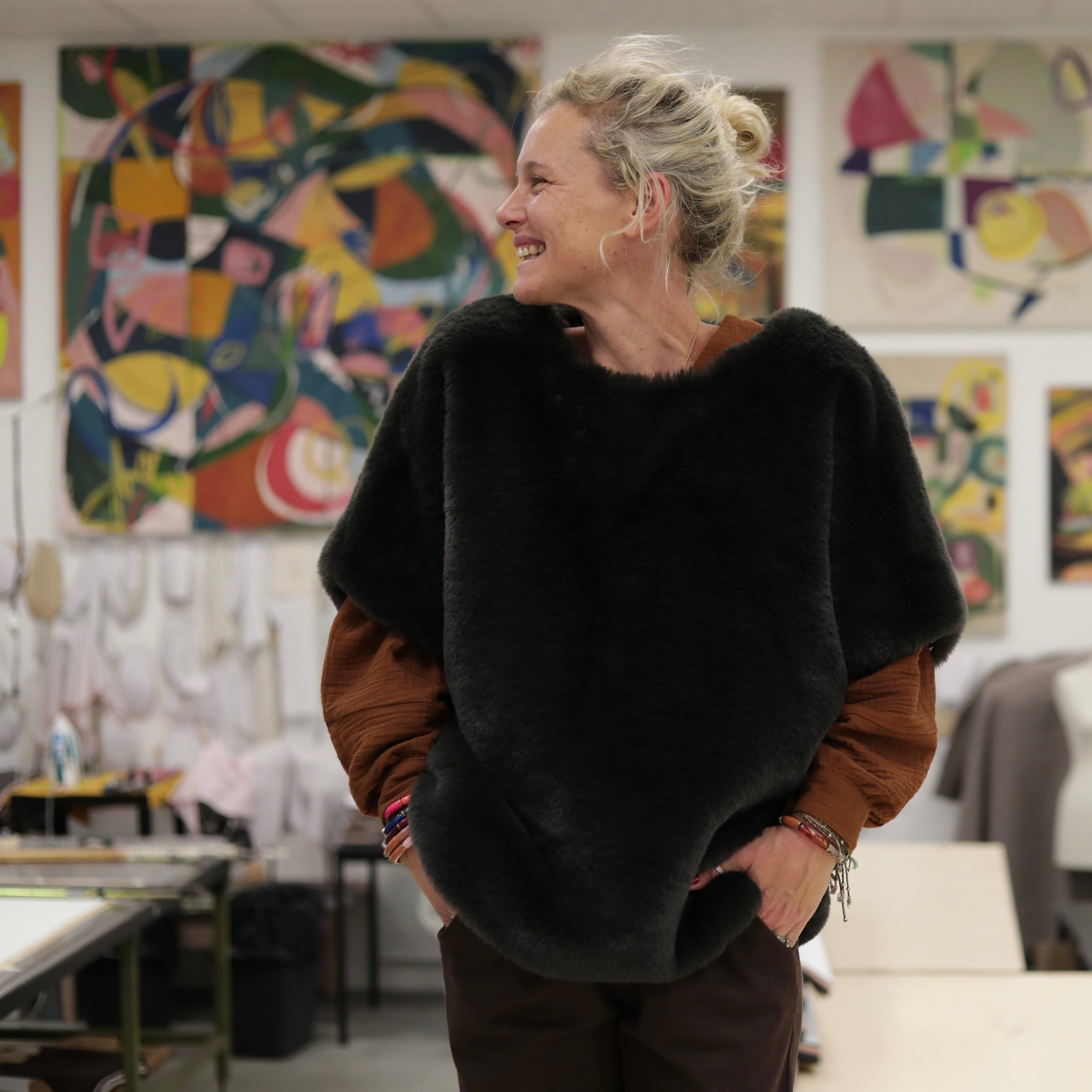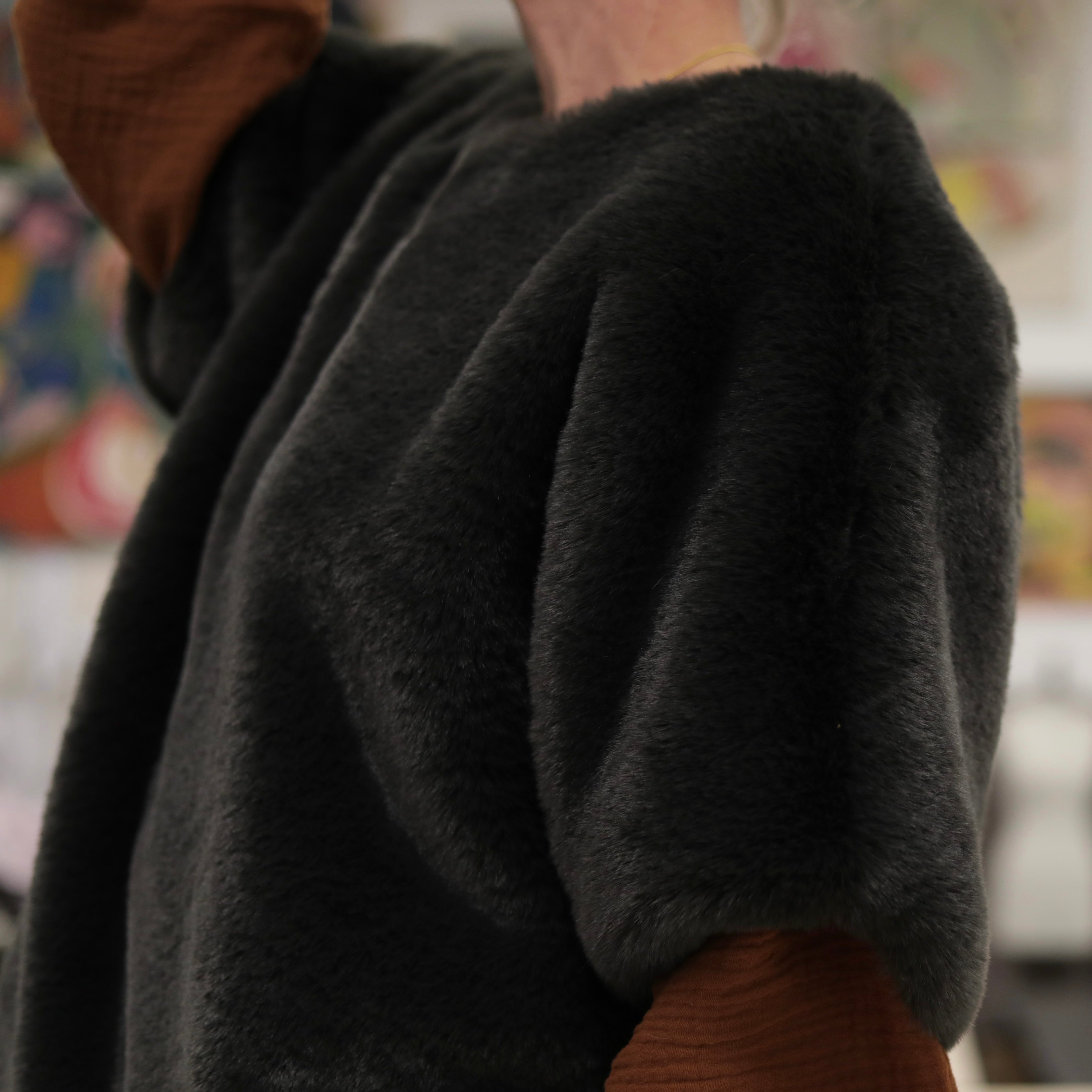Le Poncho Douillet Pétronille - fourrure cendrée