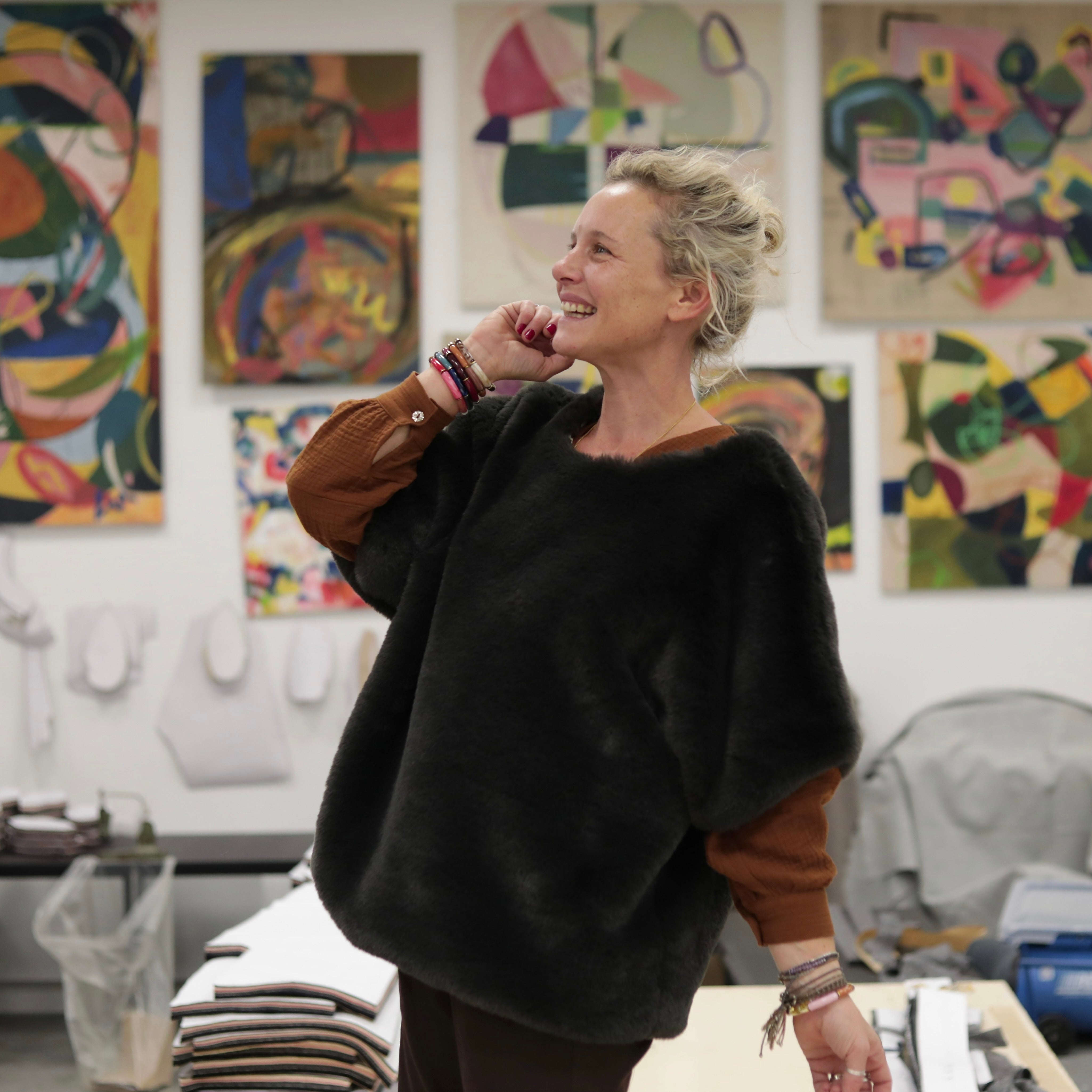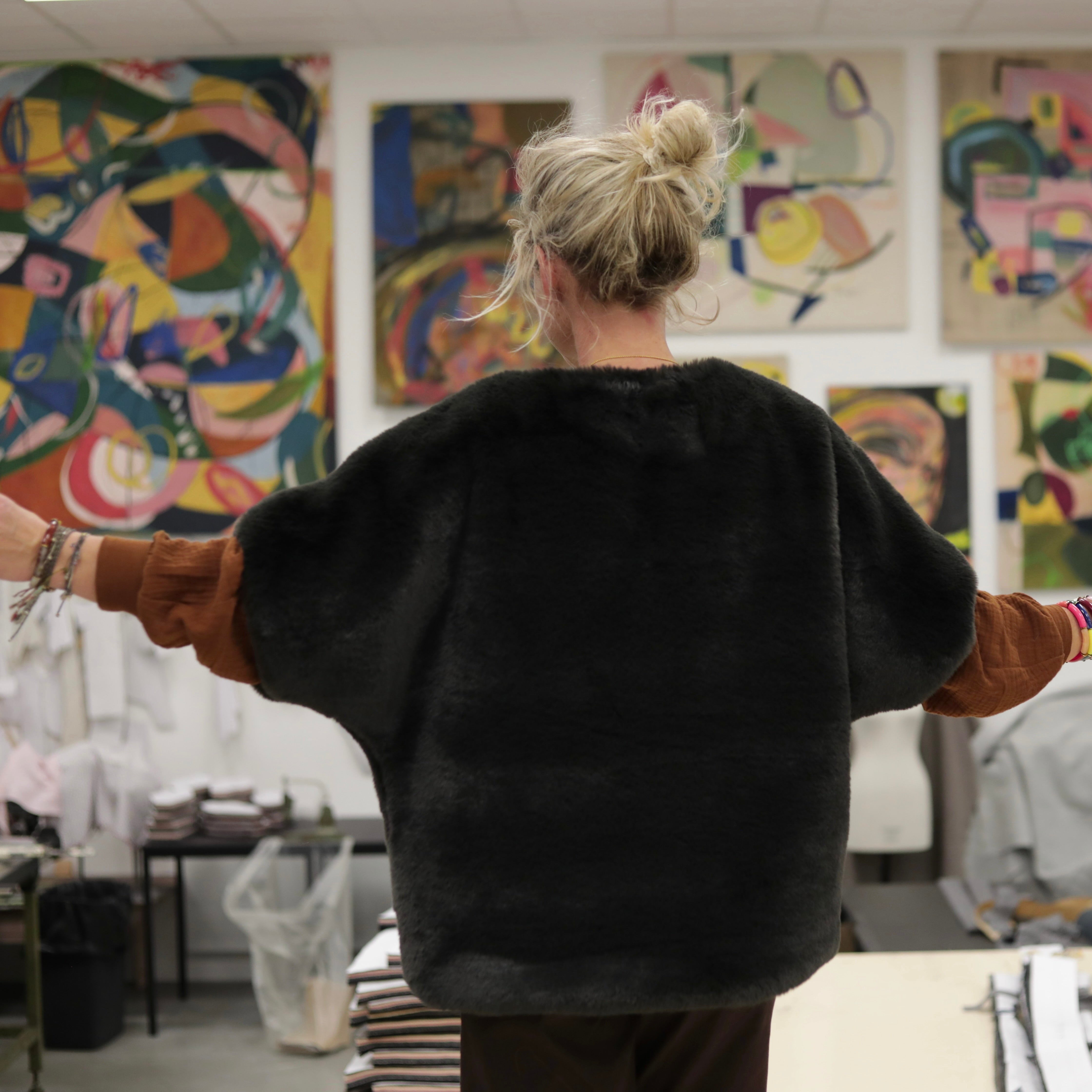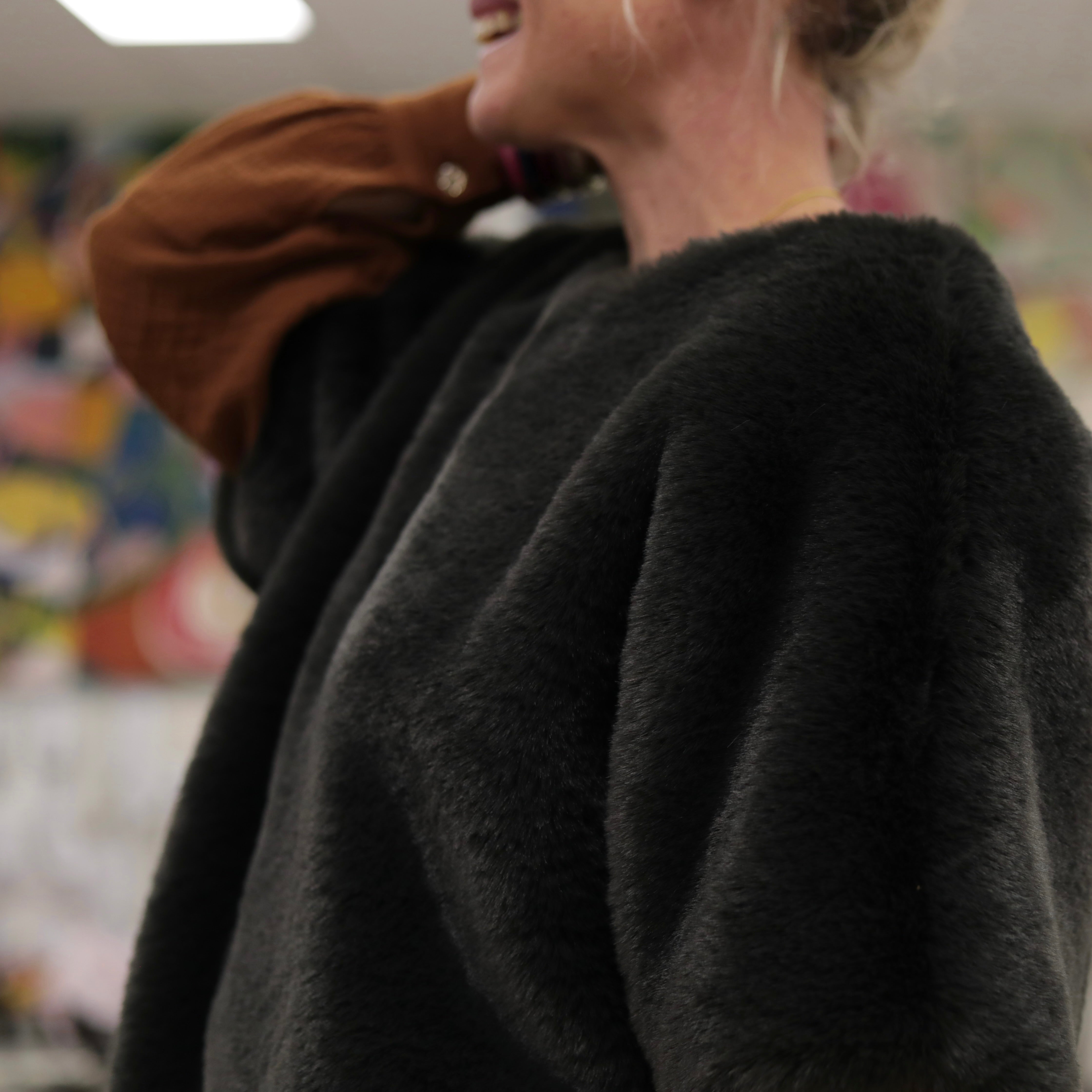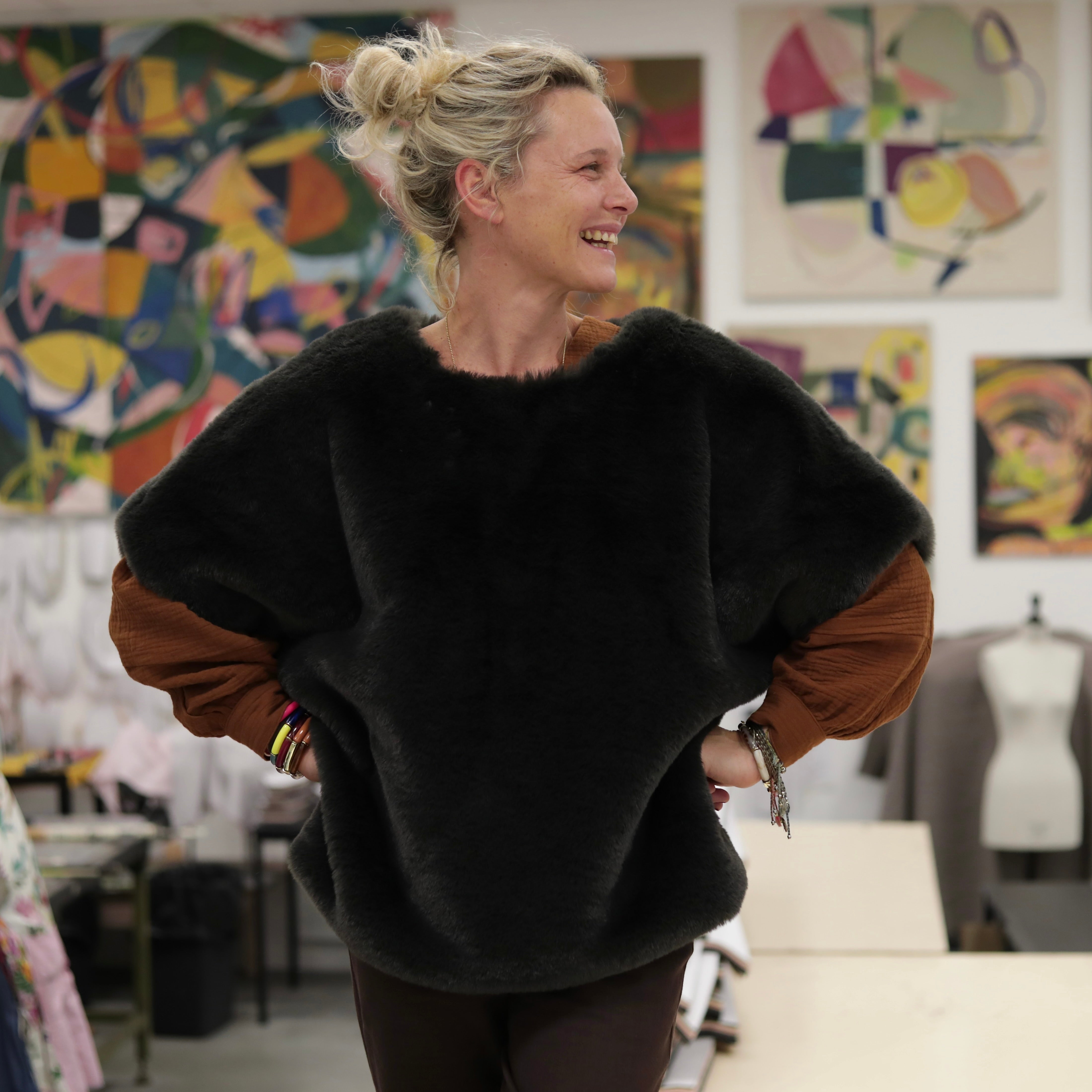 Le Poncho Douillet Pétronille - fourrure cendrée