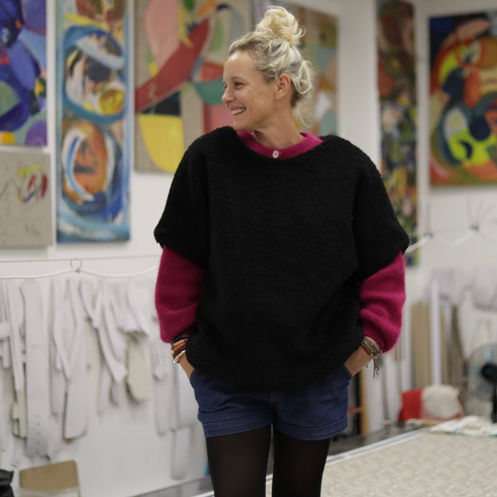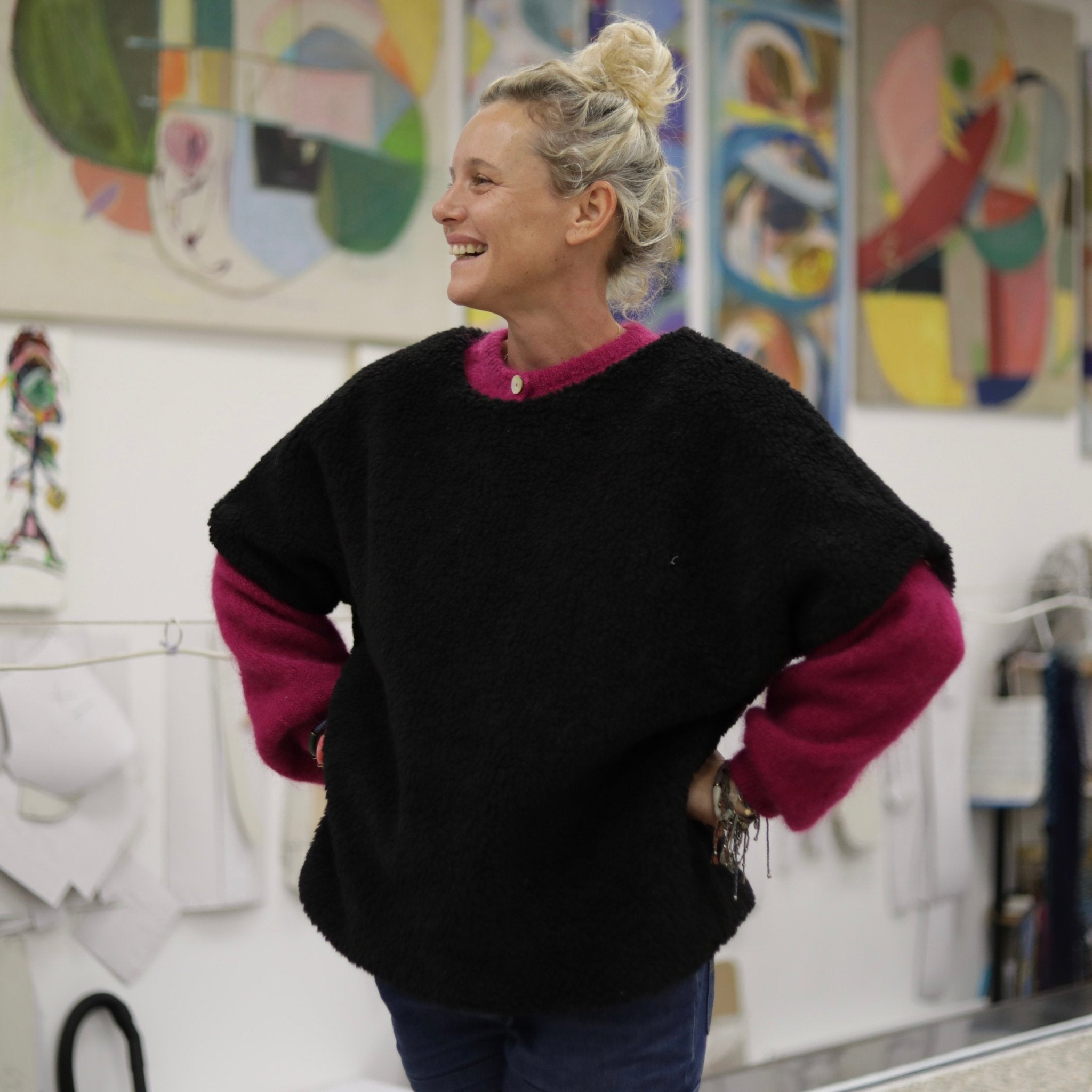 Cette pièce se distingue par sa forme poncho sans emmanchure, pensée pour offrir une grande liberté de mouvement, et par sa doublure en coton qui apporte un confort supplémentaire. Des finitions minutieuses signent une création Quintessence à la fois douce, moderne et durable.