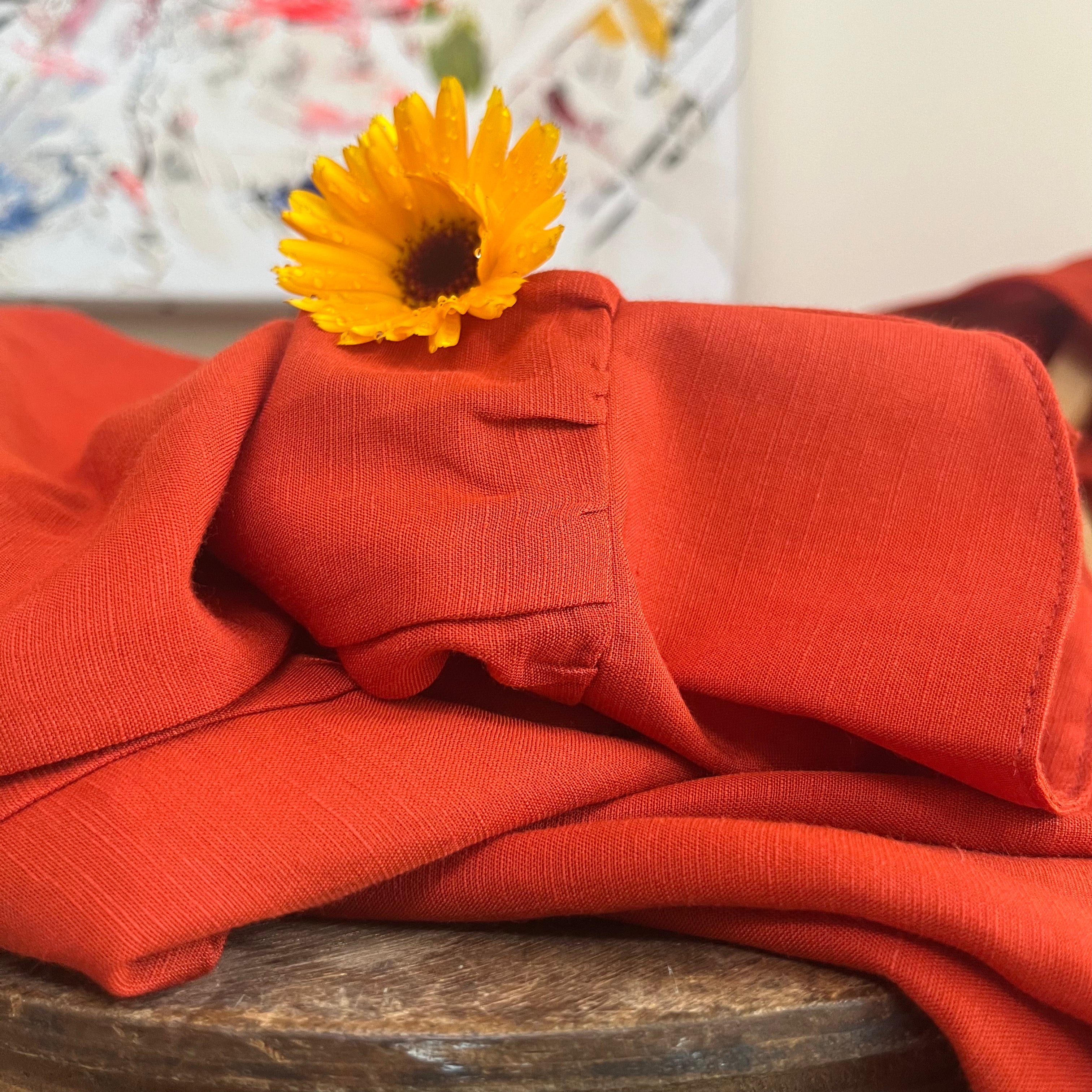 Le lin : lavage à basse température (30°) et un essorage à maximum 600 tours minutes. Sèche très vite à l’air libre.