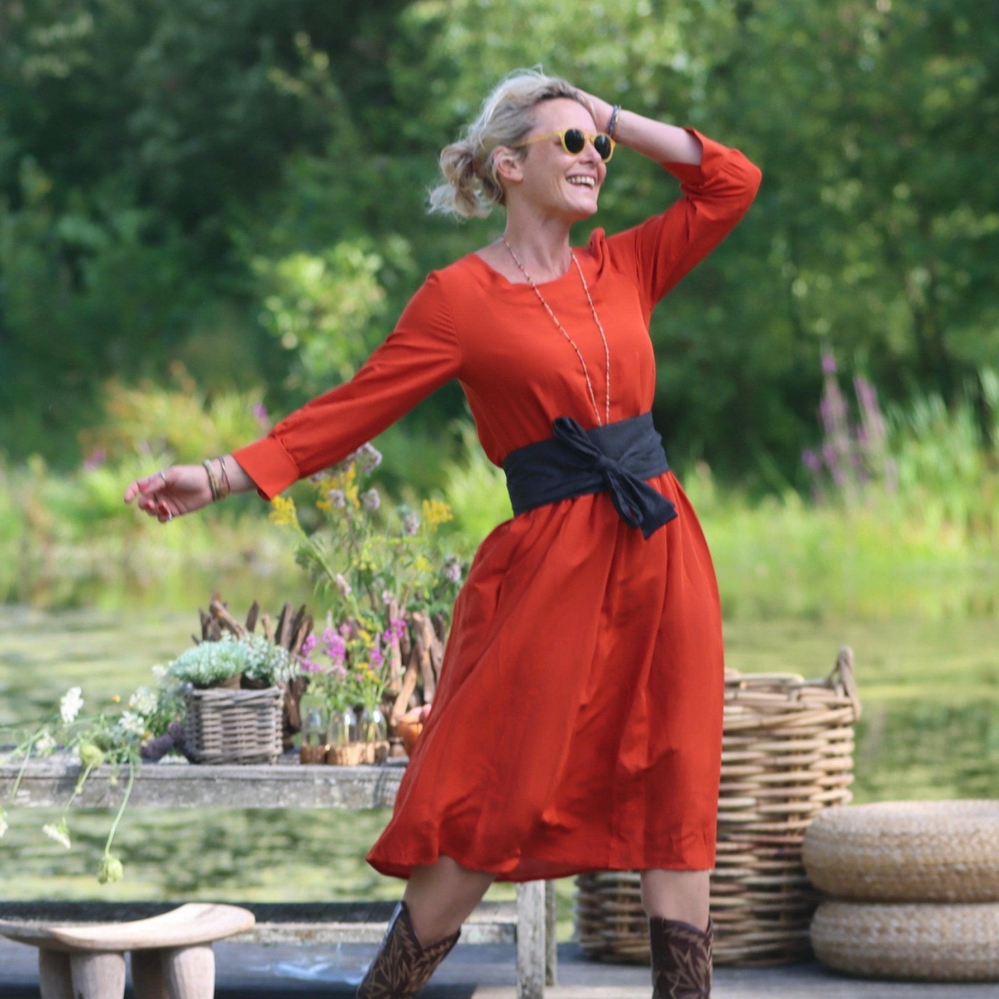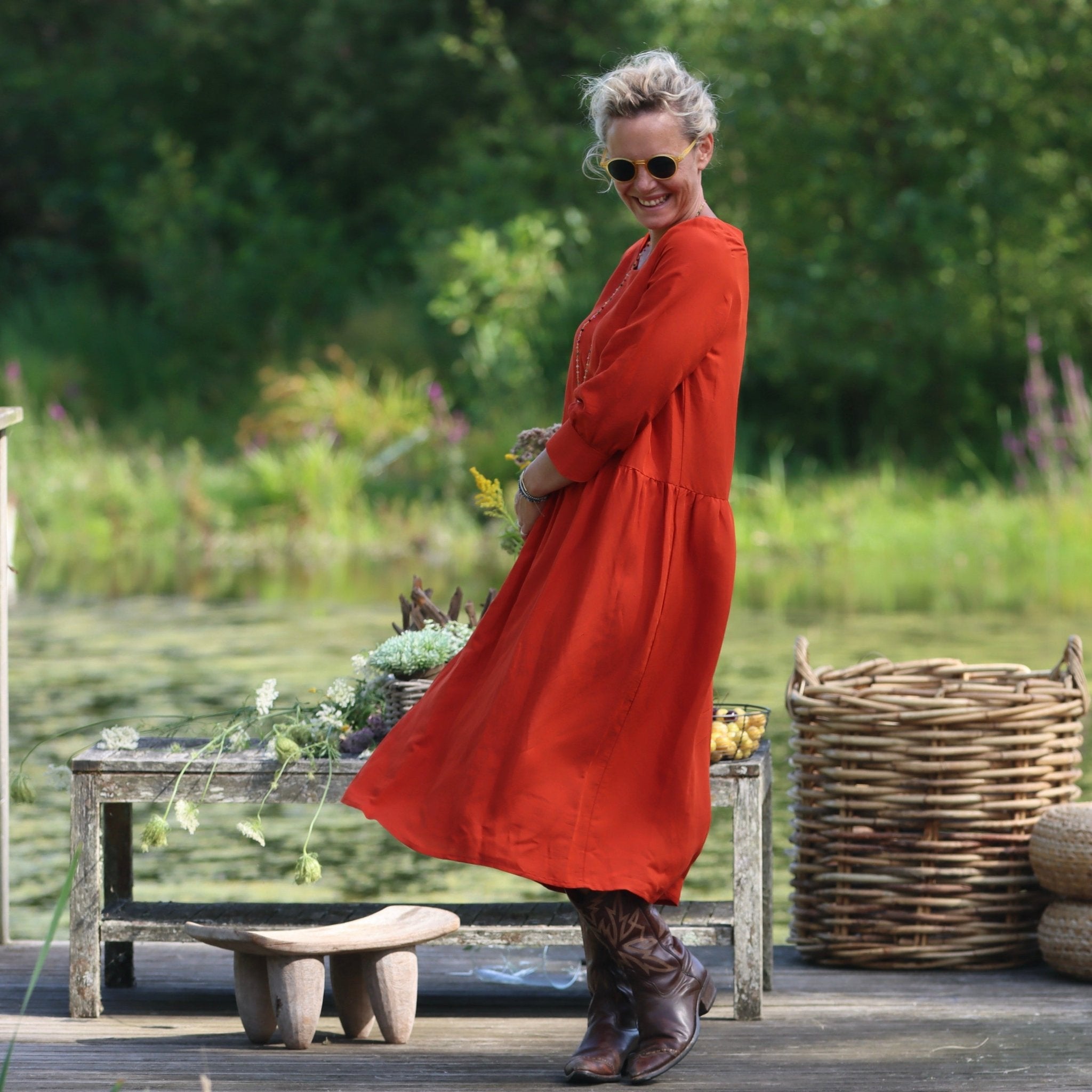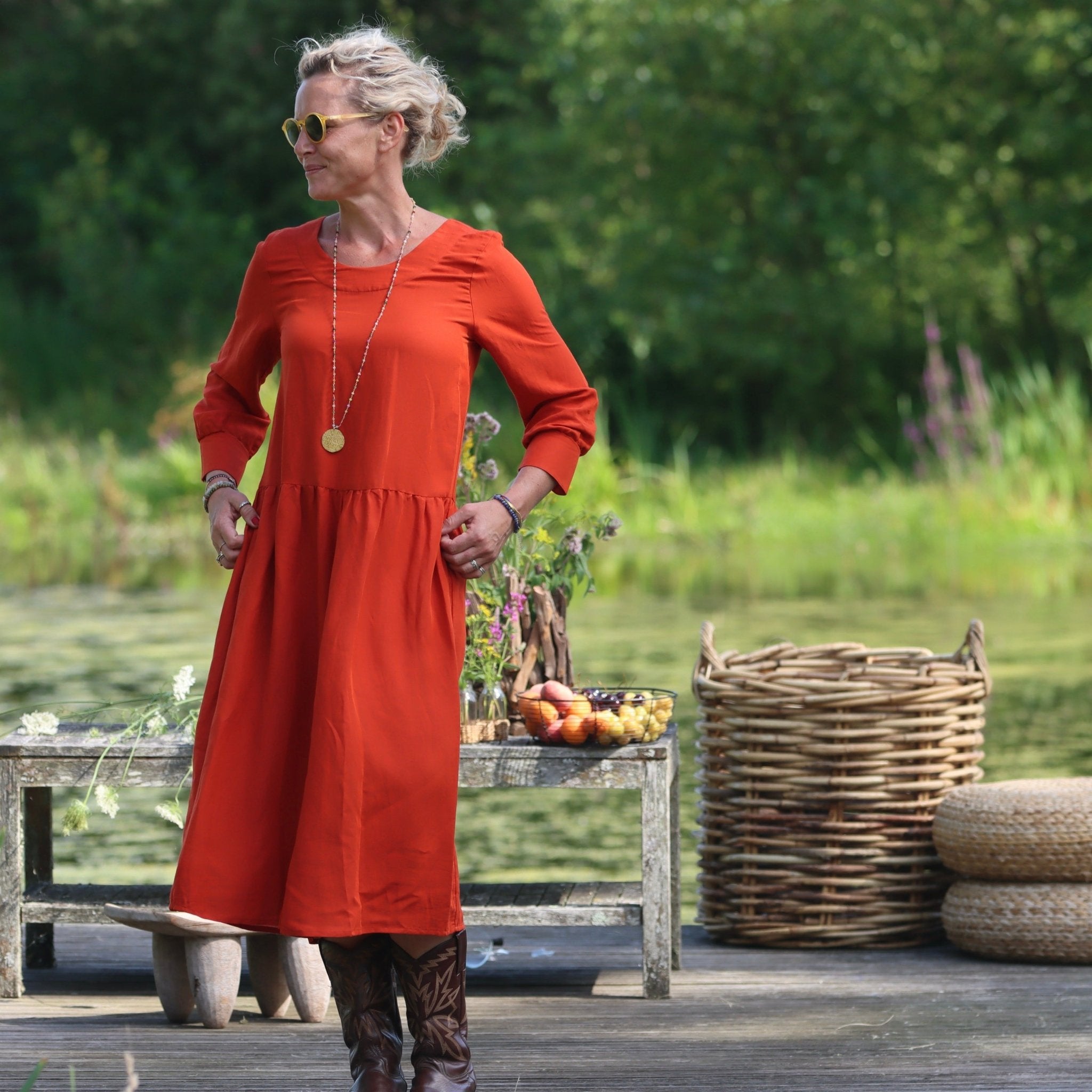 Voici Agnès, la robe longue élégante, décontractée et facile à vivre.