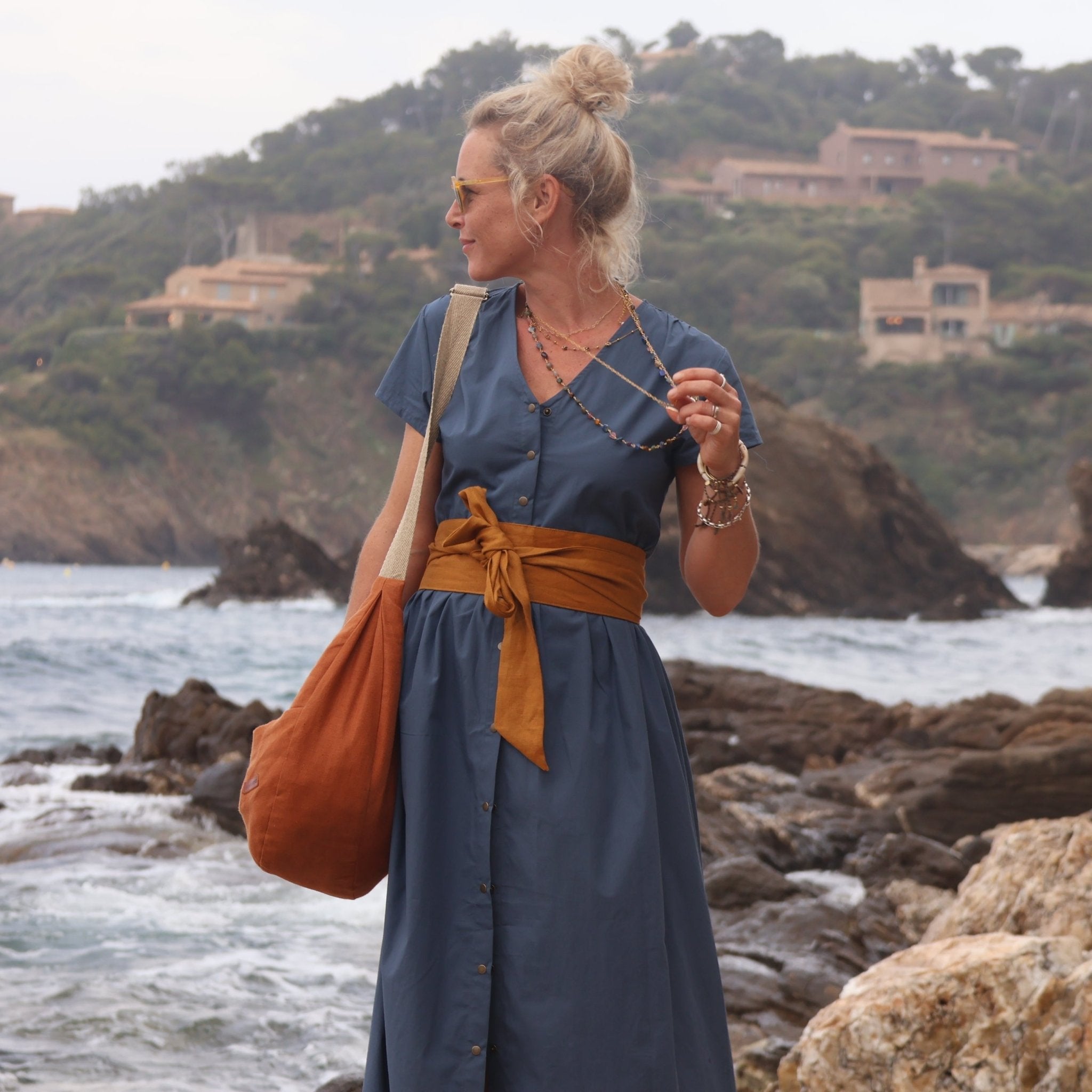 La ceinture Anita en lin ocre n'est pas livrée avec la robe.