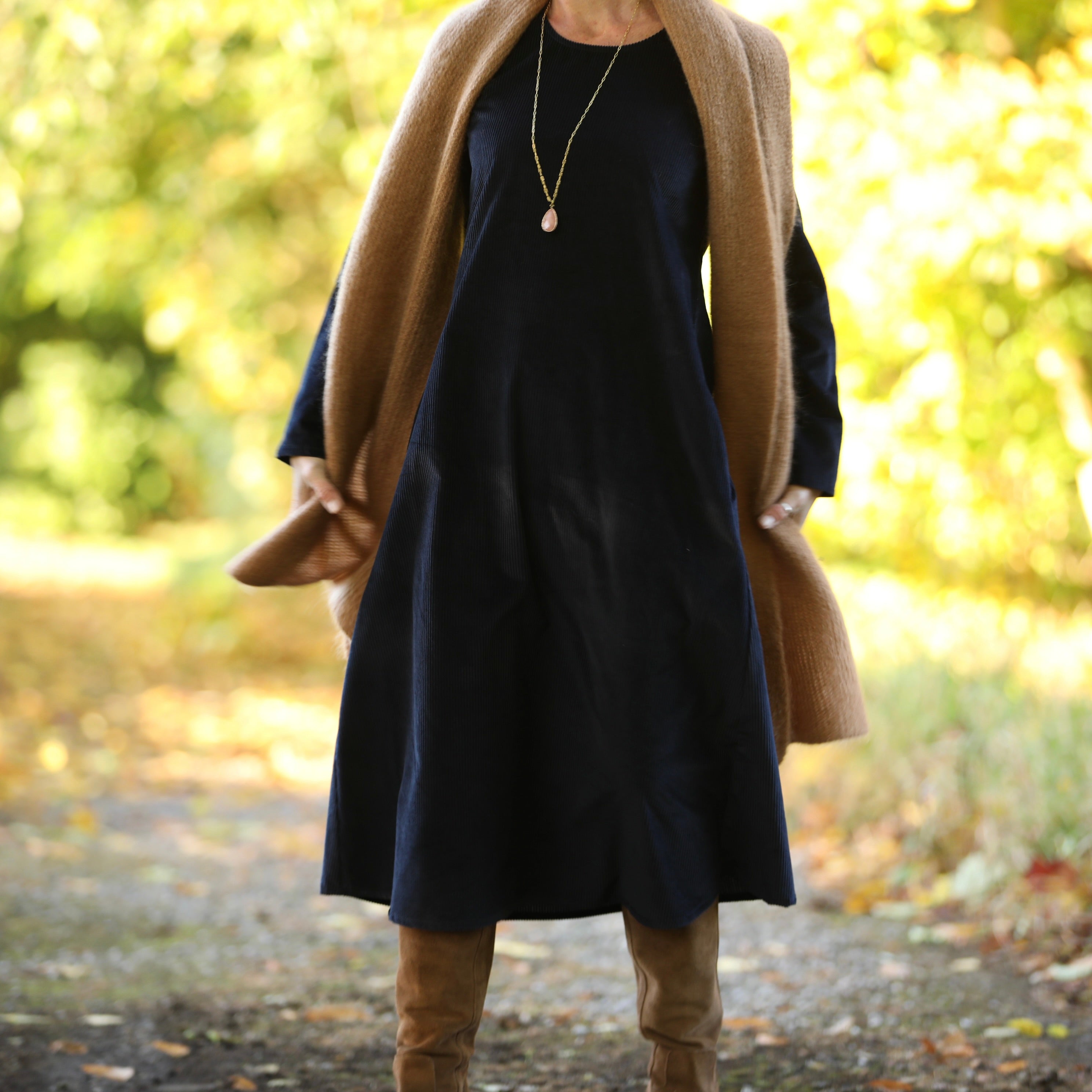 Robe Armande – velours côtelé bleu marine - Quintessence