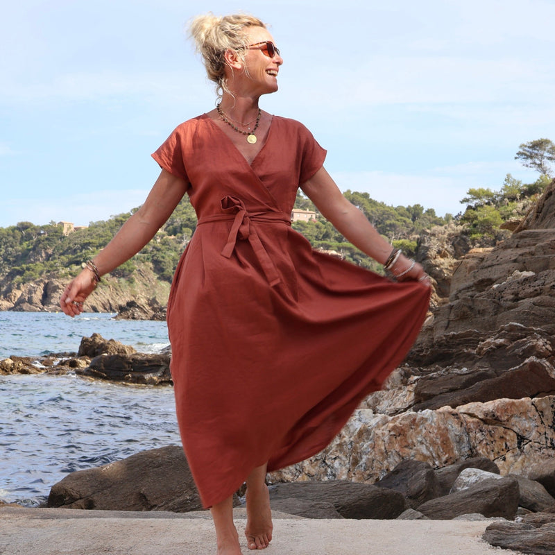 Le lin : lavage à basse température (30°) et un essorage à maximum 600 tours minutes. Sèche très vite à l’air libre.