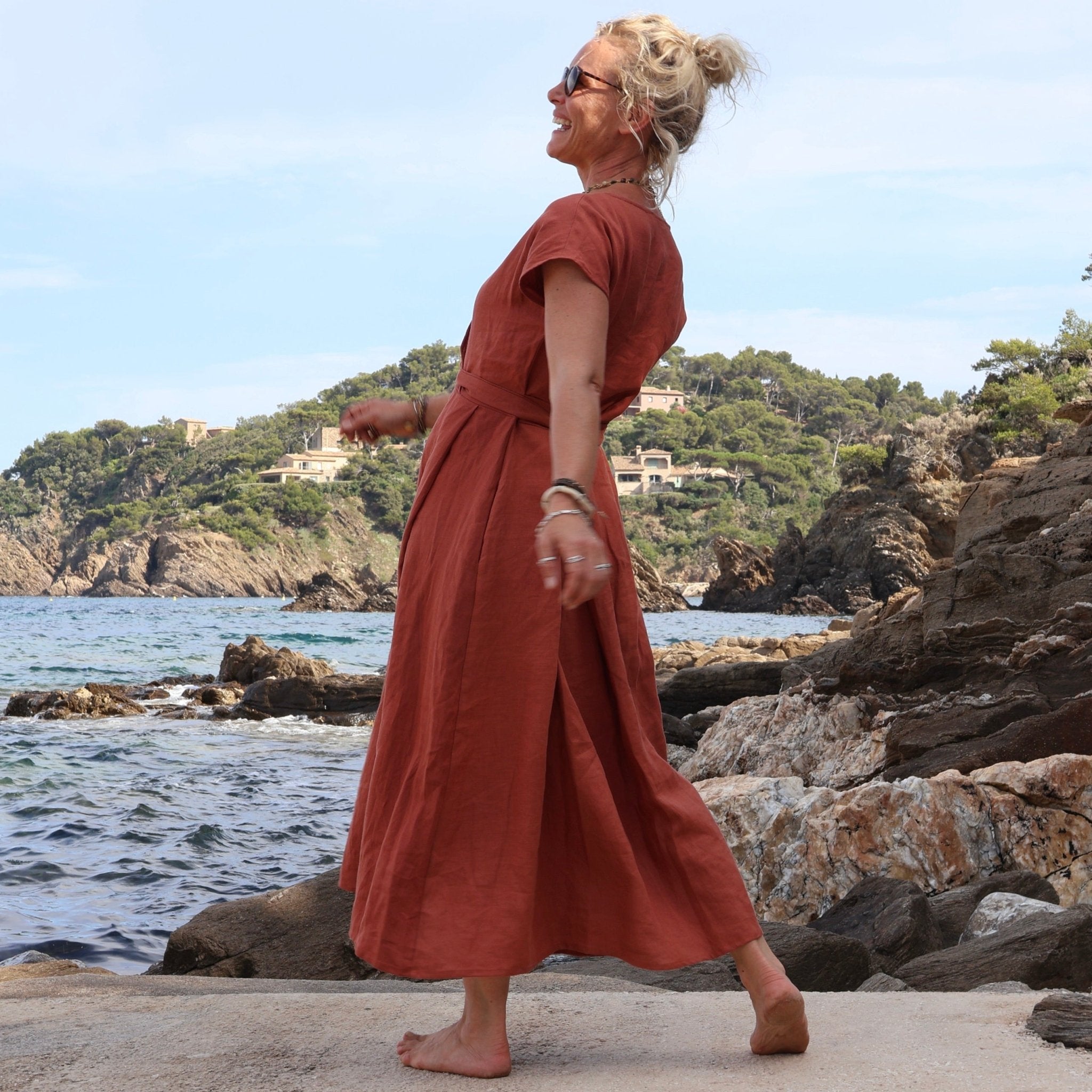 La robe est dotée de deux poches latérales et d'une belle longueur. Très agréable à porter, elle est fluide et féminine.