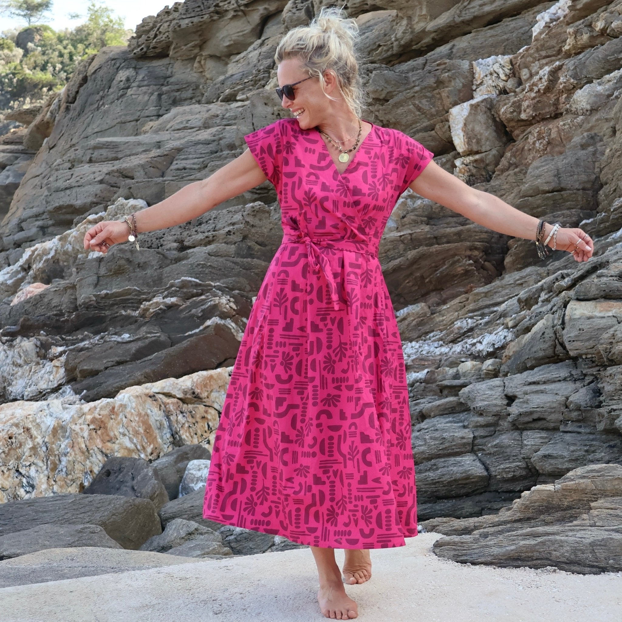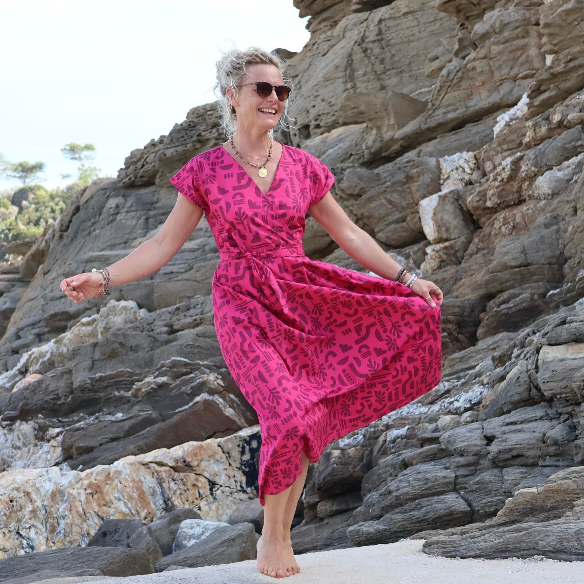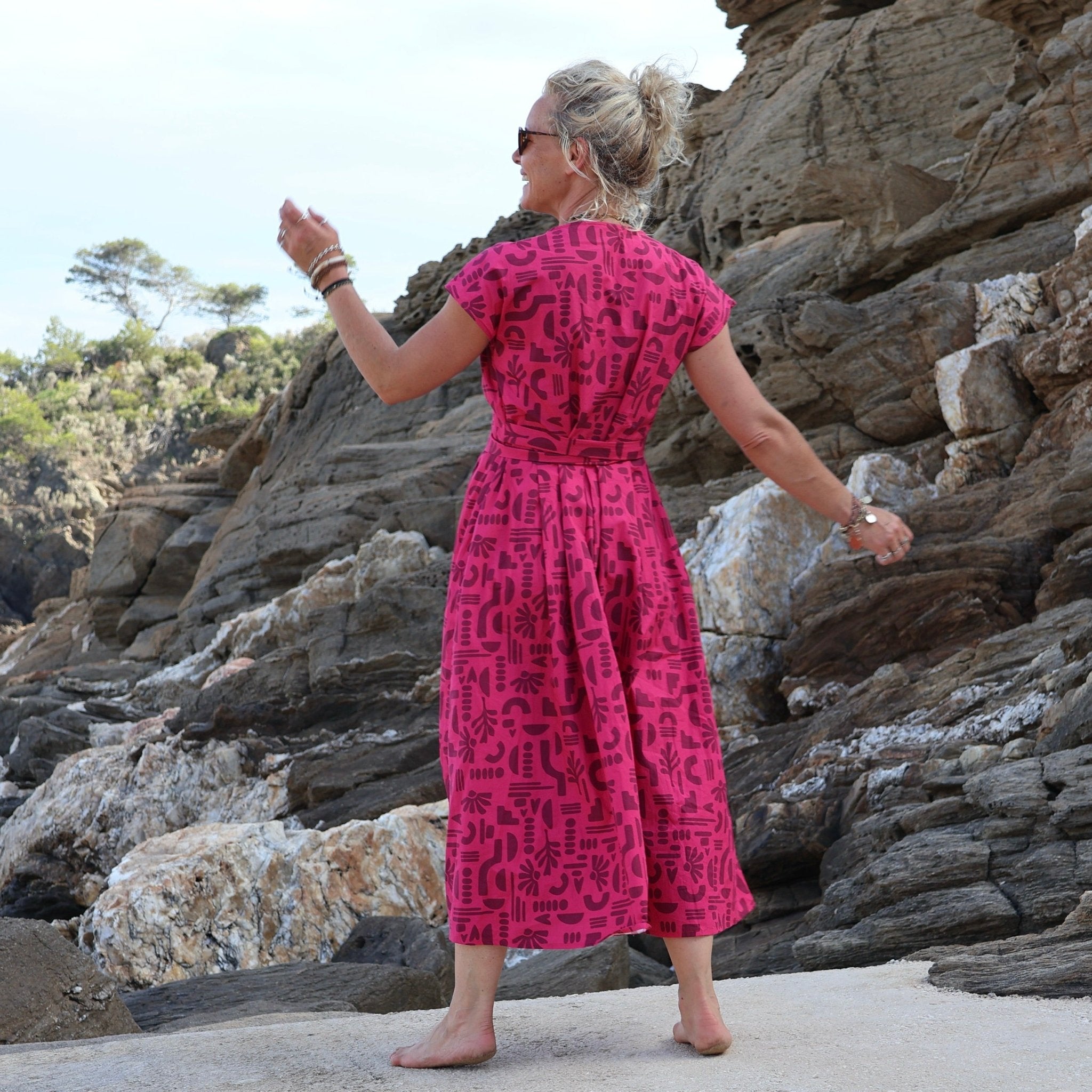 Robe Athéna - popeline de coton Milos fuchsia - Quintessence