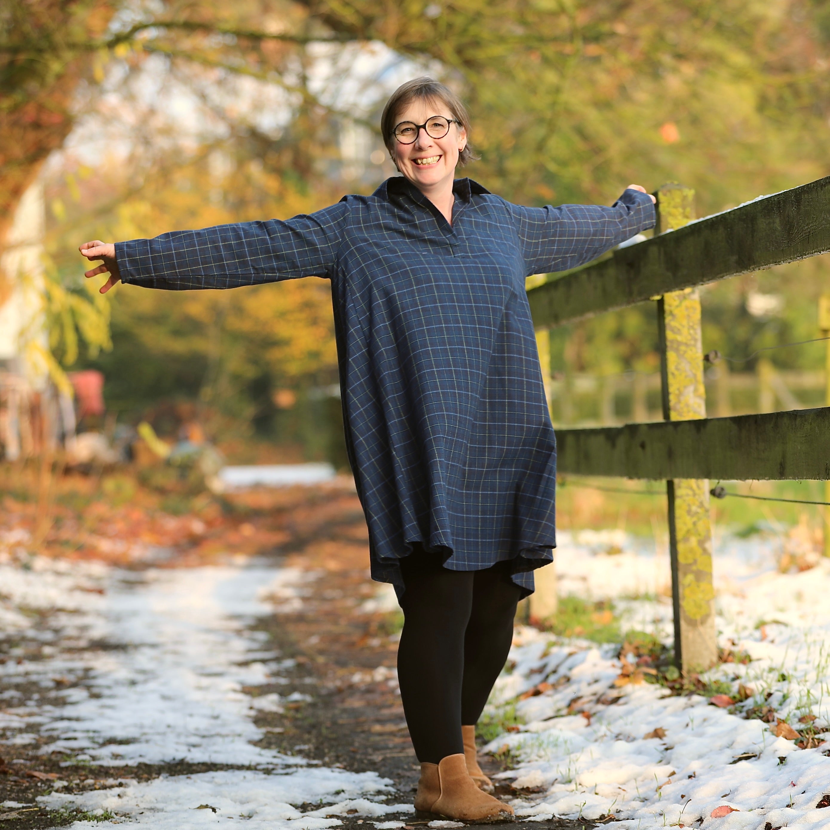 Robe Carole – flanelle de coton tartan bleu - Quintessence