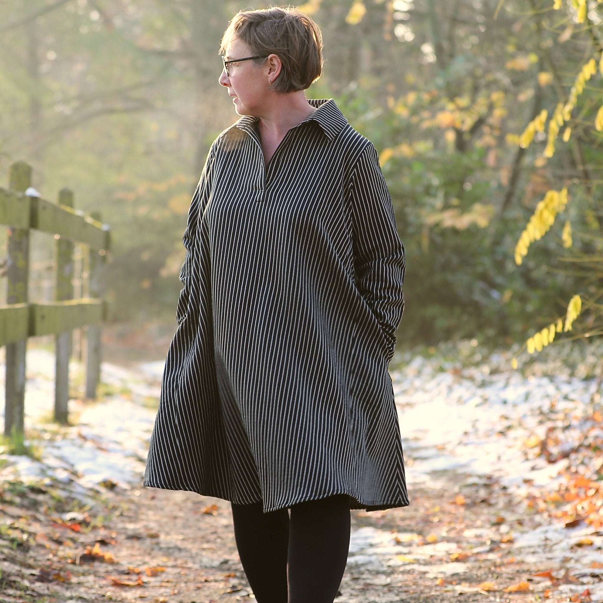 Cette robe est équipée de deux poches discrètes sur les côtés, pensées pour allier praticité et confort. Son col chemisier ajoute une touche de structure et d’allure intemporelle.