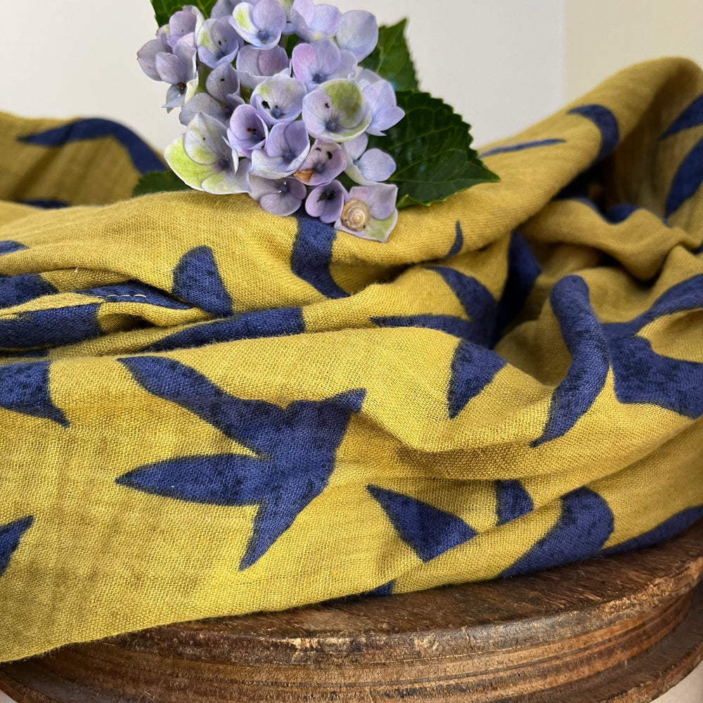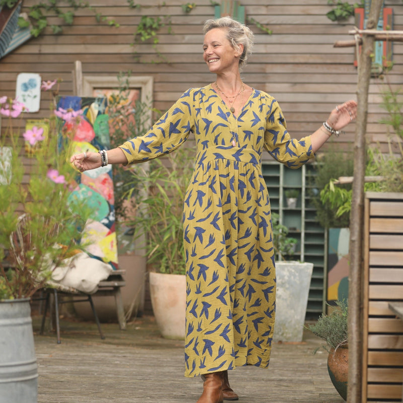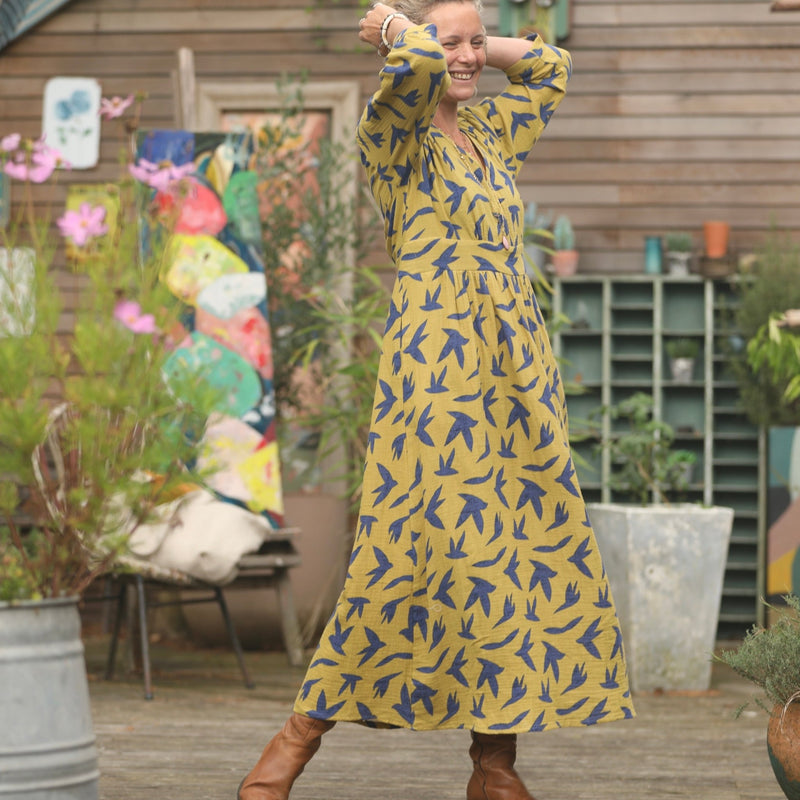 Robe Clara manches 3/4 - double gaze de coton hirondelles