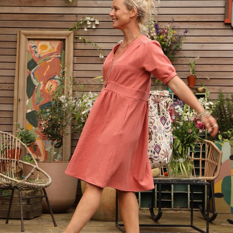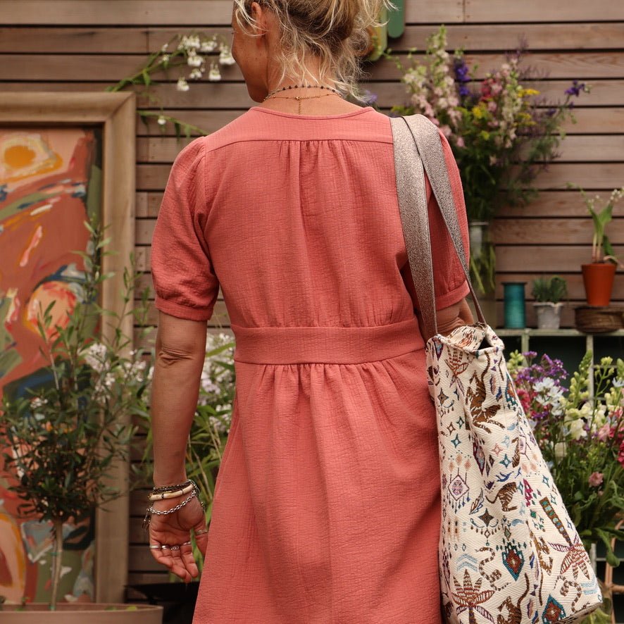Robe Clara midi - piqué de coton terracotta rosé - Quintessence
