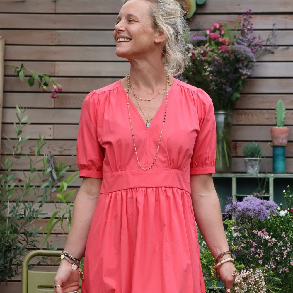 Robe Clara - Popeline de coton grenade