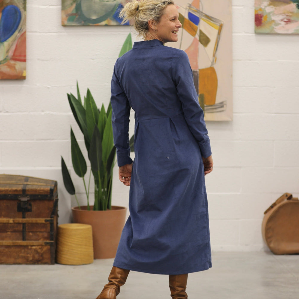 Robe Cyrielle - velours milleraies bleu doux - Quintessence
