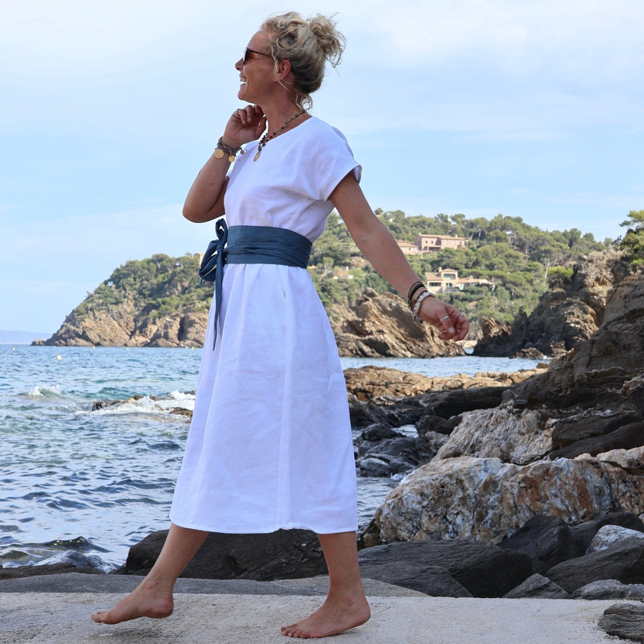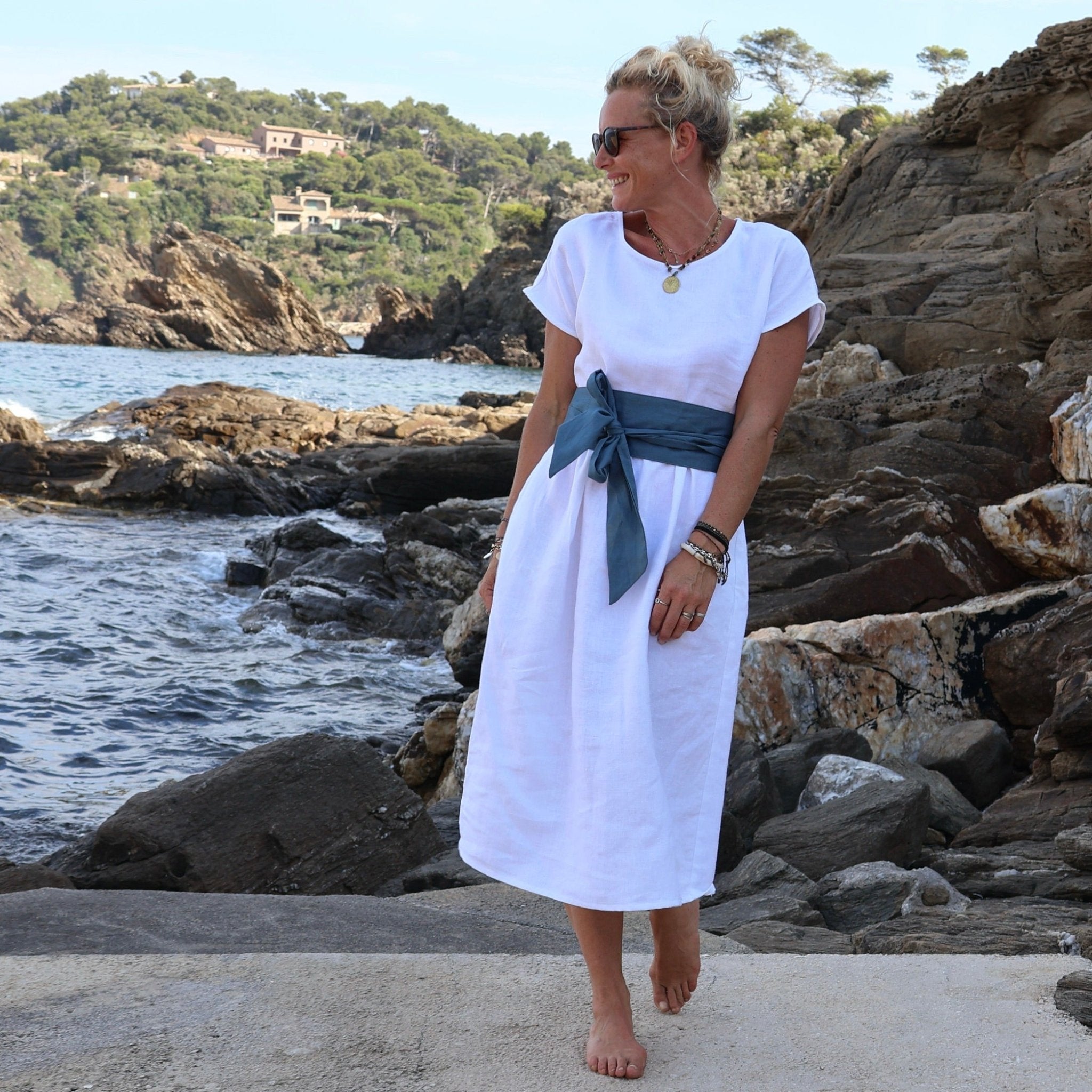 La ceinture Anita portée sur les photos (en lin bleu navy) est vendue séparément.