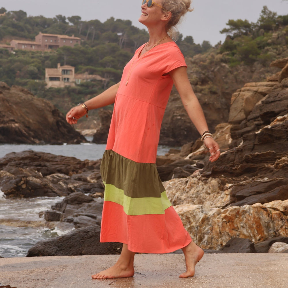 Gitane est une magnifique robe dotée d'un décolleté en V et de manches kimono.