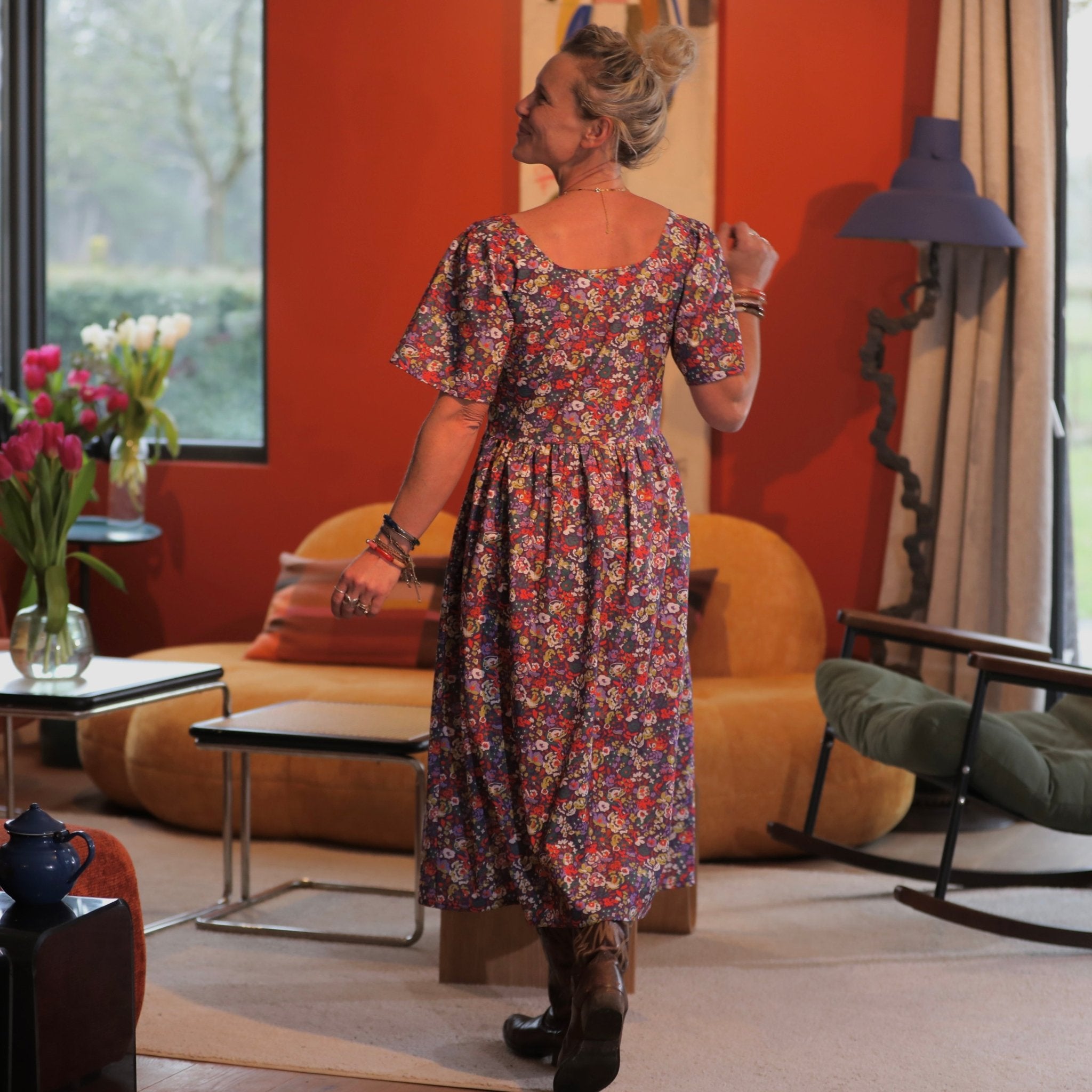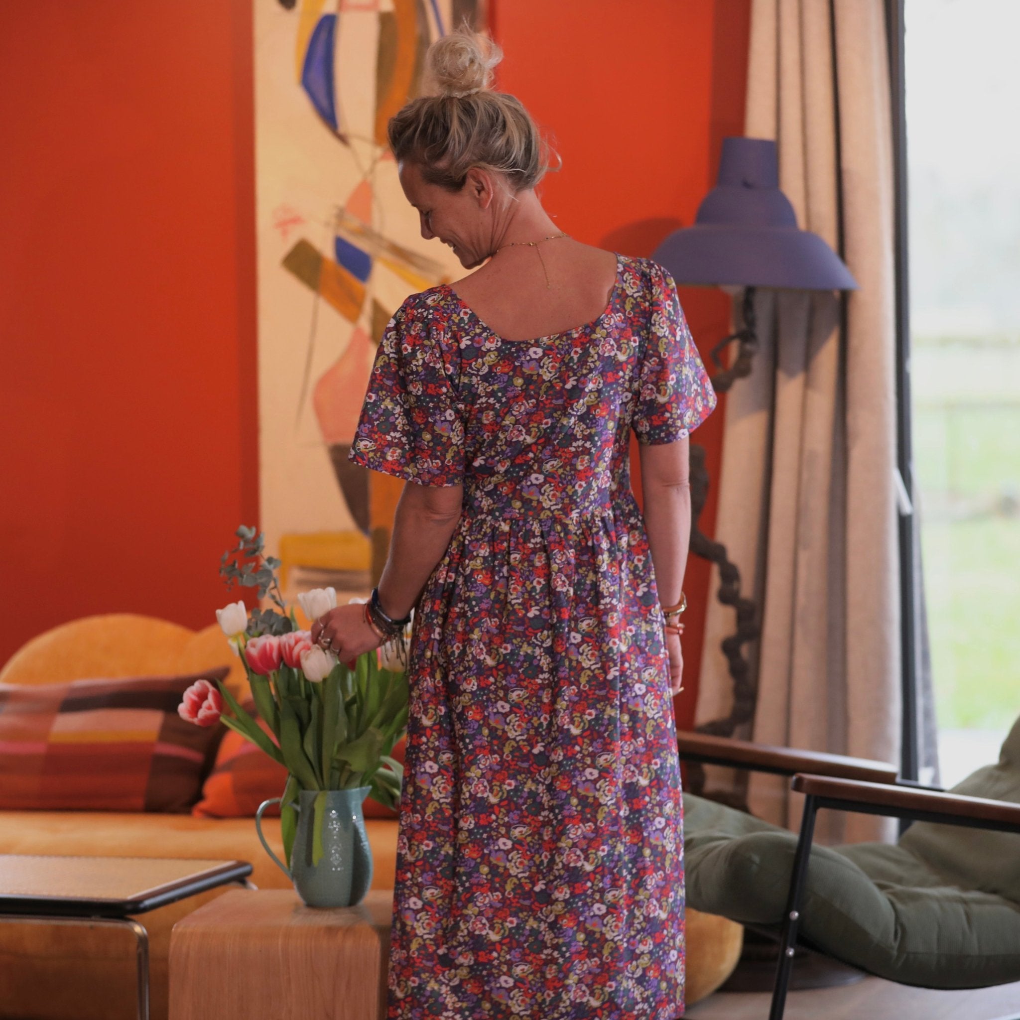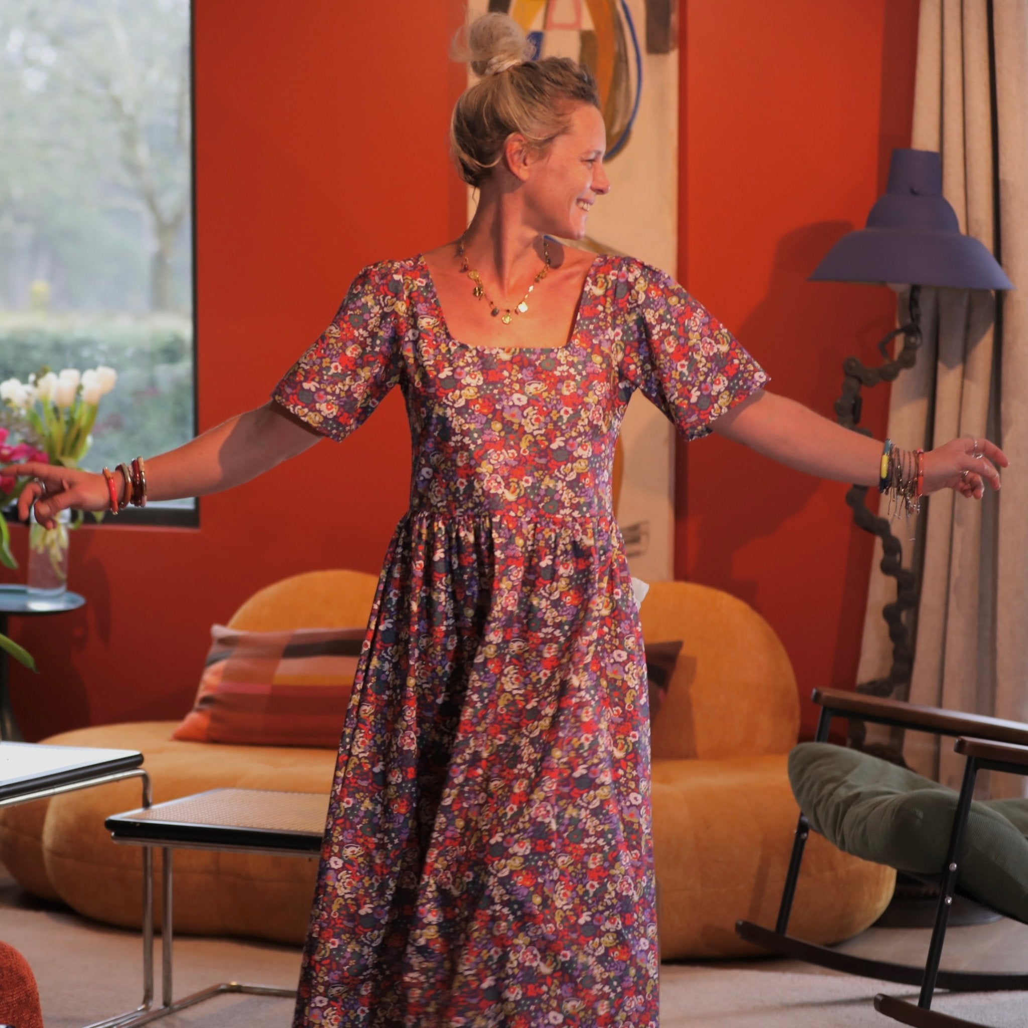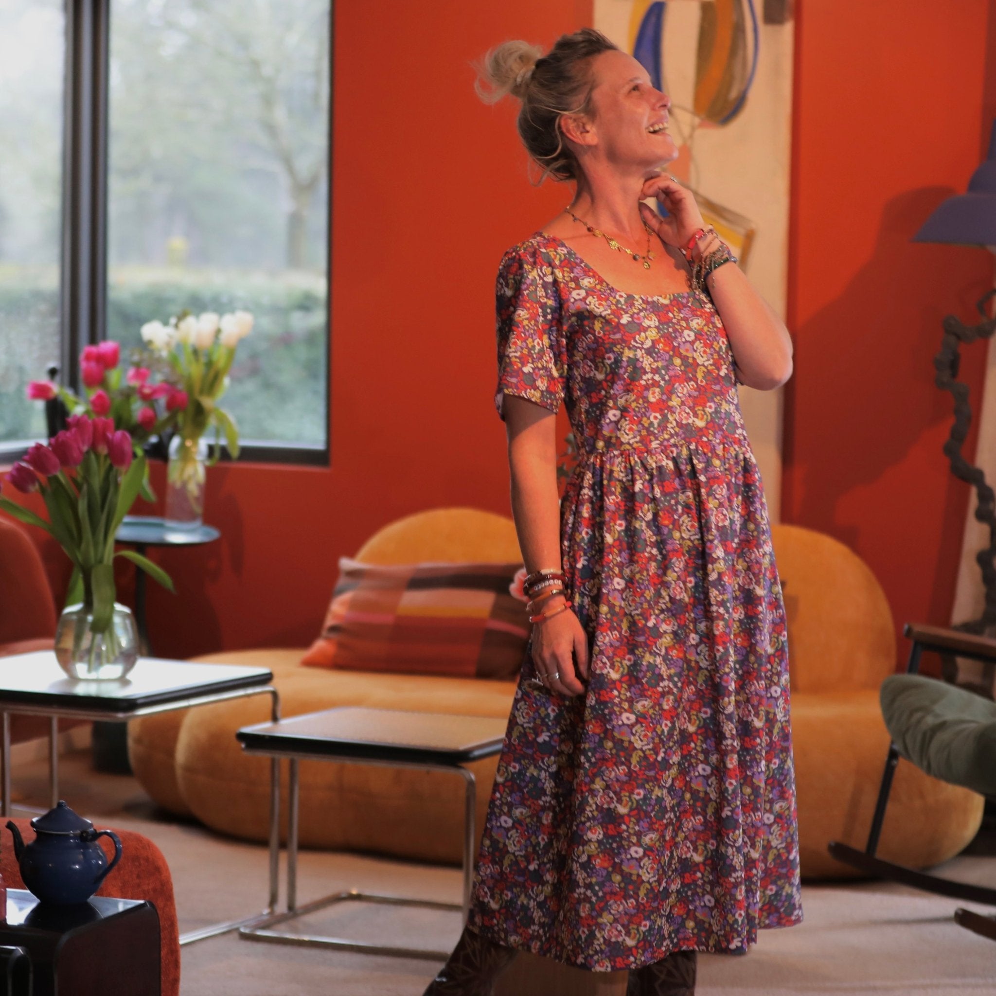 La robe Gwenaëlle se porte facilement seule, ses manches élégantes permettant un porté habillé sans superposition. Elle peut aussi s’associer à une maille fine, un boléro ou un gilet doux pour les journées plus fraîches. Avec des bottines, des sandales ou des baskets, elle s’adapte à tous les moments de la saison.