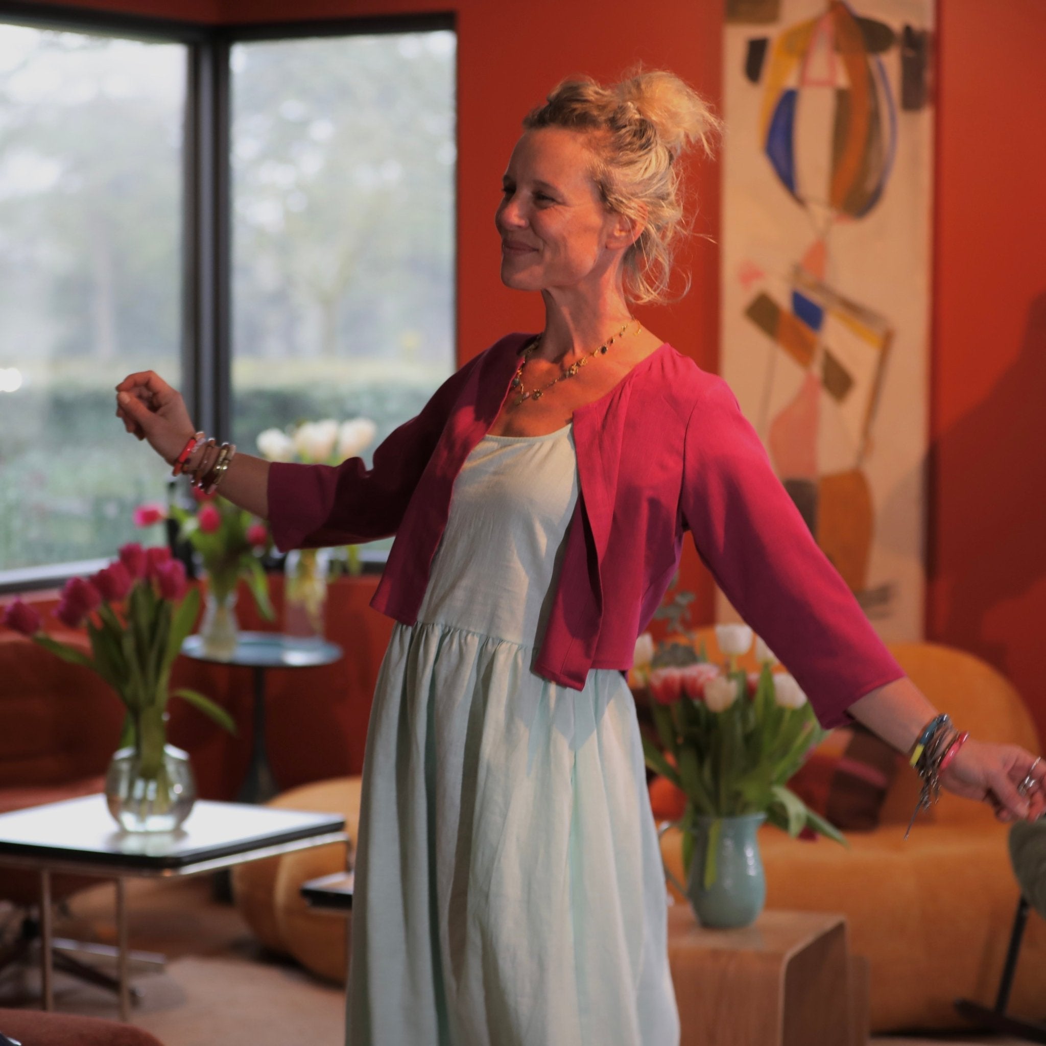 La robe Gwenaëlle se porte facilement seule, ses manches élégantes permettant un porté habillé sans superposition.   Elle s’associe aussi très joliment à une maille fine ou à un boléro léger pour les soirées plus fraîches.