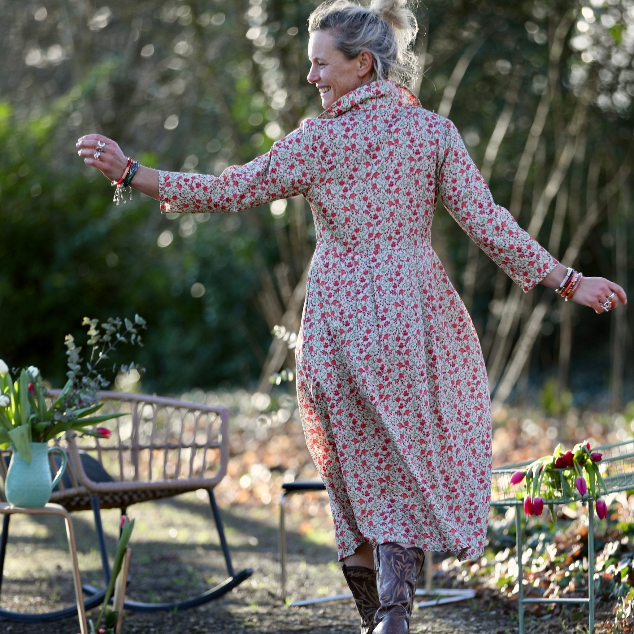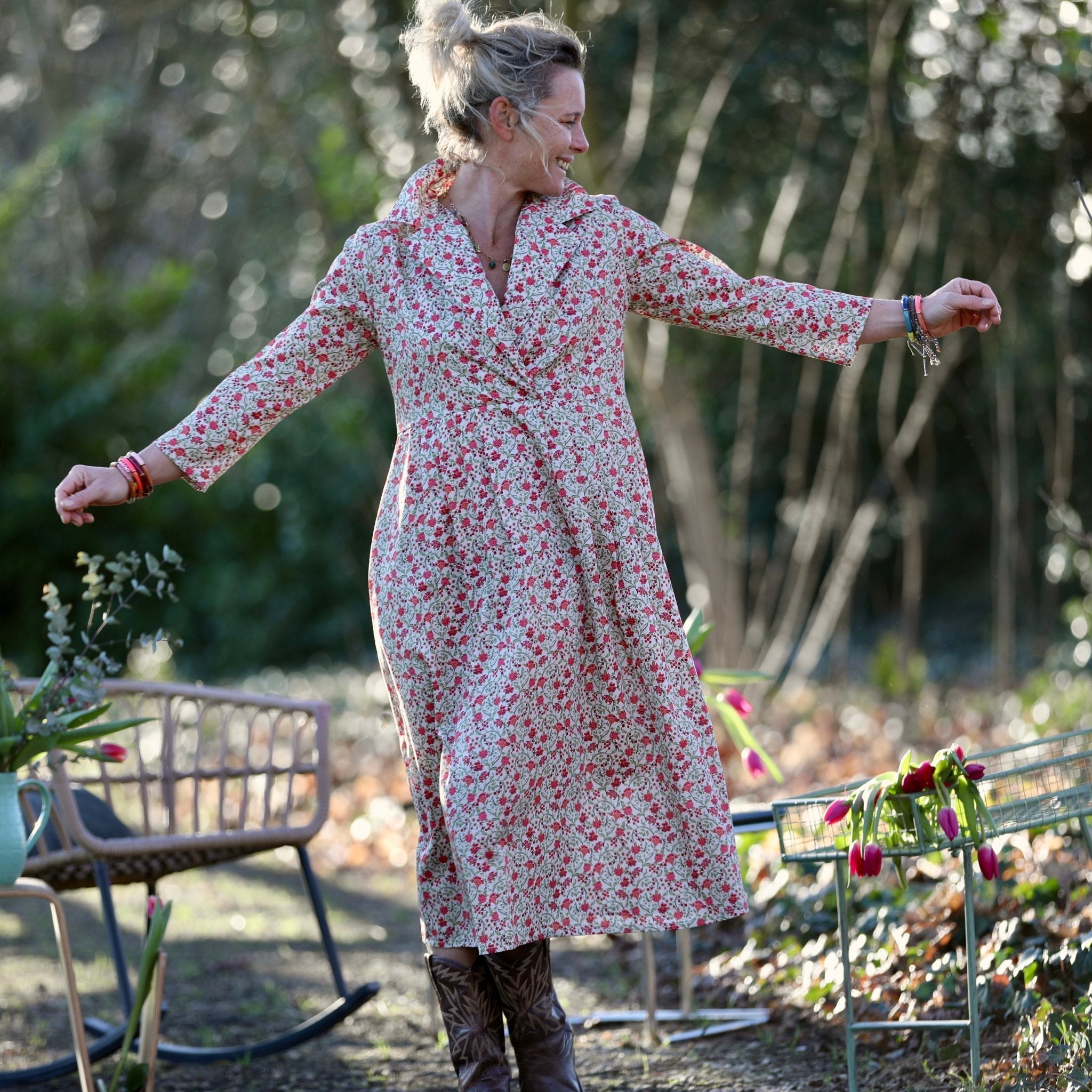La Robe Hazel se porte aussi bien avec des sandales, des espadrilles, des bottines ou des baskets. Son imprimé floral en fait une pièce forte, idéale seule ou associée à une maille naturelle.