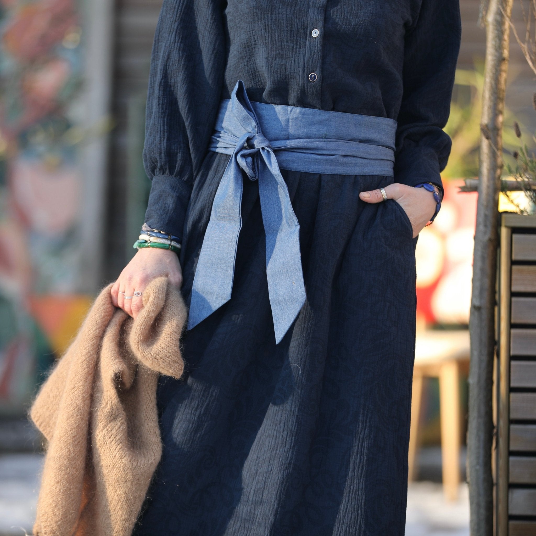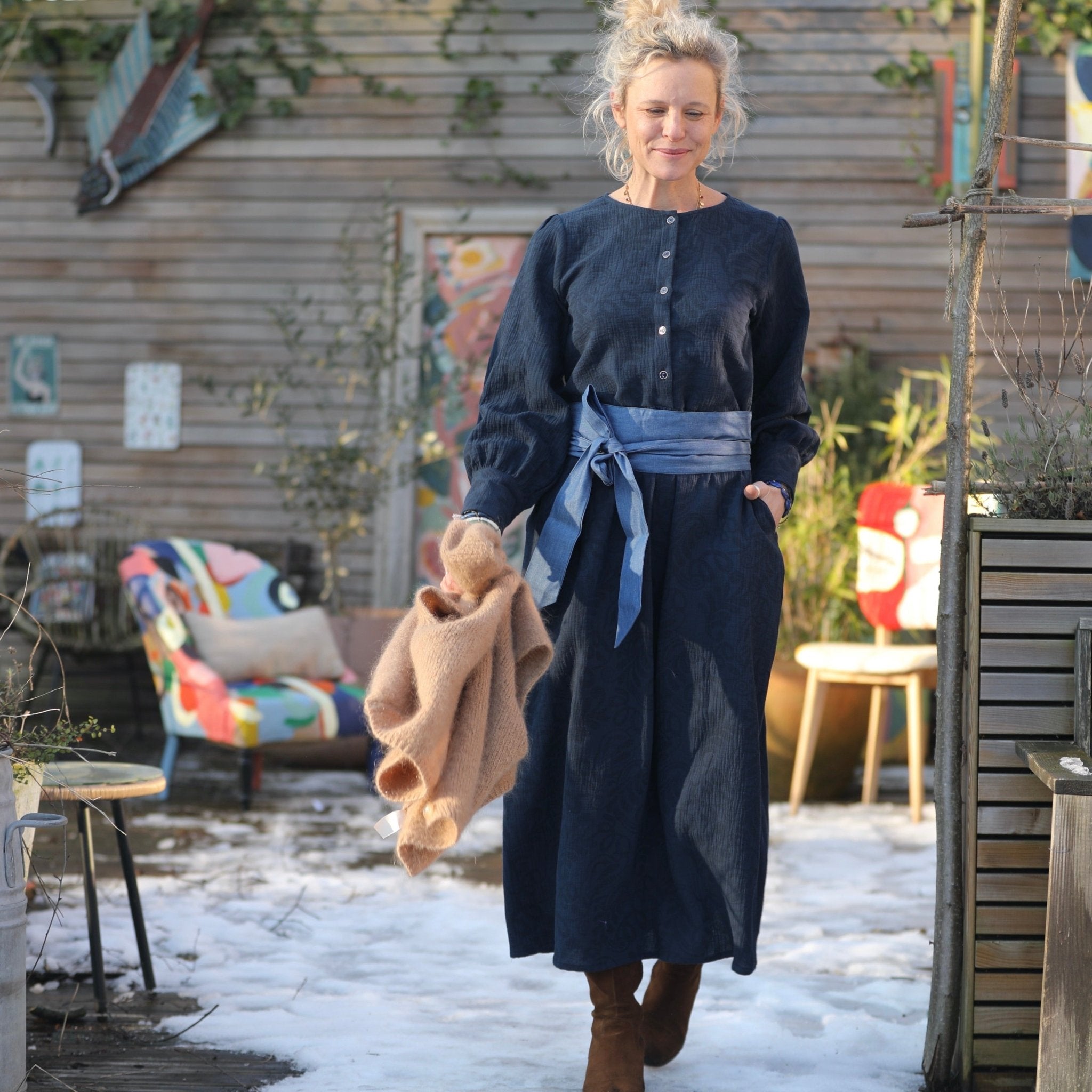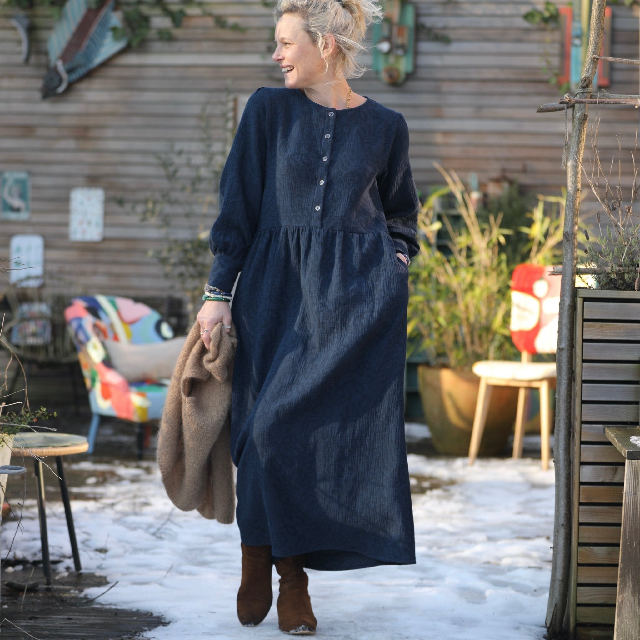 Robe Isis - jacquard coton/lin marine