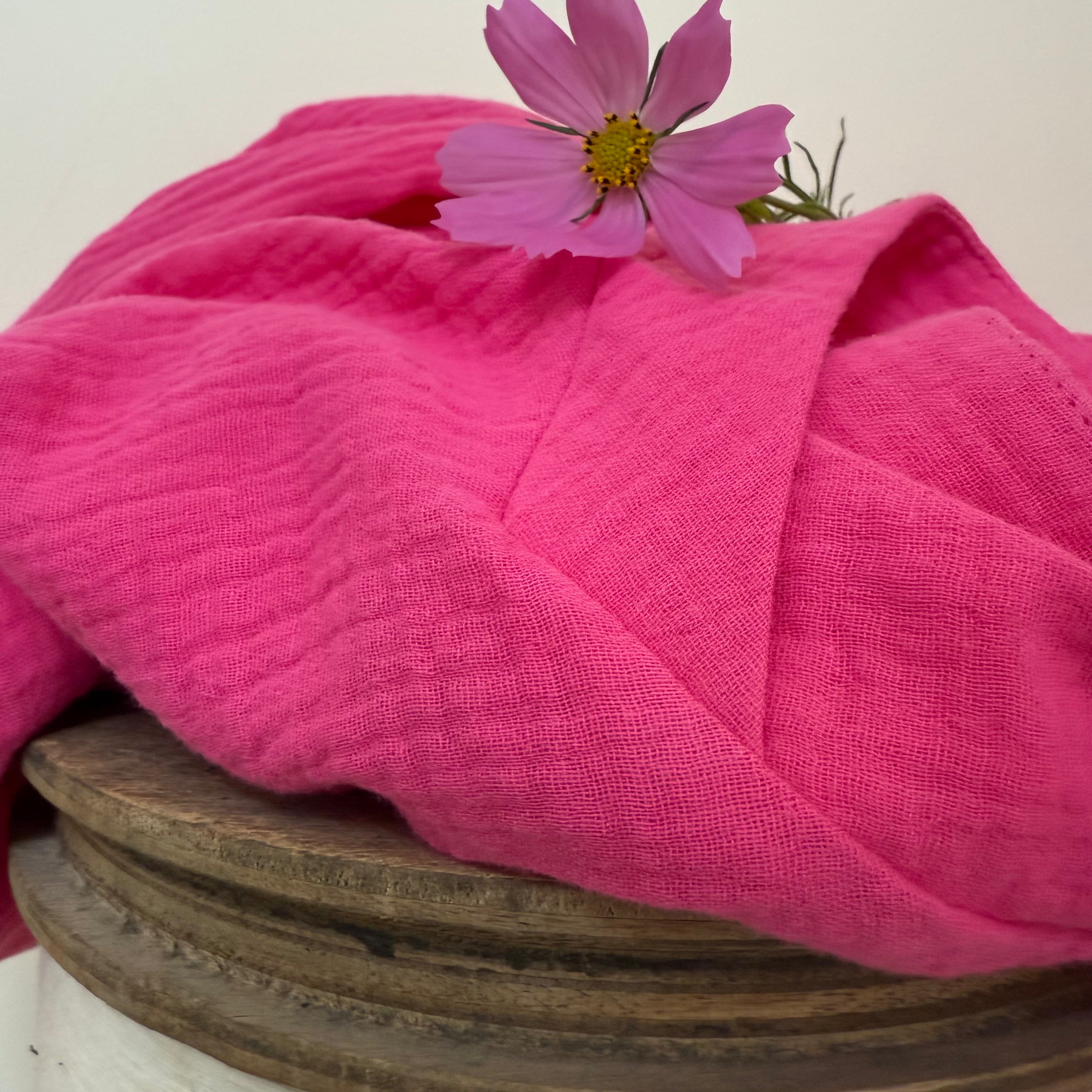 La gaze de coton : lavage à basse température (30°) et un séchage à l’air libre. Elle ne nécessite pas de repassage.