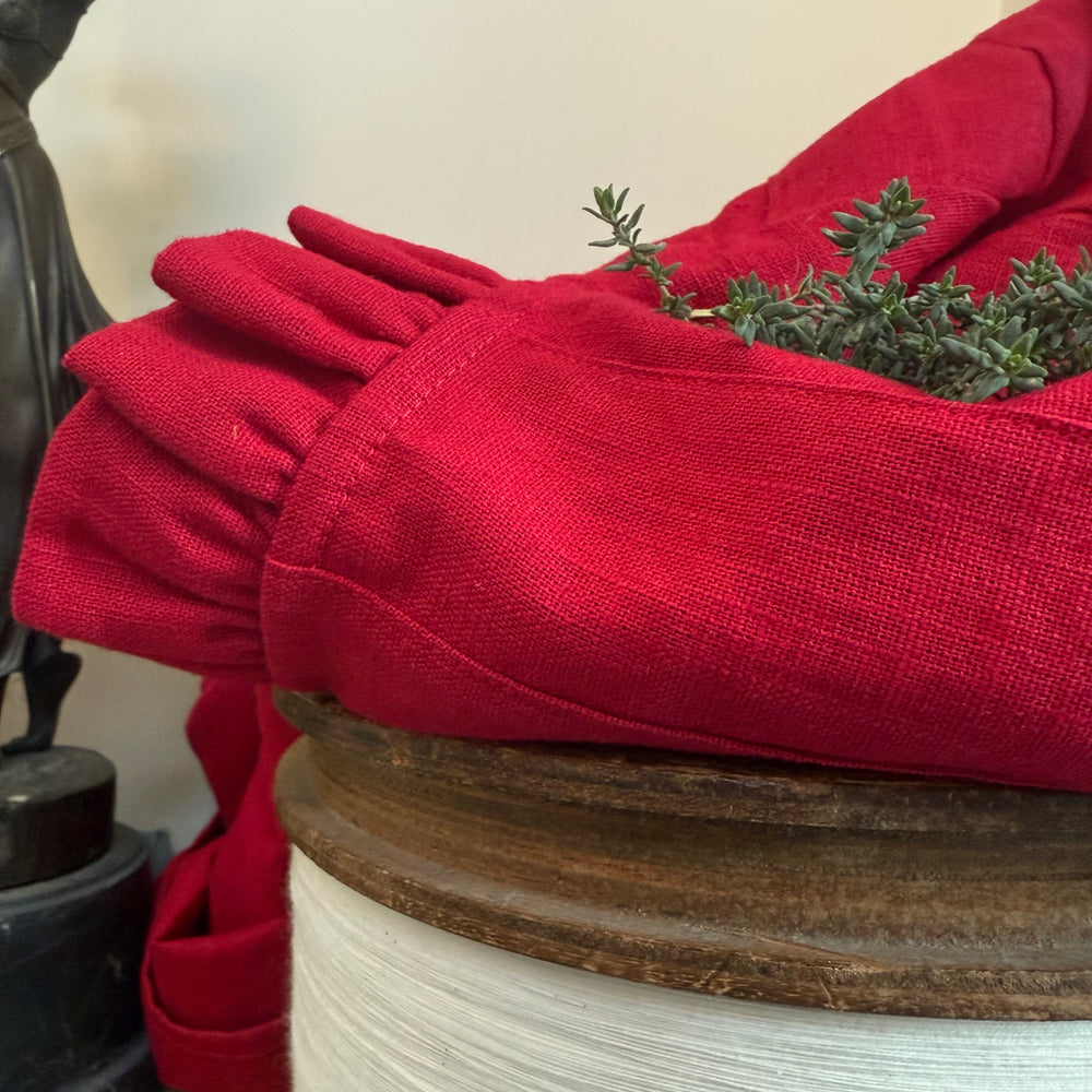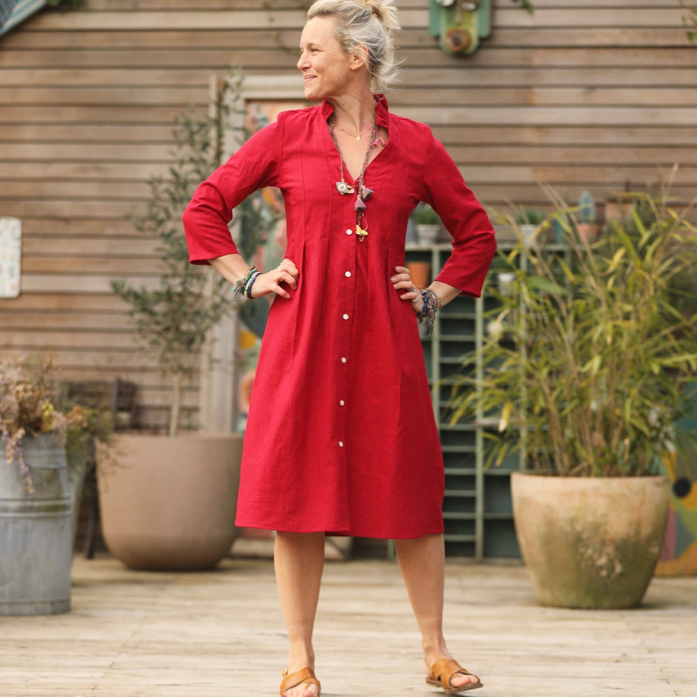 Robe Léontine en lin rouge cerise