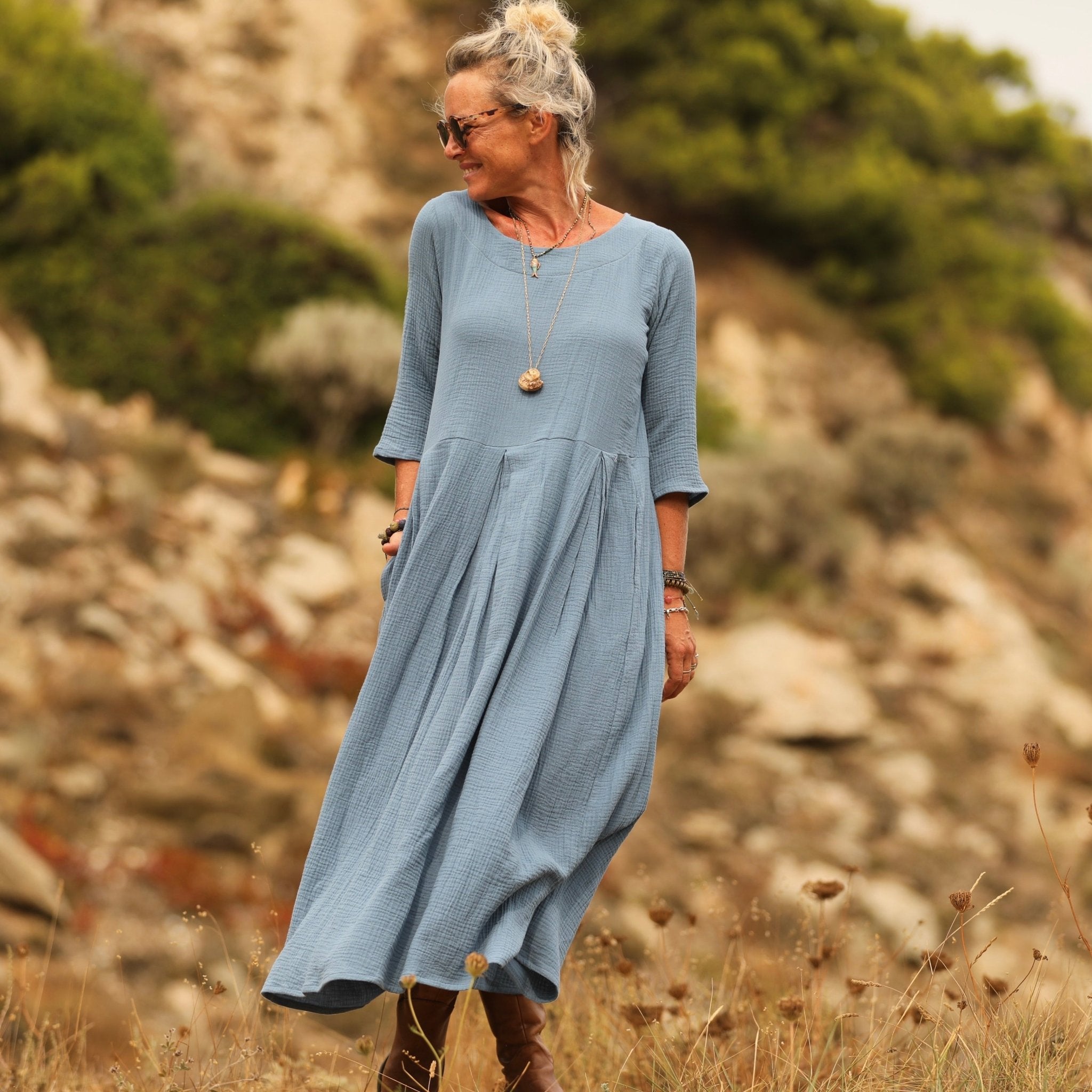 Pratique et fluide, elle est dotée de poches discrètes sur les côtés et de manches 3/4, parfaites pour une allure chic et intemporelle. ✨