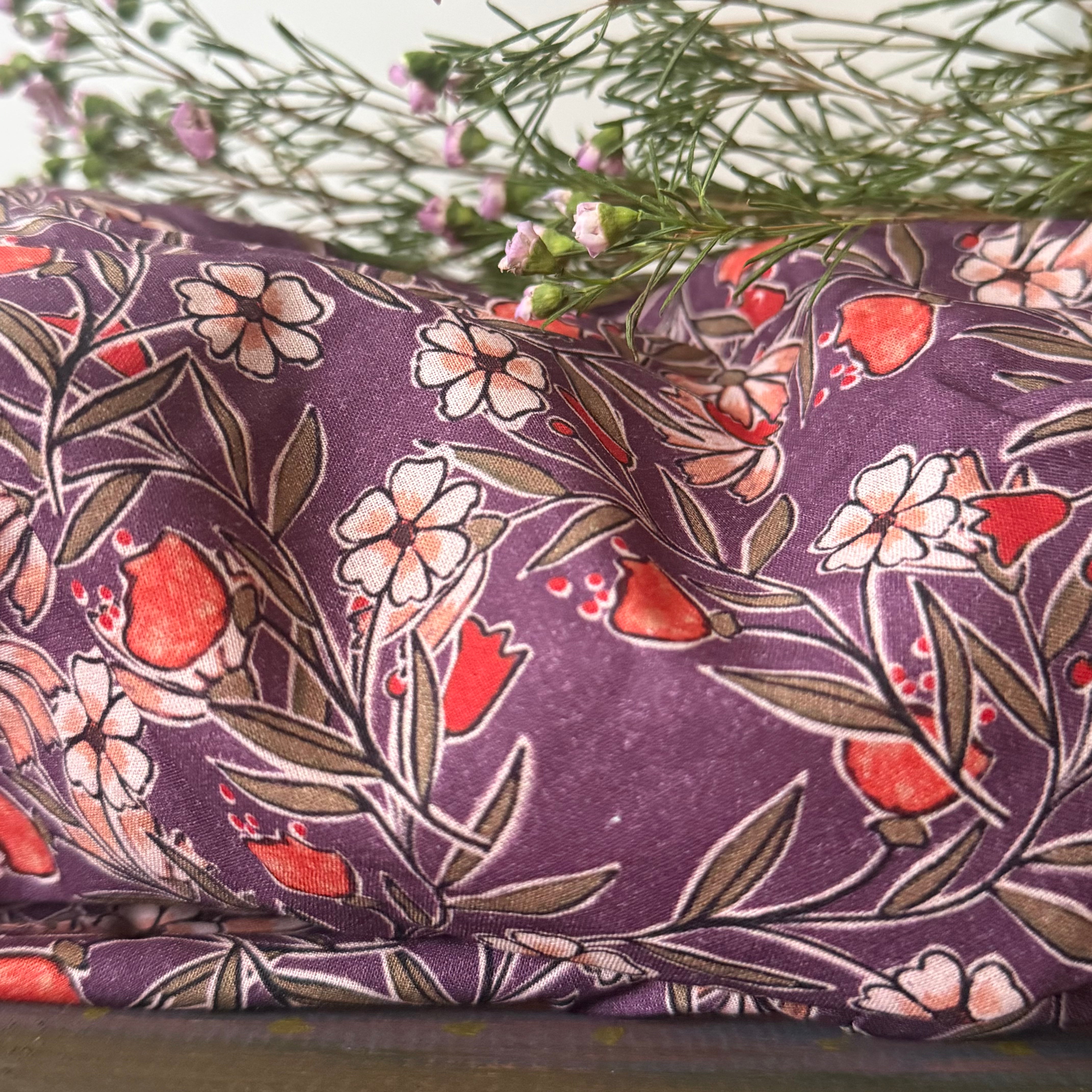 • Imprimé floral aux tonalités aubergine profondes