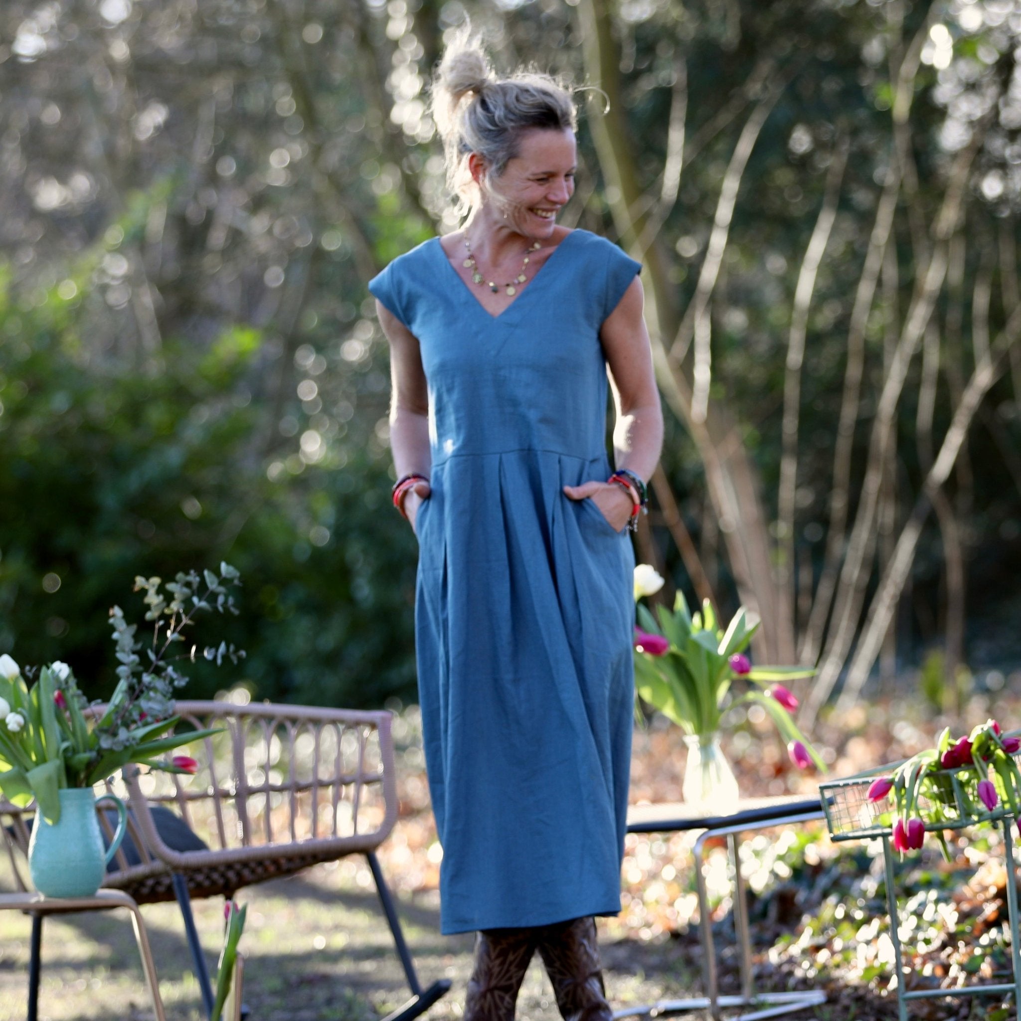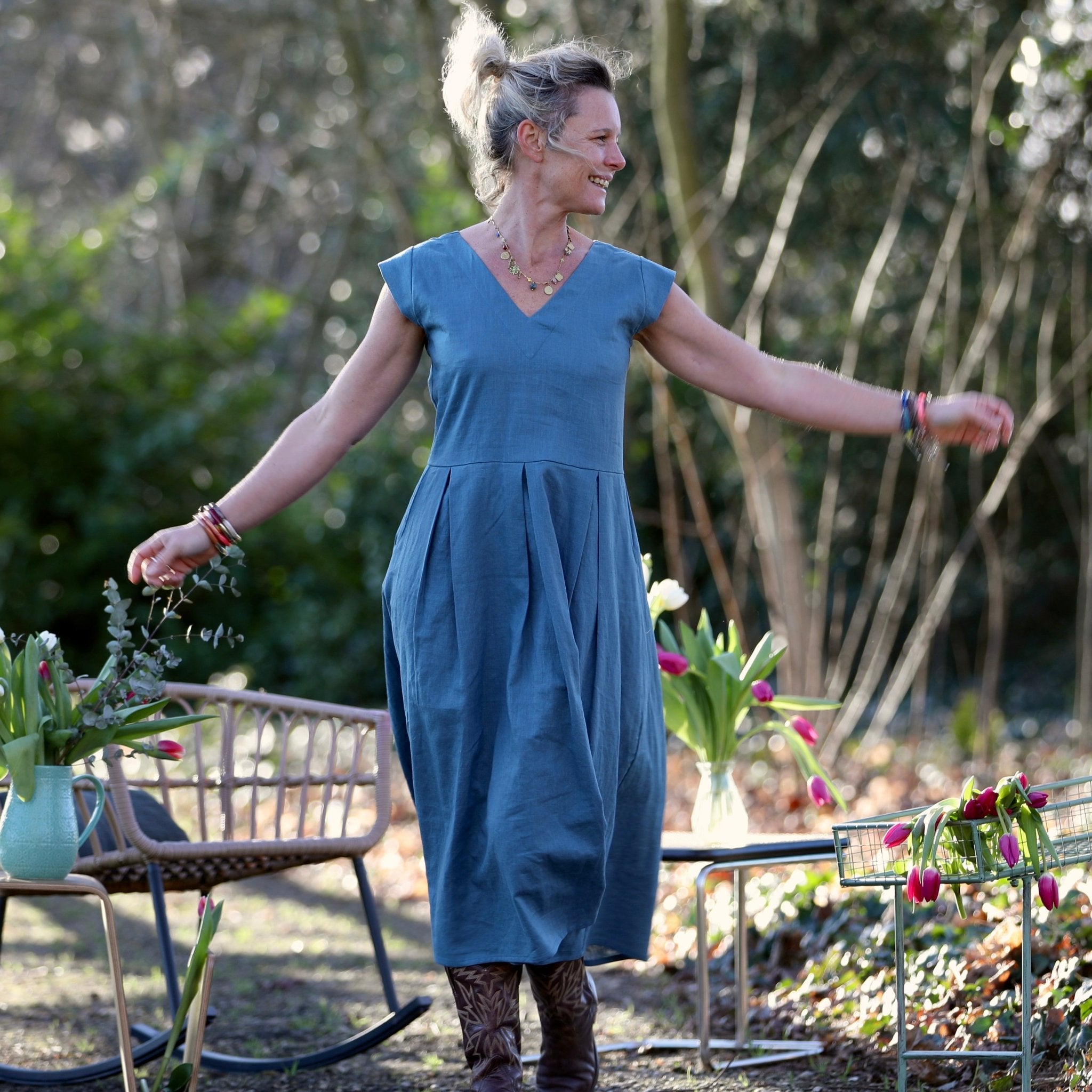 La Robe Louison se porte facilement avec des sandales en été, des baskets pour un esprit casual ou des bottines pour un contraste plus affirmé. Pour structurer la silhouette, elle s’associe parfaitement avec la ceinture Anita, dont le côté japonisant apporte une touche graphique et élégante.