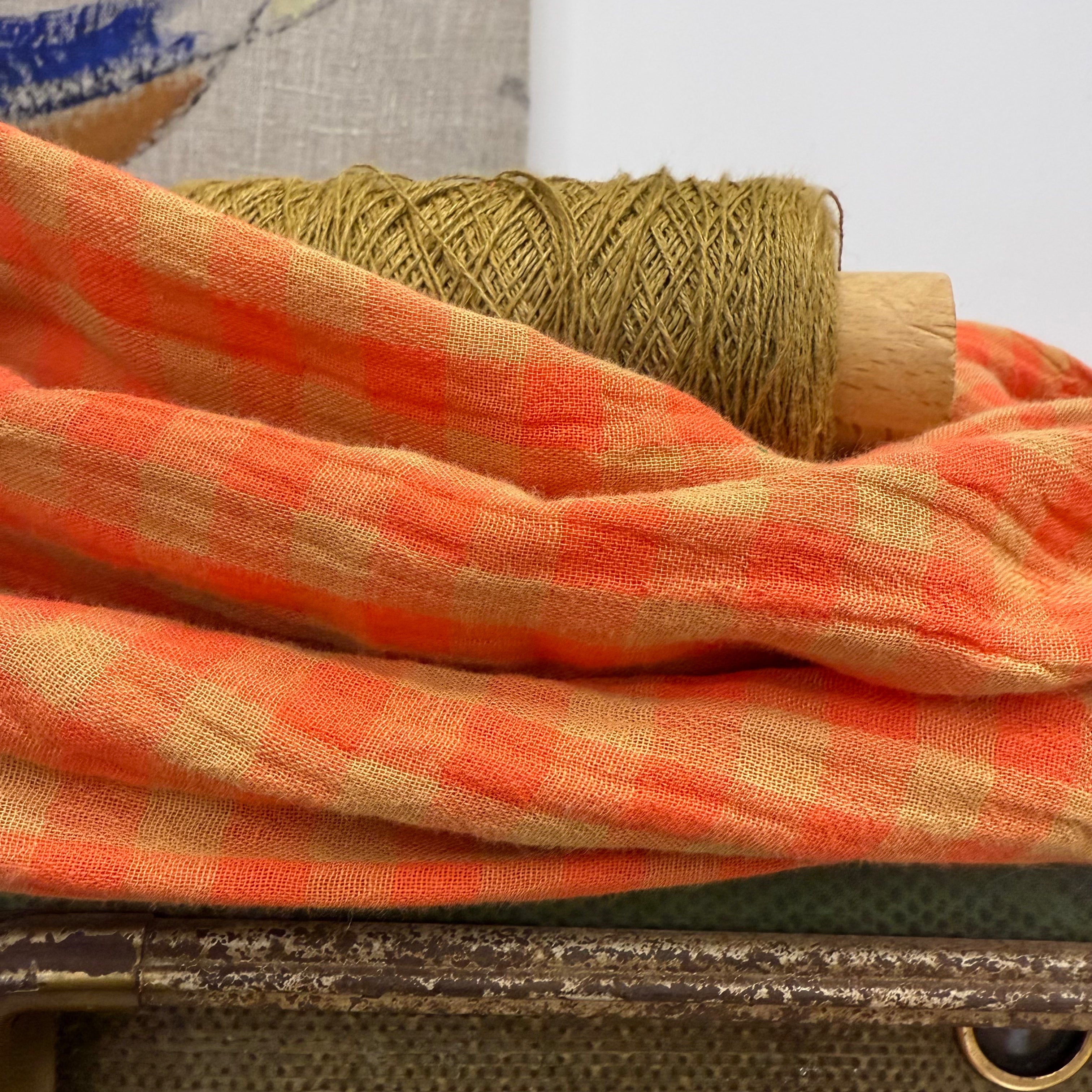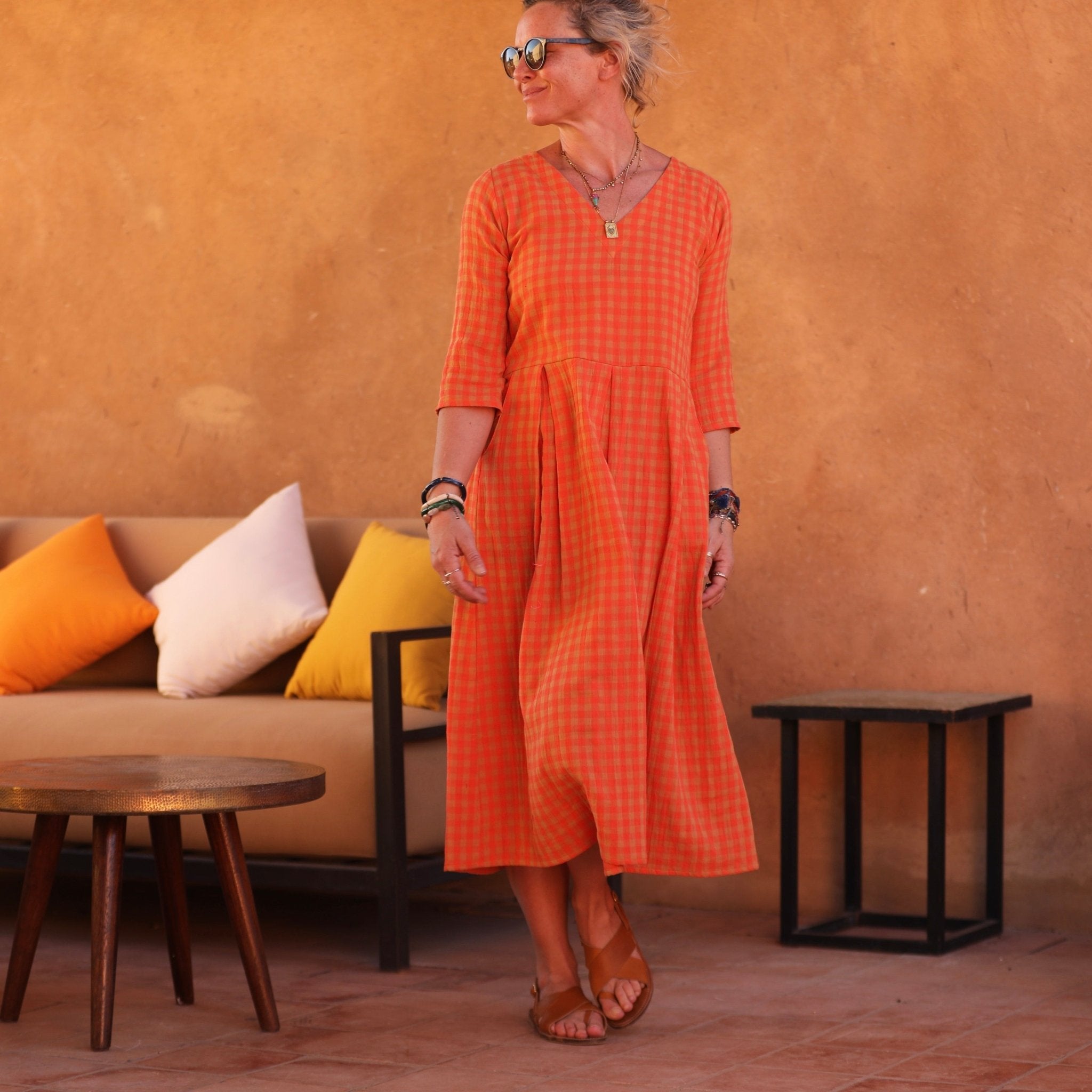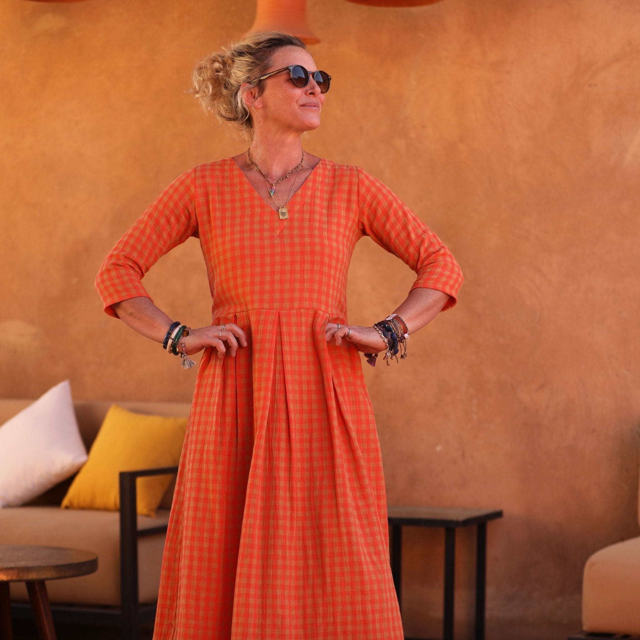 Robe Louisette - double gaze de coton carreaux orange/ocre