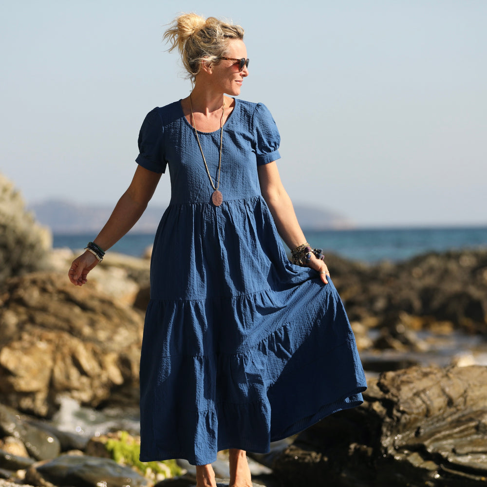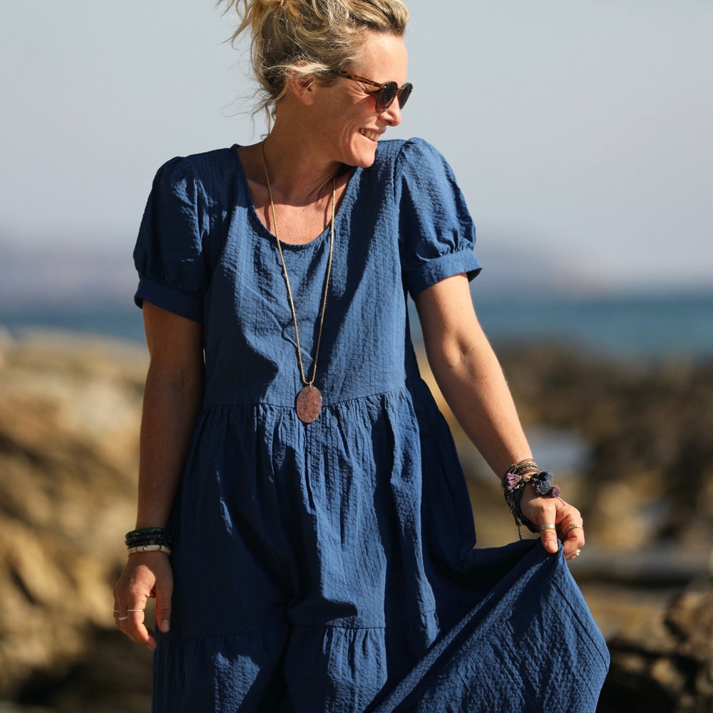 Robe Ophélie - sersucker de coton indigo - Quintessence