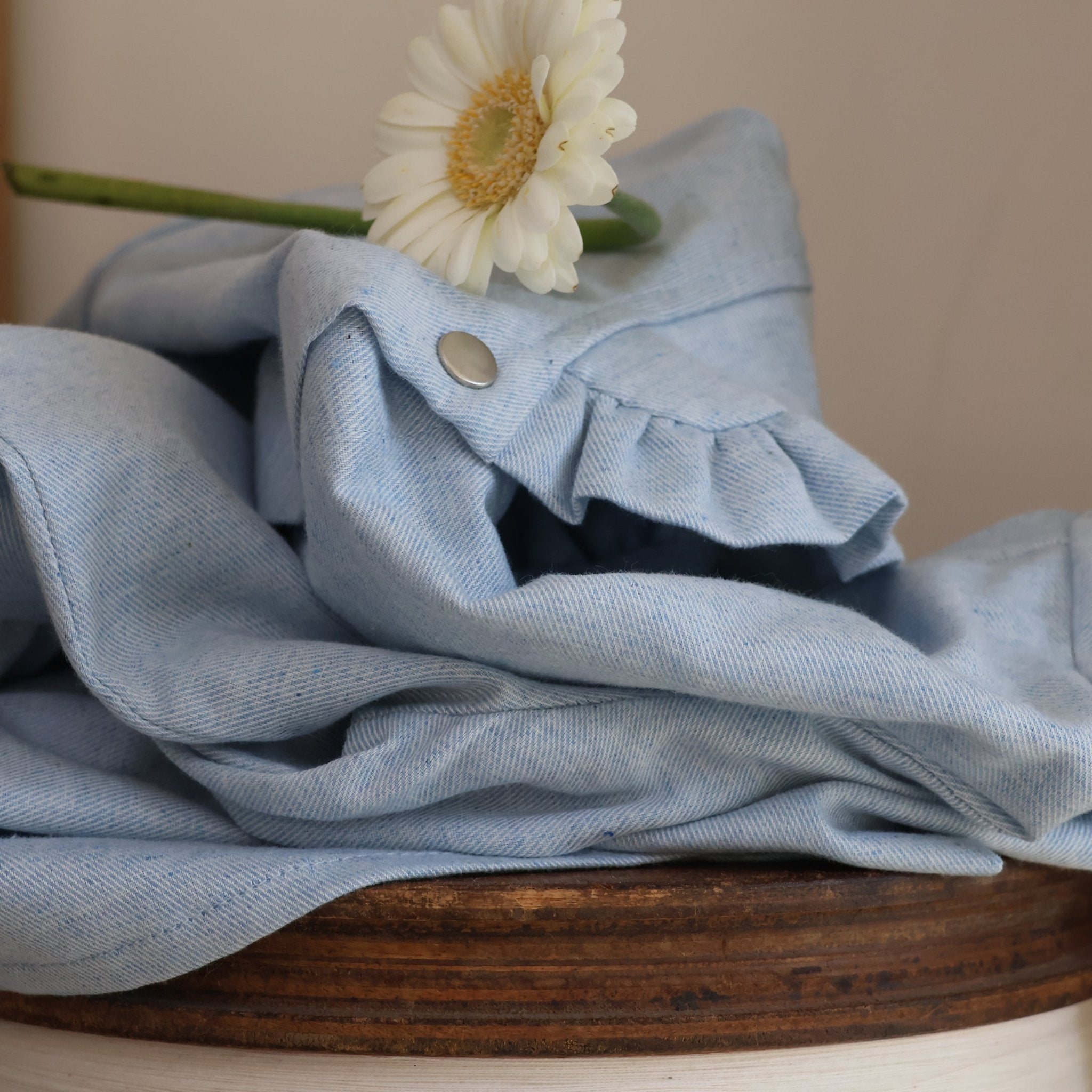 Robe Pomme - longueur midi - sergé de coton chiné ciel