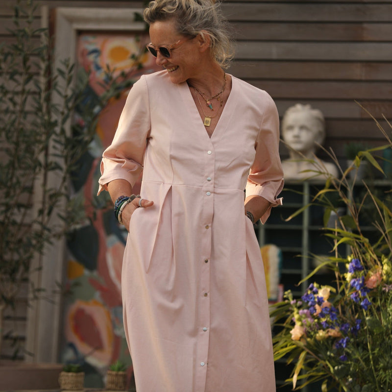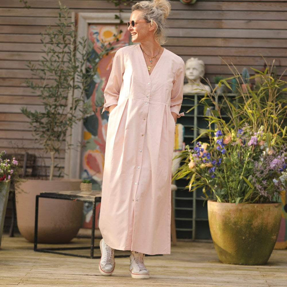 Robe Ryme - joli armuré de coton rose pâle chiné - Quintessence