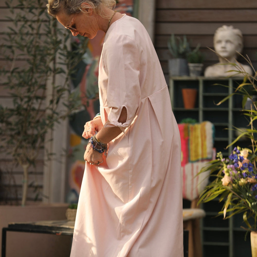 Robe Ryme - joli armuré de coton rose pâle chiné